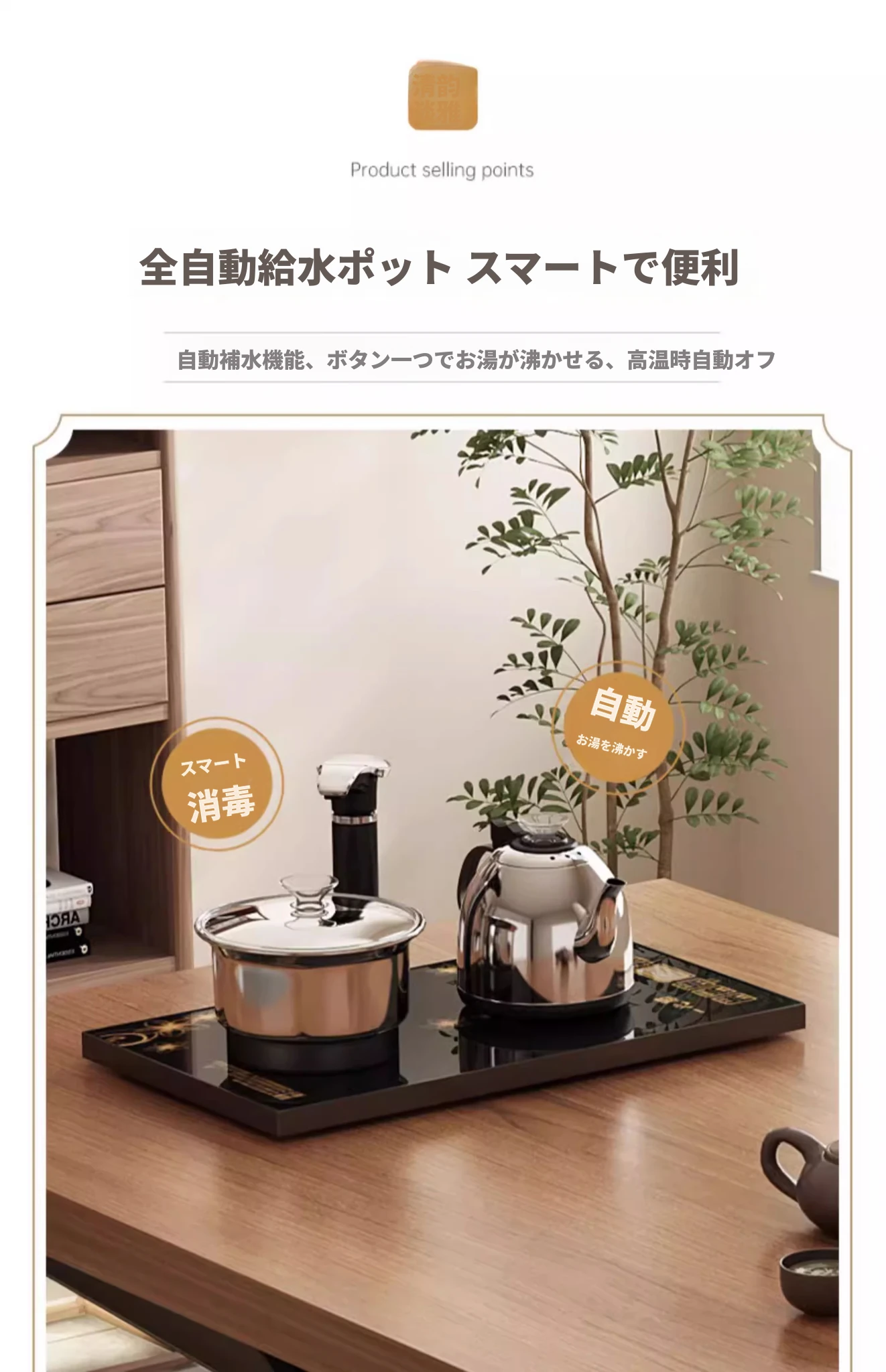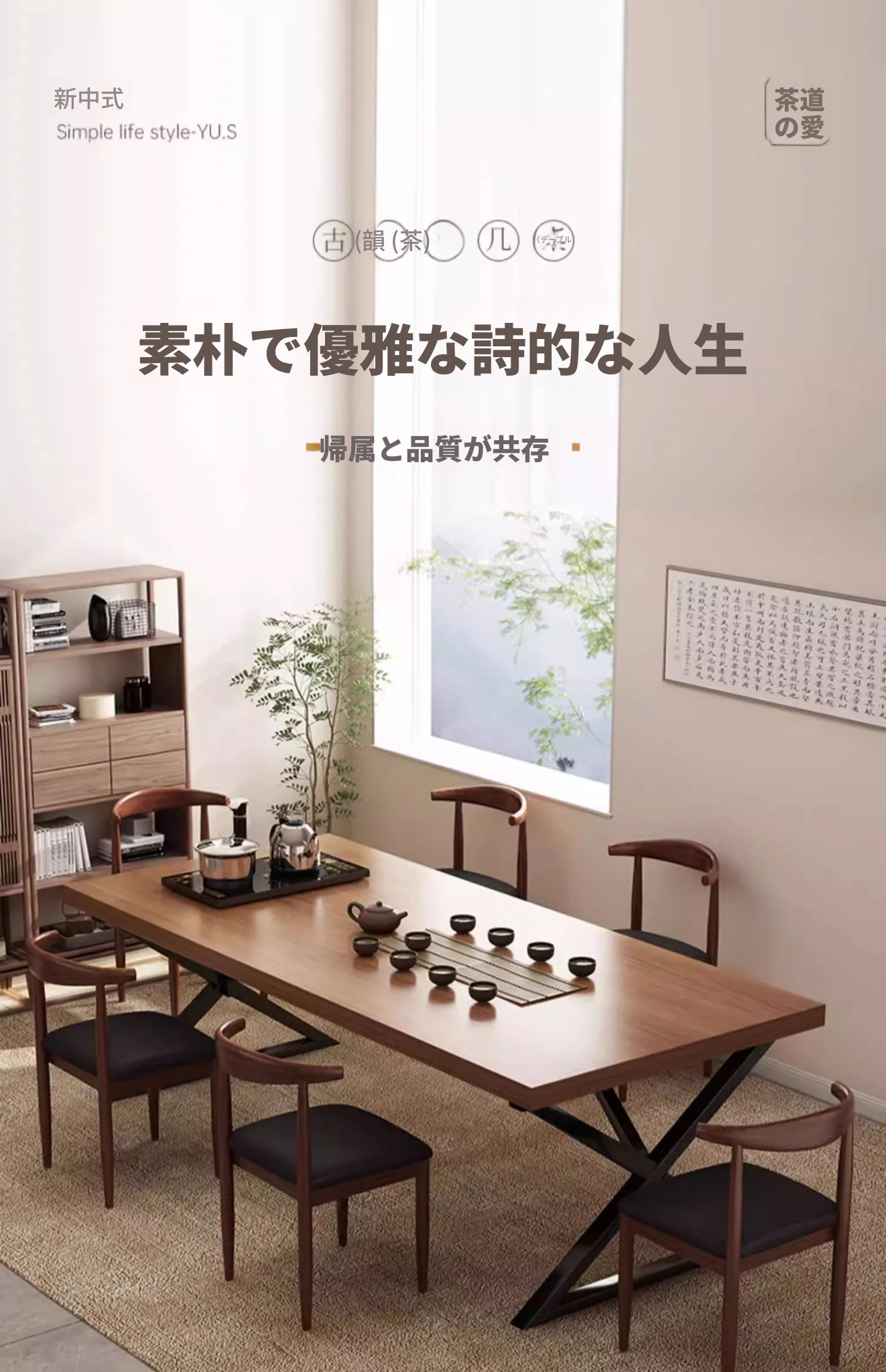 モダンなデザインの茶卓椅子セット - 1つの大きなテーブルと5つの椅子で、オフィスや自宅でのリラックスタイムに最適!お茶を楽しむためのティーセットと電気ケトル付き。シンプルでスタイリッシュな茶のひとときをお届けします!