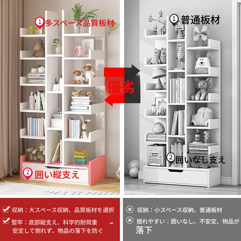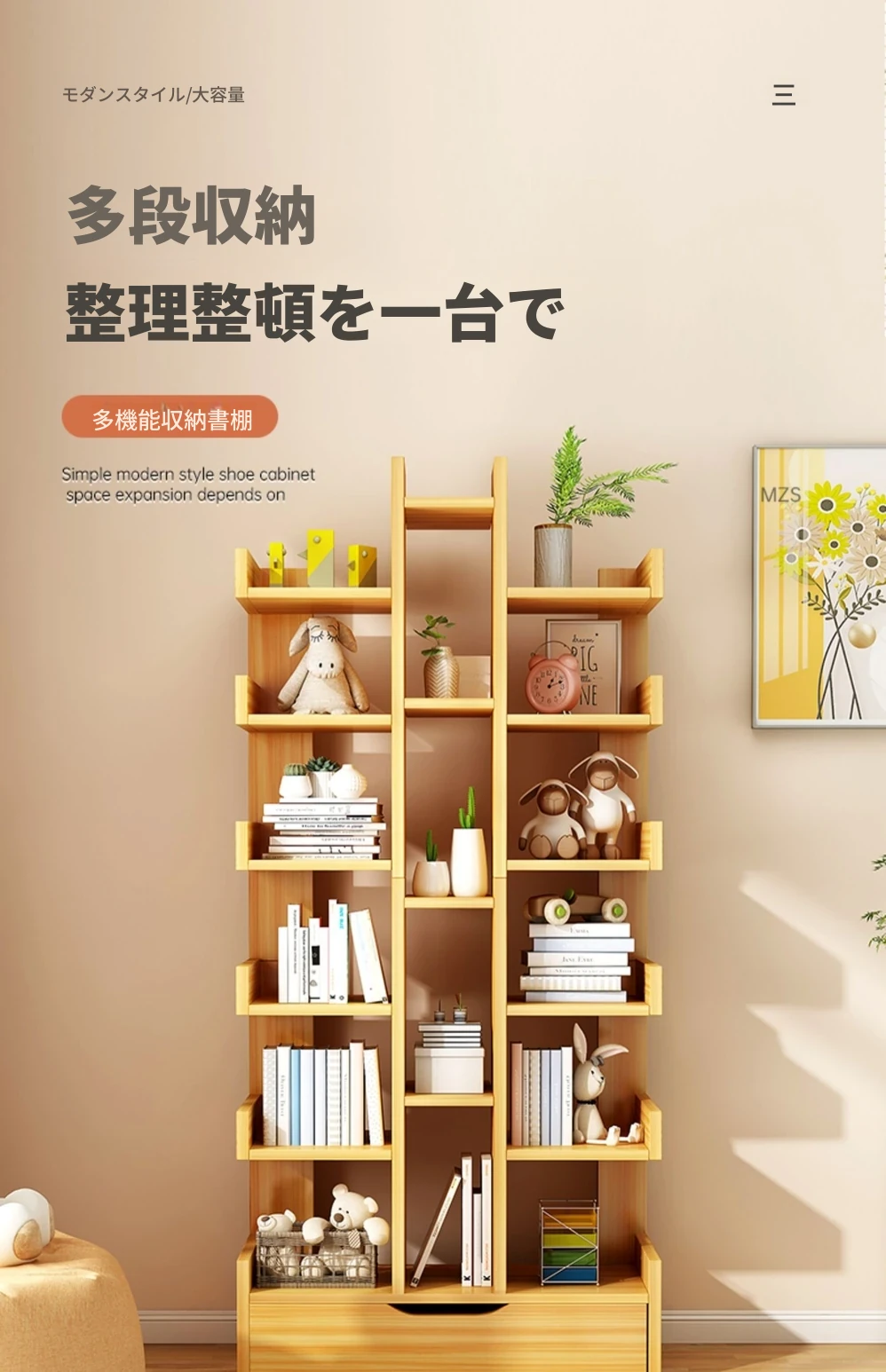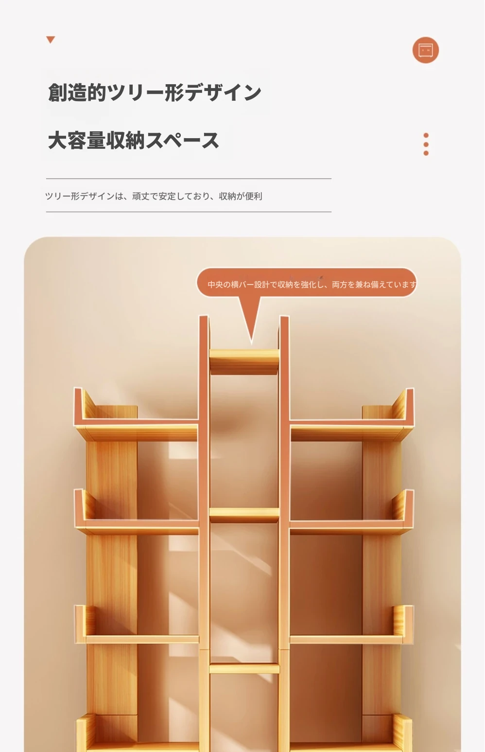 新作!おしゃれなツリー型多層収納ラック - リビングにぴったりな壁掛け式の書棚!学生に最適な小型書庫で、収納力抜群!あなたのお部屋をすっきり整理整頓!