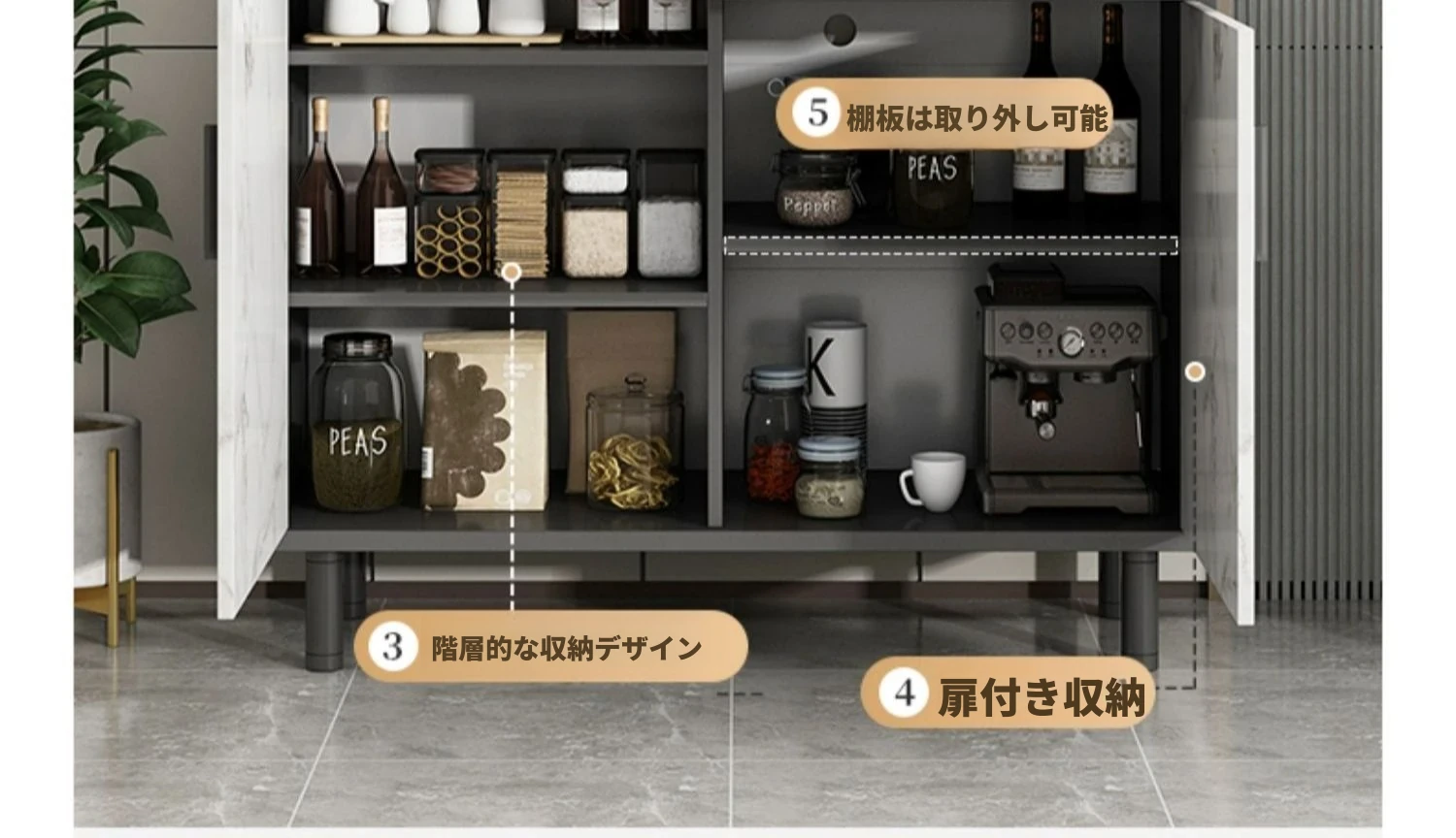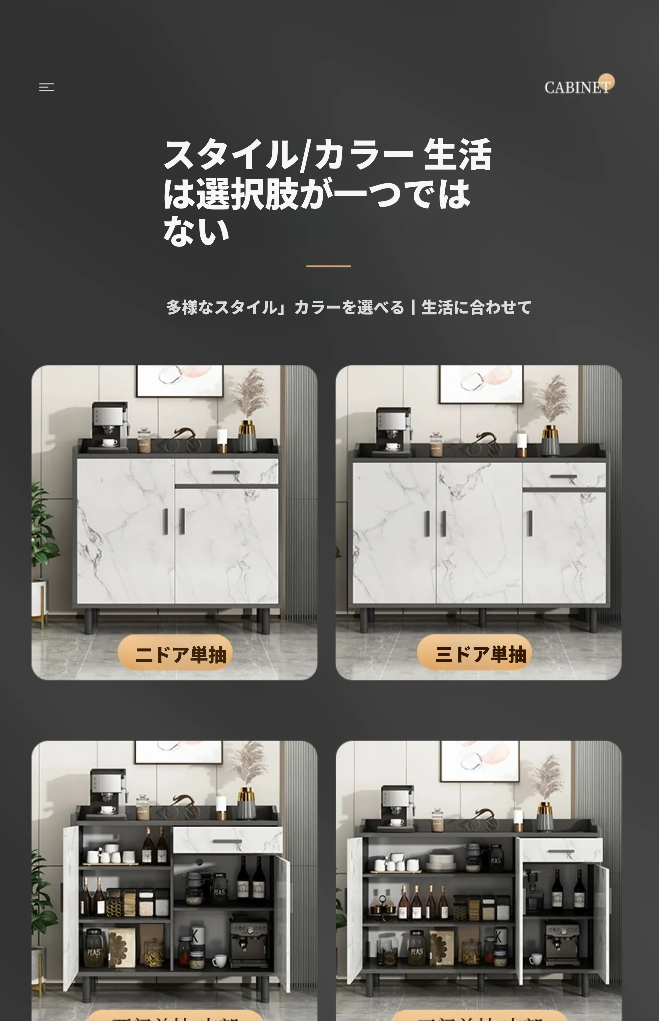 新款茶水柜|おしゃれなリビングに最適!ソファ横にぴったりの収納力抜群の壁面収納キャビネット。家族の団らんを彩る、実用的なサイドボード!