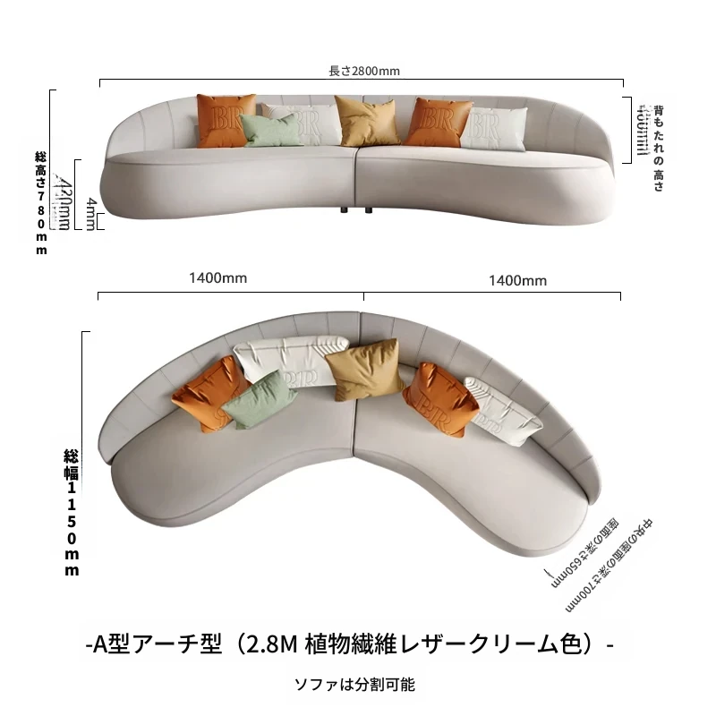 A型アーチ形【3.48M 植物繊維レザー&アイボリー】
