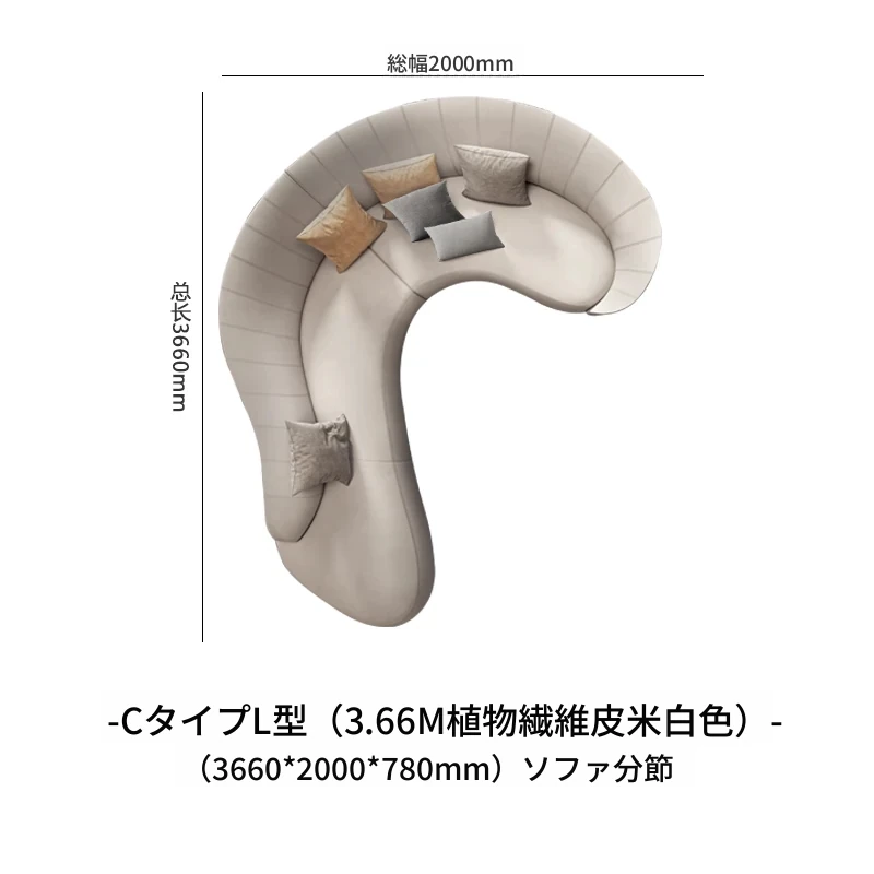 C型L字型【3.66M 植物繊維皮革&アイボリー】
