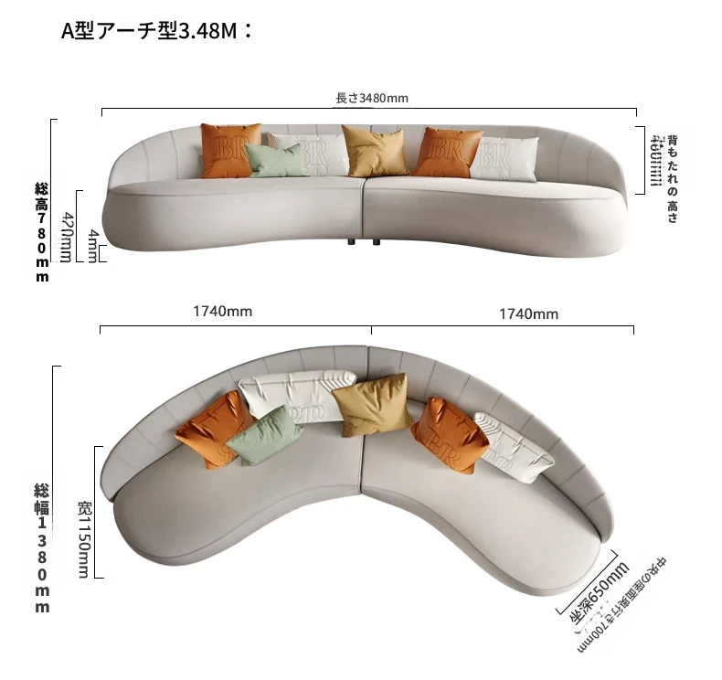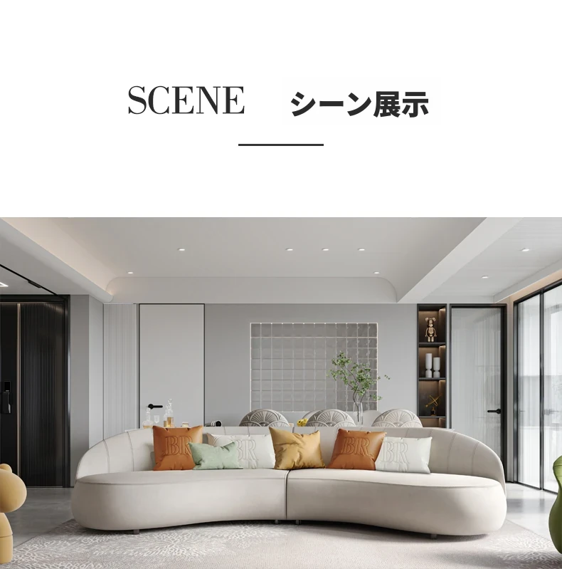 Msオリジナル/ヴェローナ別荘 大型斜め異形フレンチクリーム風 半円形ライトラグジュアリーアーチソファ - 優雅なデザインでお部屋を華やかに演出し、贅沢なひとときを提供します。