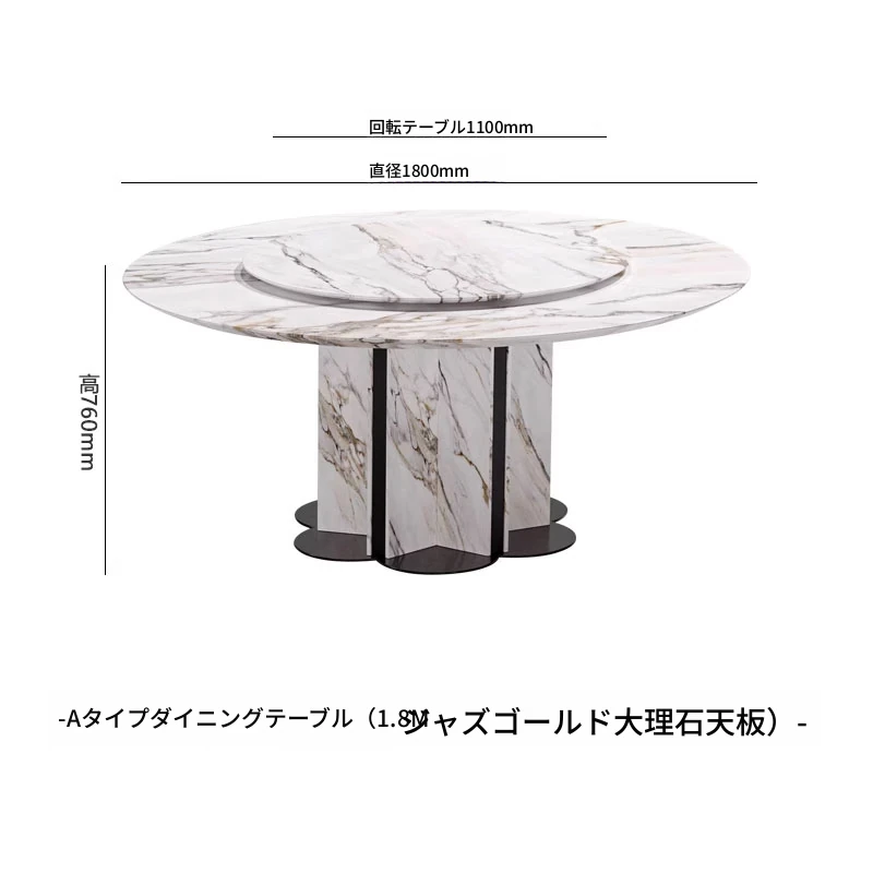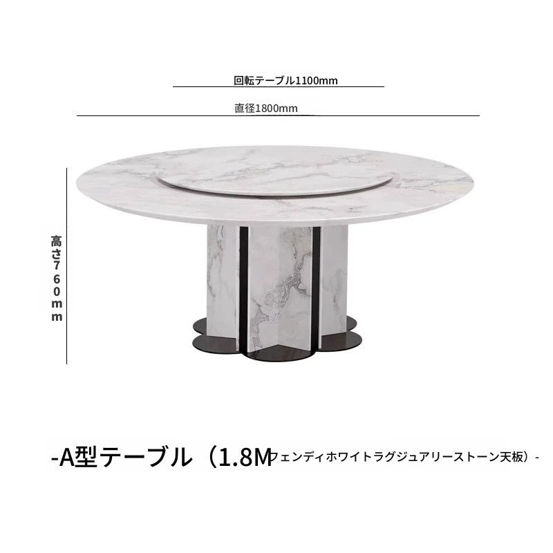 Aタイプのダイニングテーブル【1.8M フェンディホワイトラグジュアリー石天板】