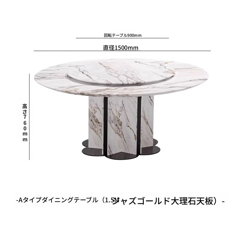 Aタイプのダイニングテーブル【1.5M フェンディホワイトラグジュアリー石天板】