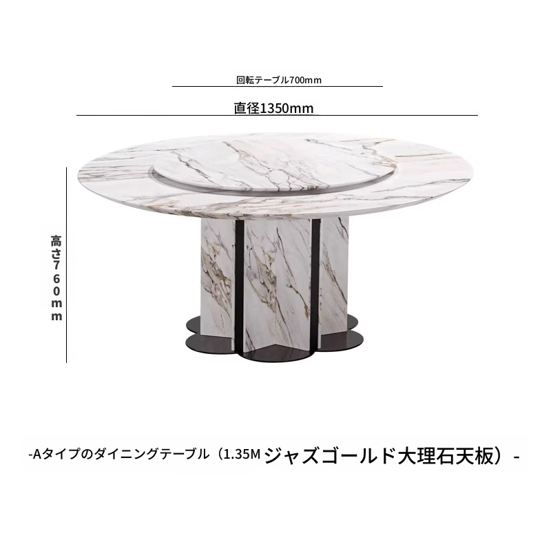 Aタイプのダイニングテーブル【1.35M ジャズゴールド大理石天板】