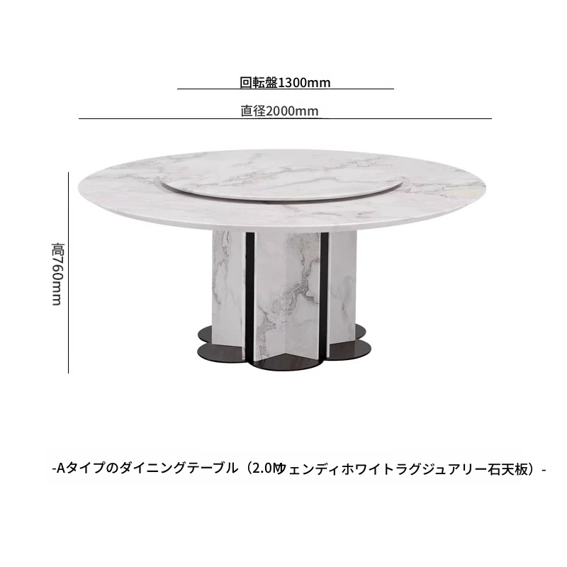 Aタイプのダイニングテーブル【2.0M フェンディホワイトラグジュアリー石天板】