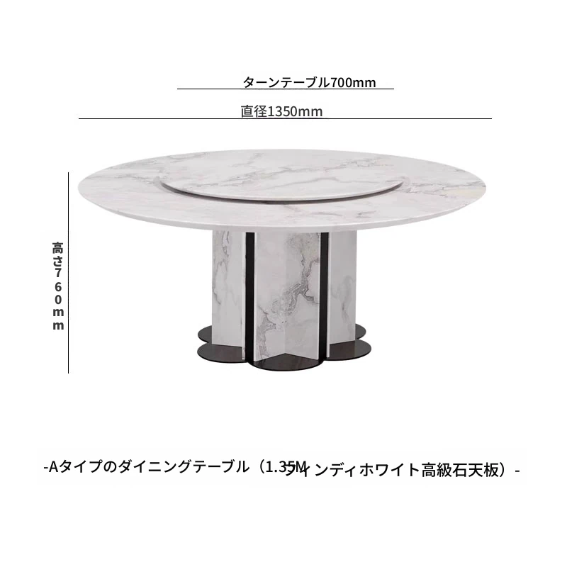 Aタイプのダイニングテーブル【1.35M フェンディホワイトラグジュアリー石天板】