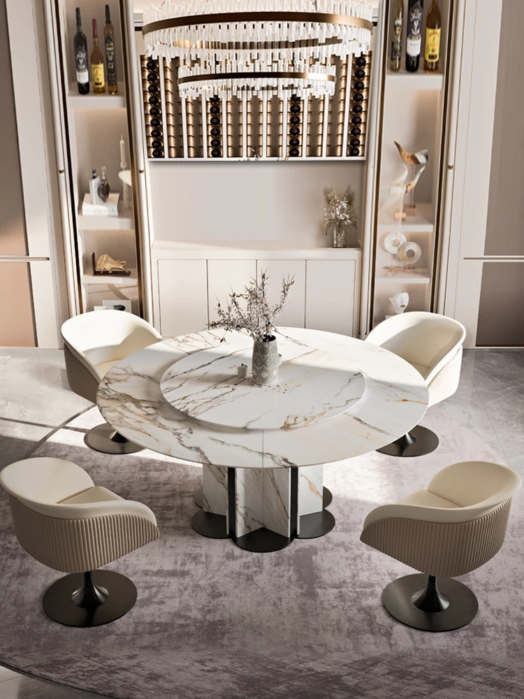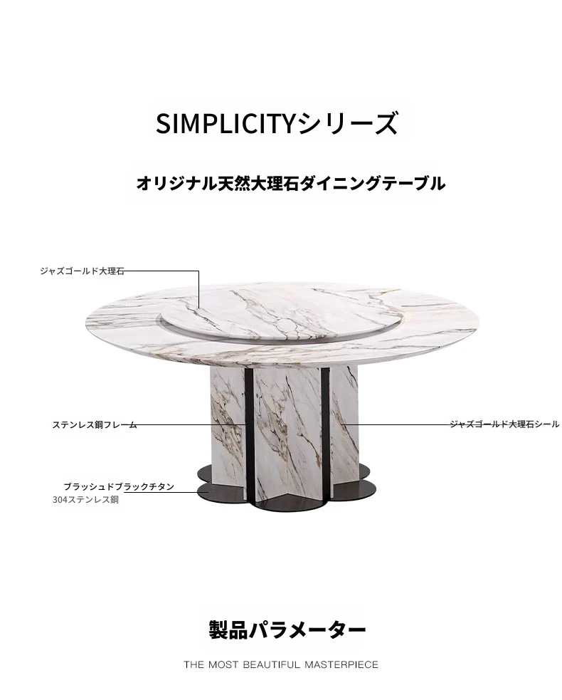 Msオリジナル/Allure イタリアンデザイン 中古別荘用ラグジュアリー大理石 丸型ダイニングテーブル - 優雅な空間を演出する一品!