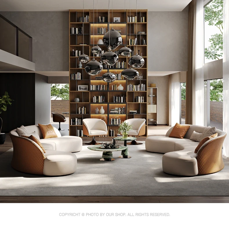 Msオリジナル/Cavaliere イタリアンデザイナーによるラグジュアリーな大空間向け本革アーチ型ソファ - 高級感溢れる上質な居住空間を実現!