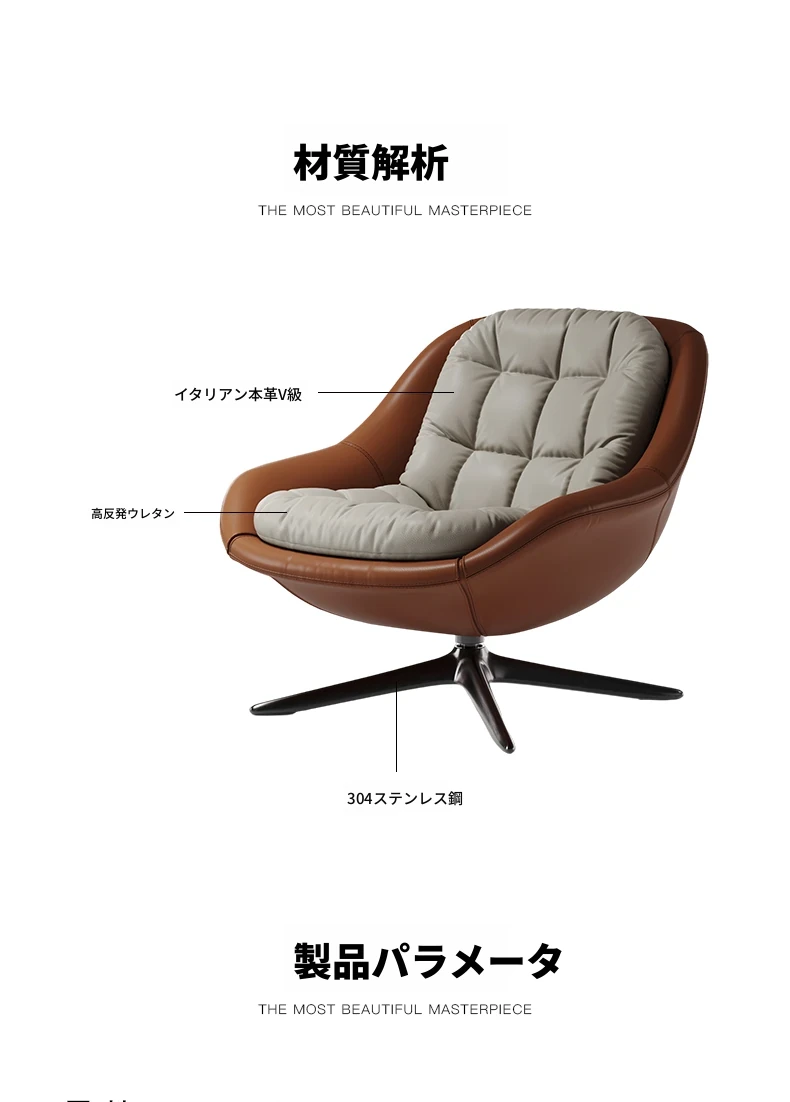 MS厳選/Farfalle イタリアンデザイン ヴィラ向け 大型シンプル高級イタリアン 回転リクライニングチェア - 上質なひとときを提供する洗練されたデザイン!