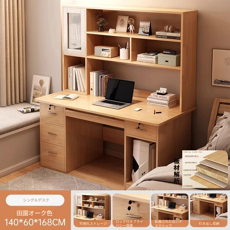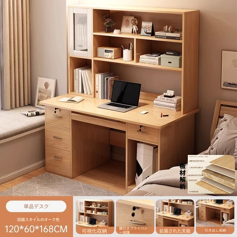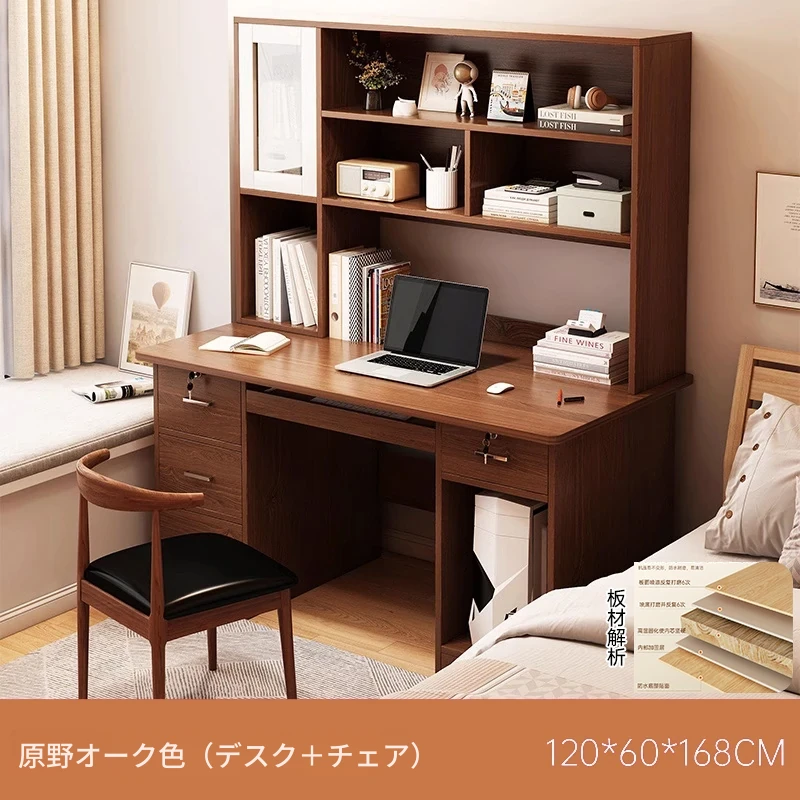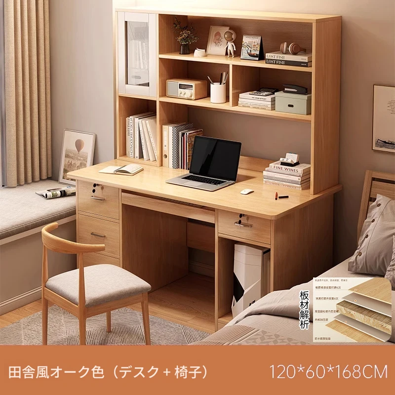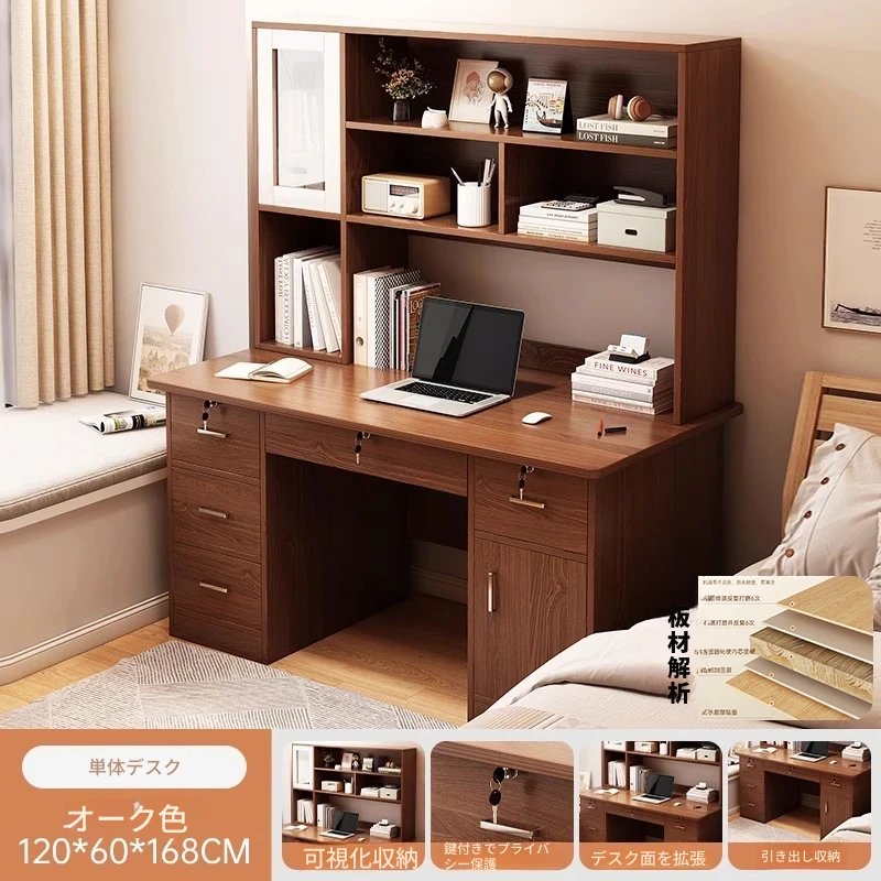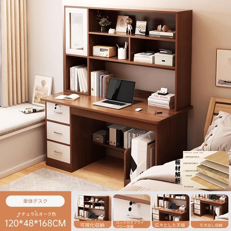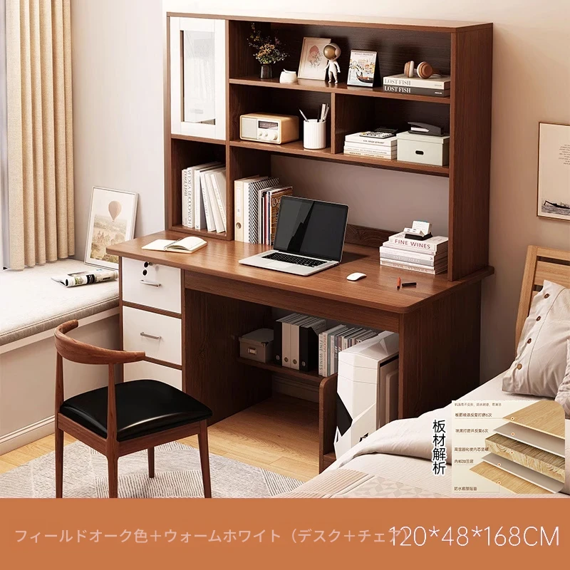 スタイリッシュなデスク&本棚一体型!家庭用オフィスデスク、学生向け学習デスク、快適な書き心地を提供するベッドルーム用デスクセット。整理整頓も簡単、作業効率アップ!