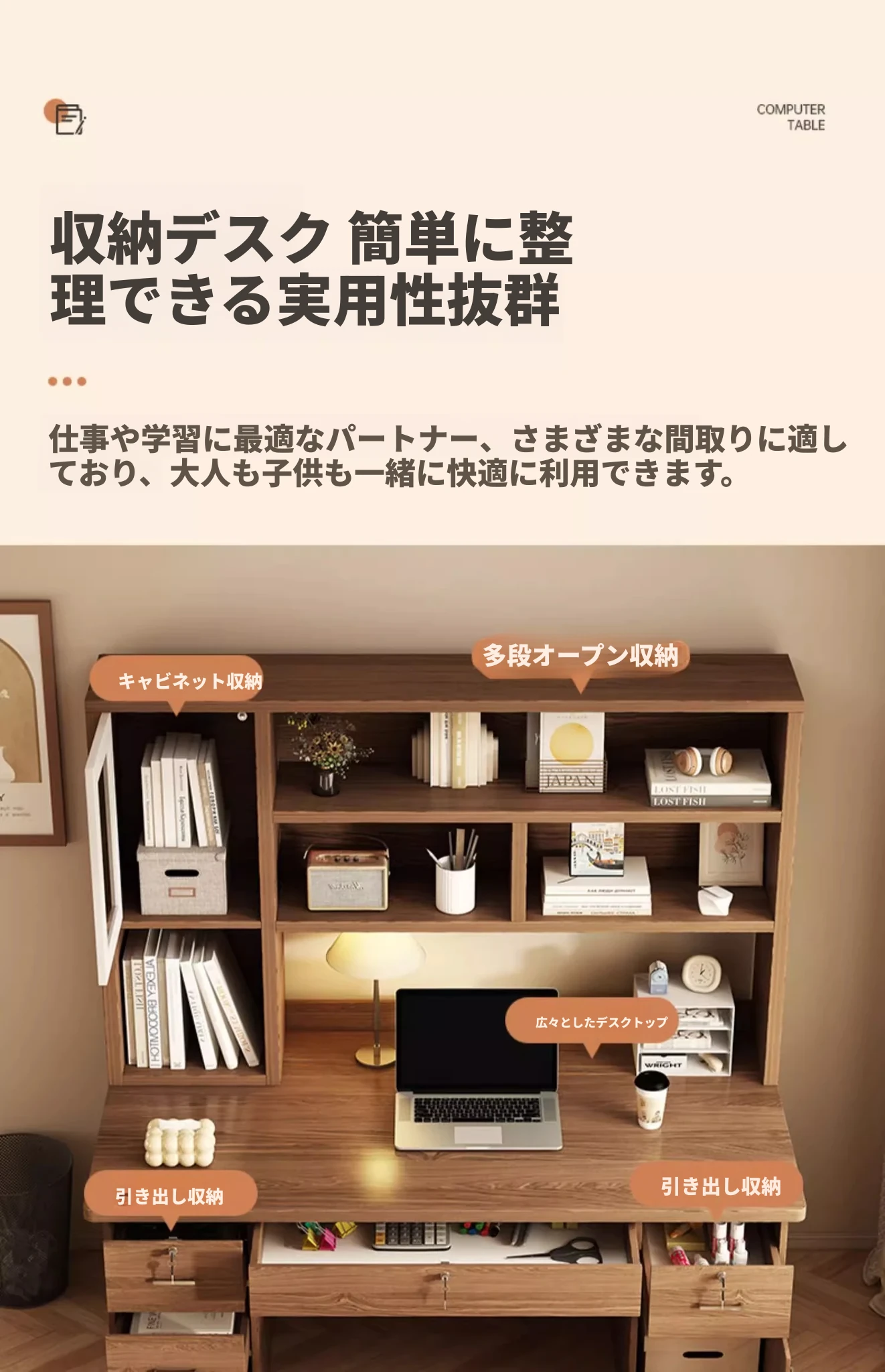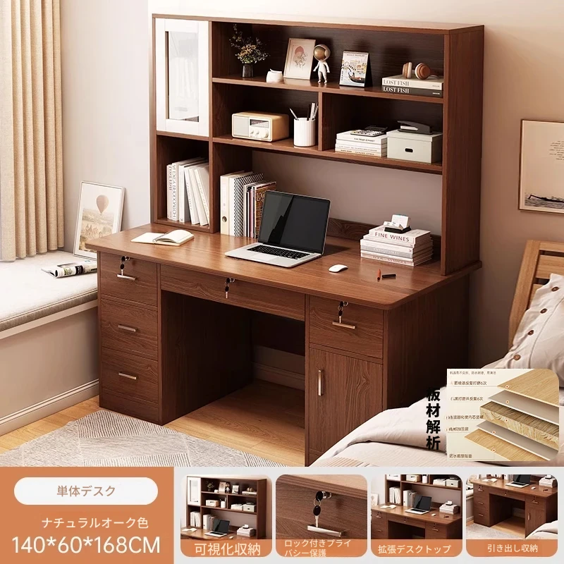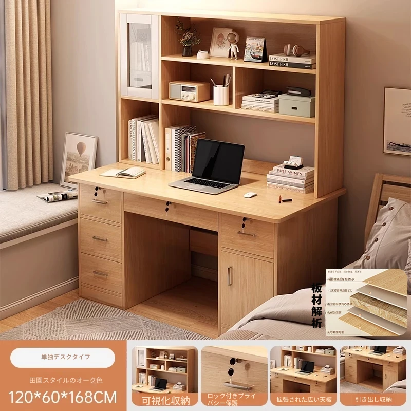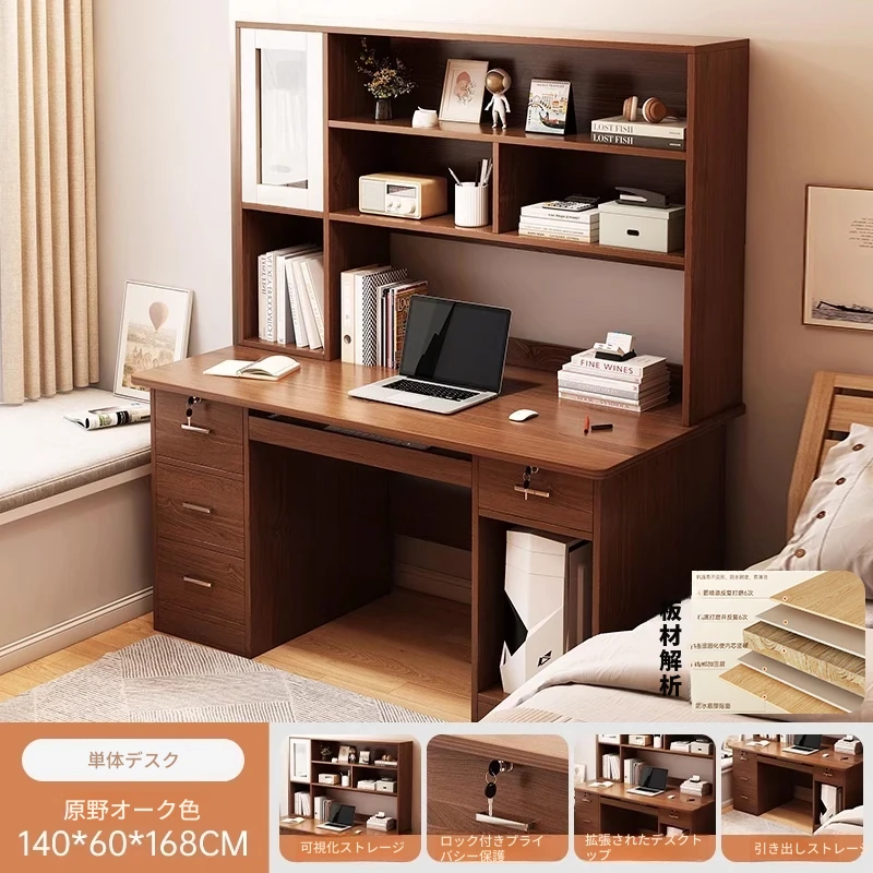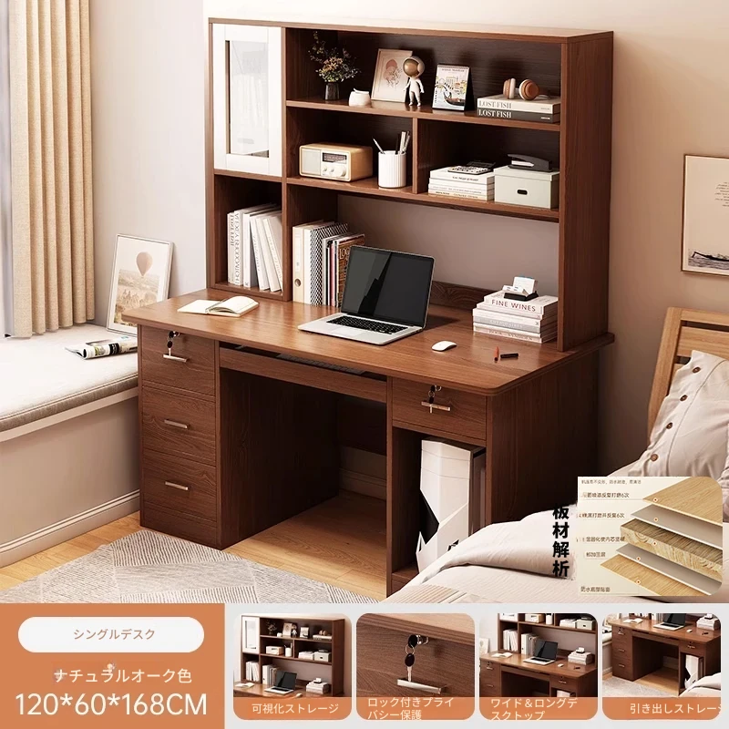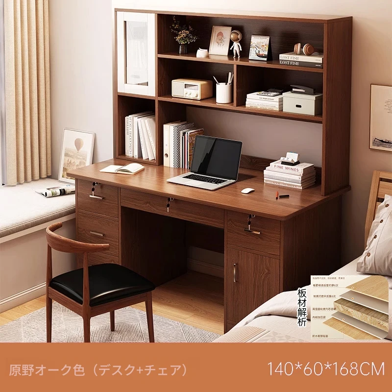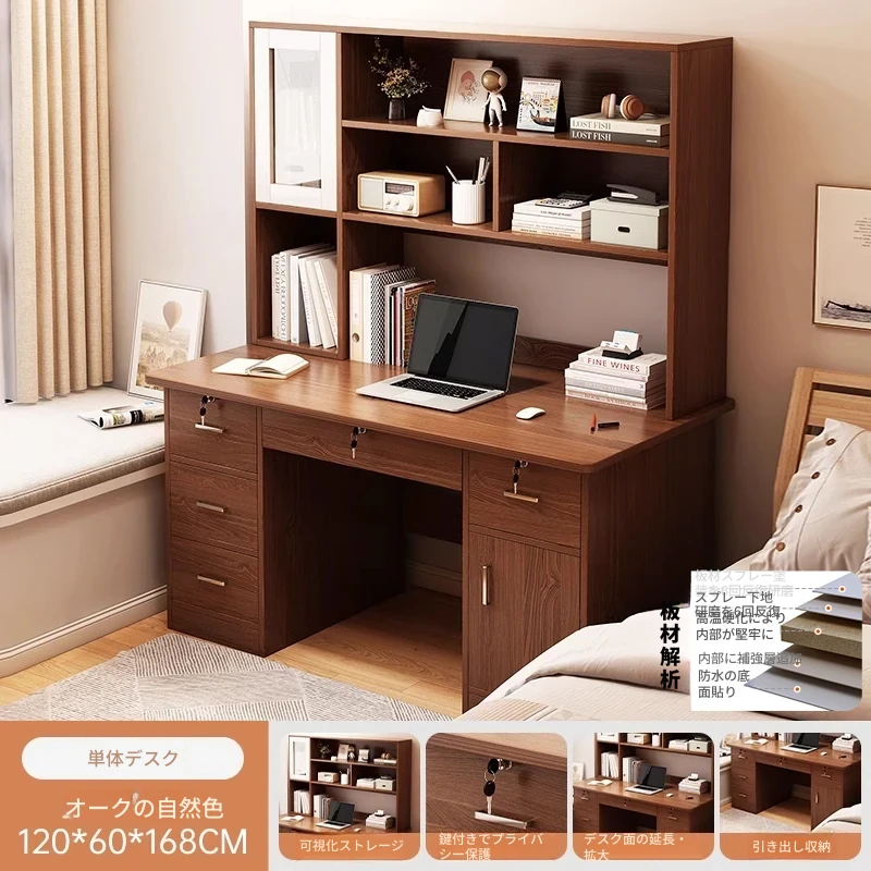 スタイリッシュなデスク&本棚一体型!家庭用オフィスデスク、学生向け学習デスク、快適な書き心地を提供するベッドルーム用デスクセット。整理整頓も簡単、作業効率アップ!