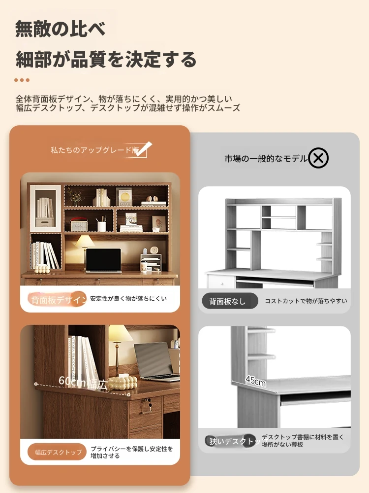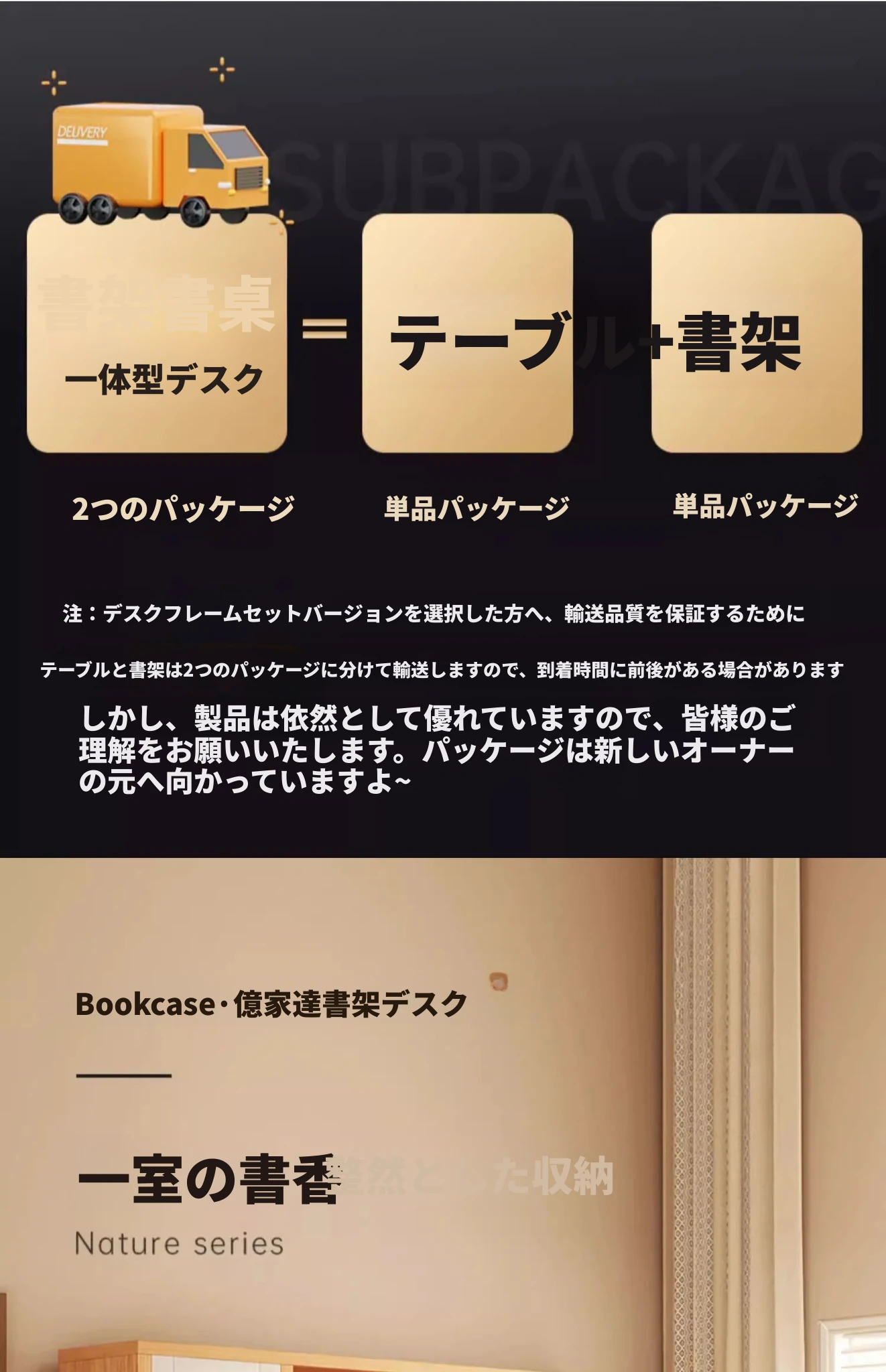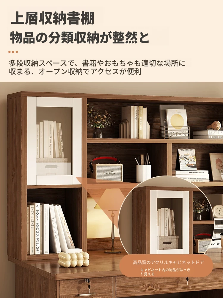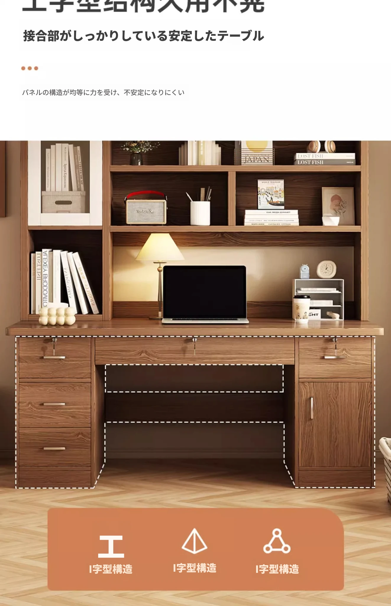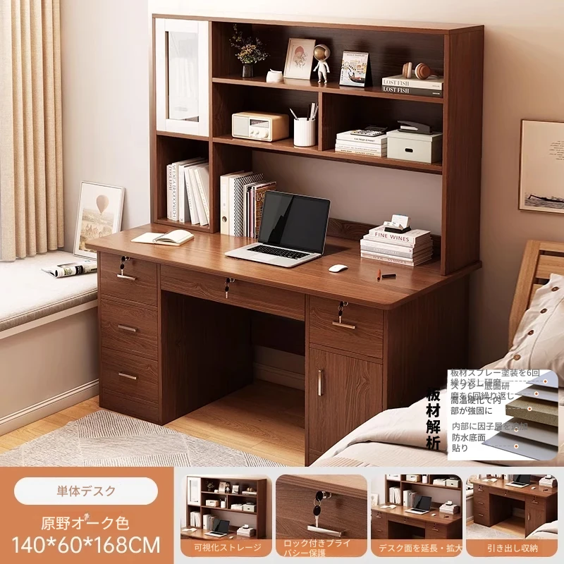 スタイリッシュなデスク&本棚一体型!家庭用オフィスデスク、学生向け学習デスク、快適な書き心地を提供するベッドルーム用デスクセット。整理整頓も簡単、作業効率アップ!