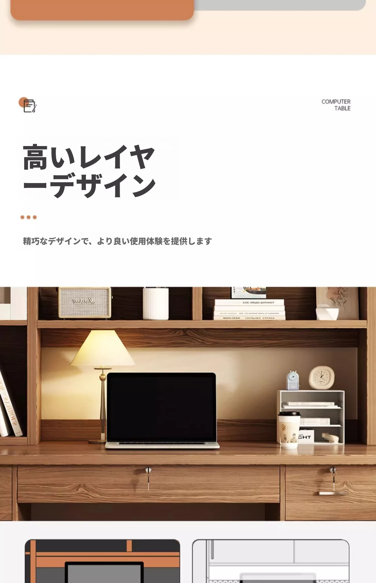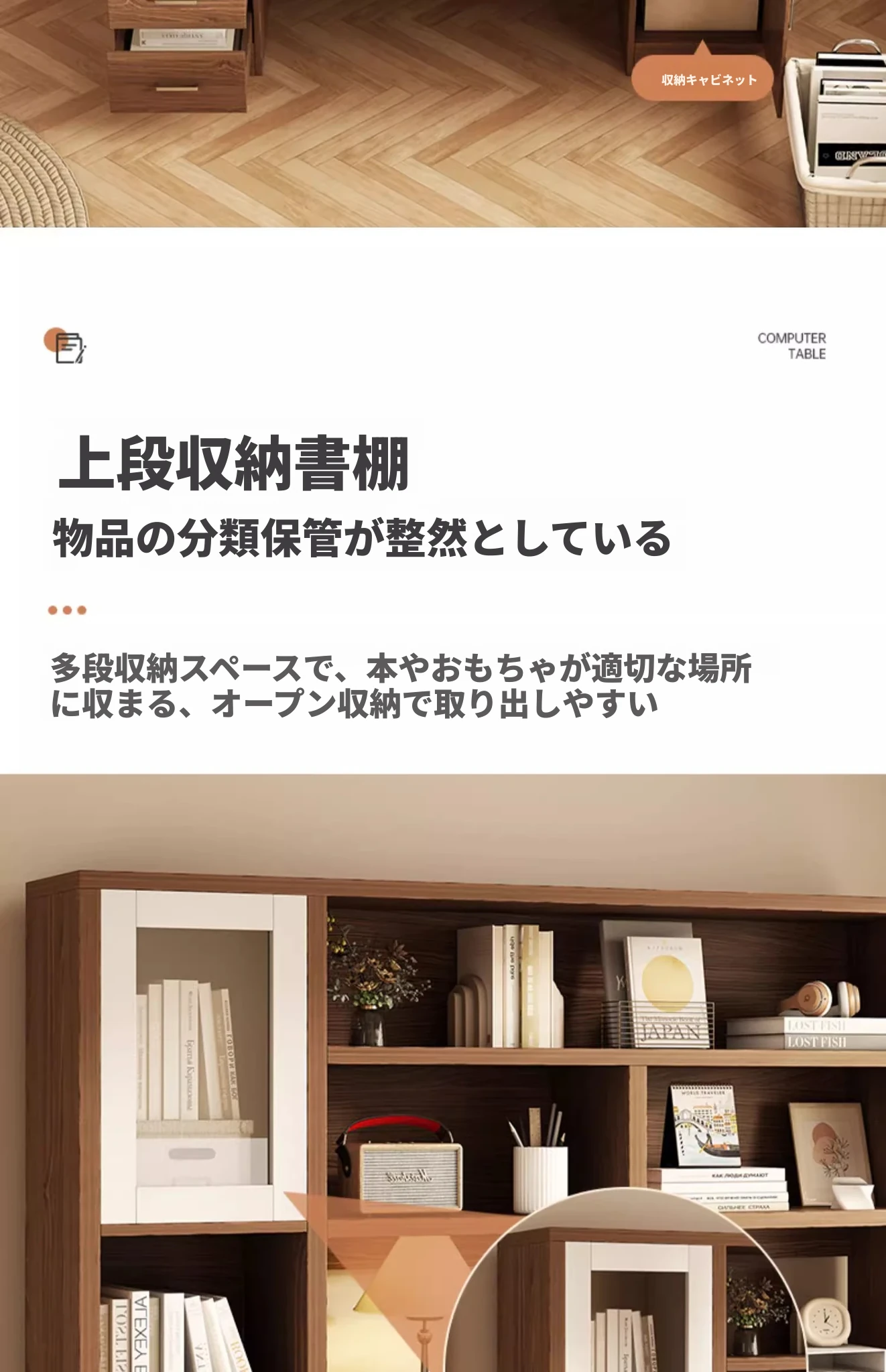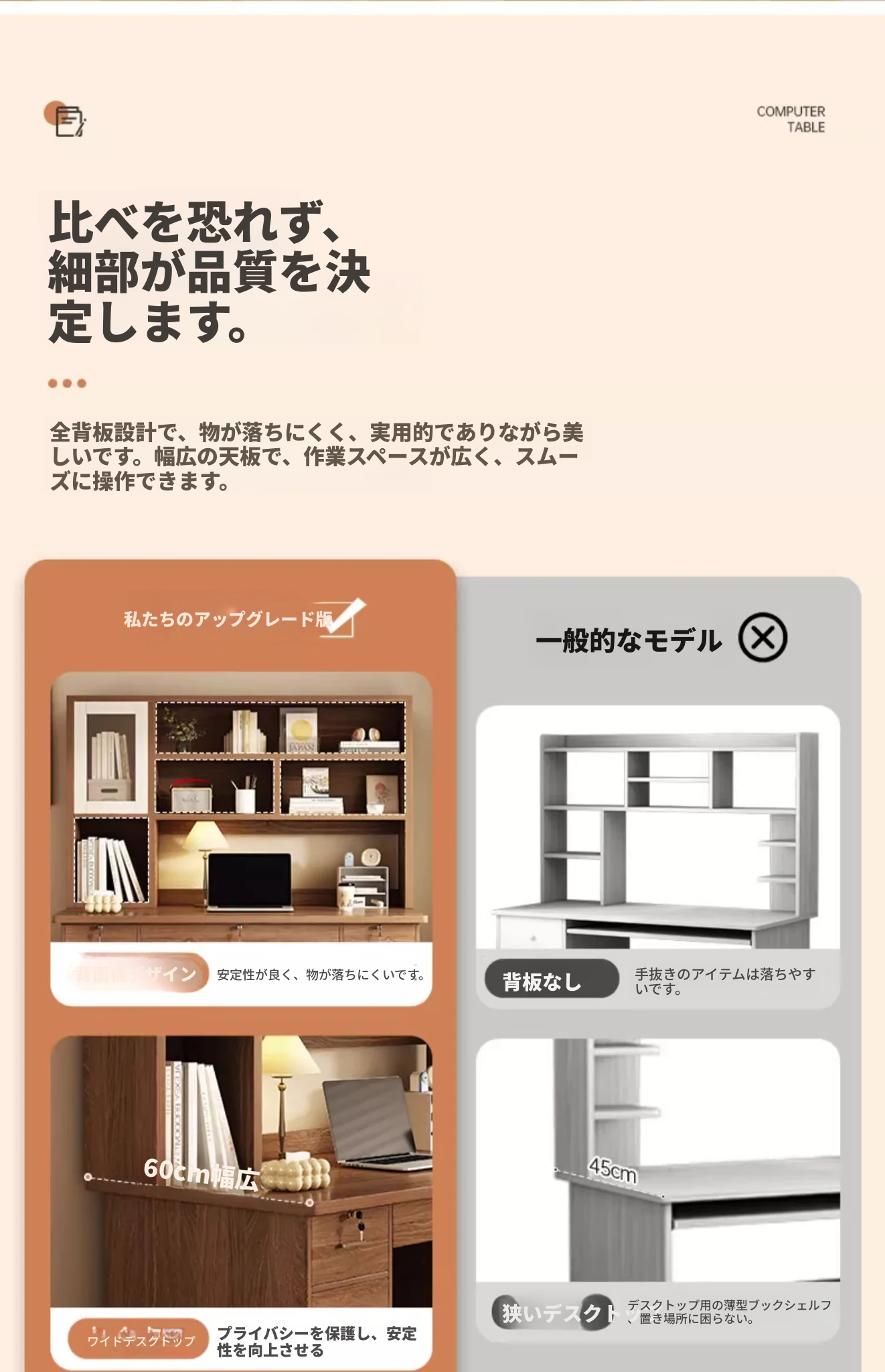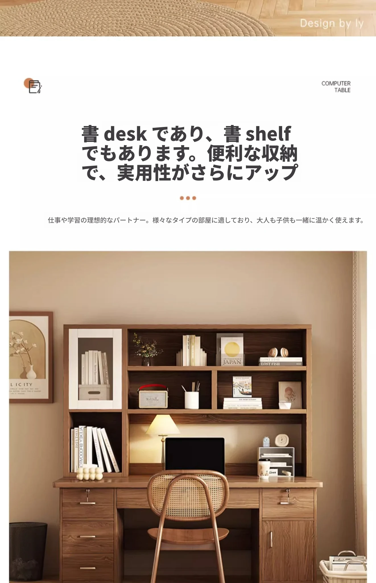 スタイリッシュなデスク&本棚一体型!家庭用オフィスデスク、学生向け学習デスク、快適な書き心地を提供するベッドルーム用デスクセット。整理整頓も簡単、作業効率アップ!