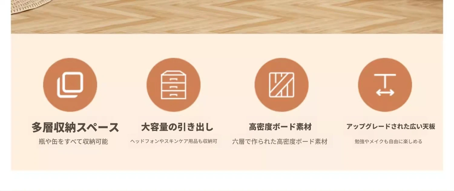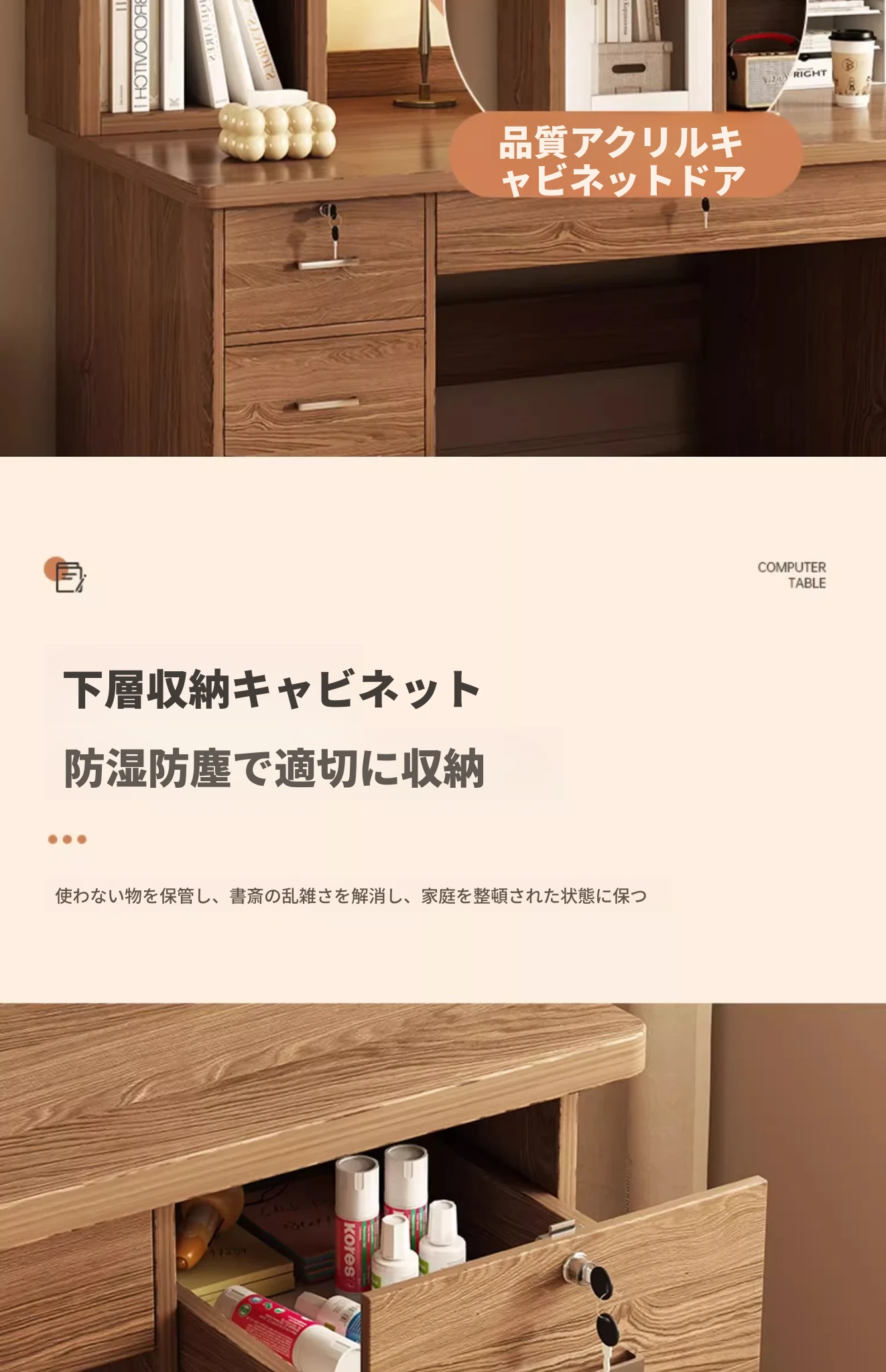 昇級高密板❤田園オーク色140cm|四引き出し+アクリル扉