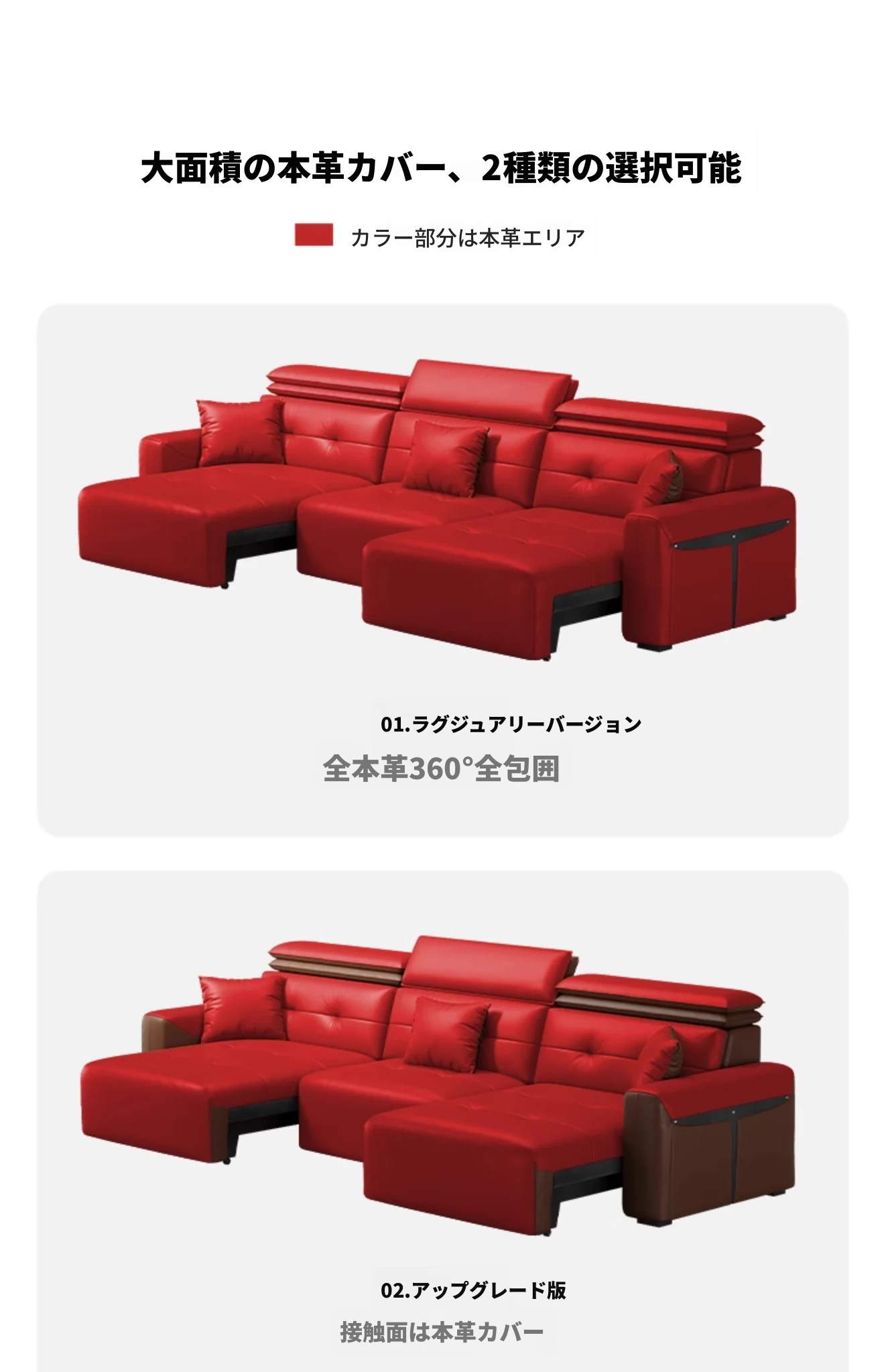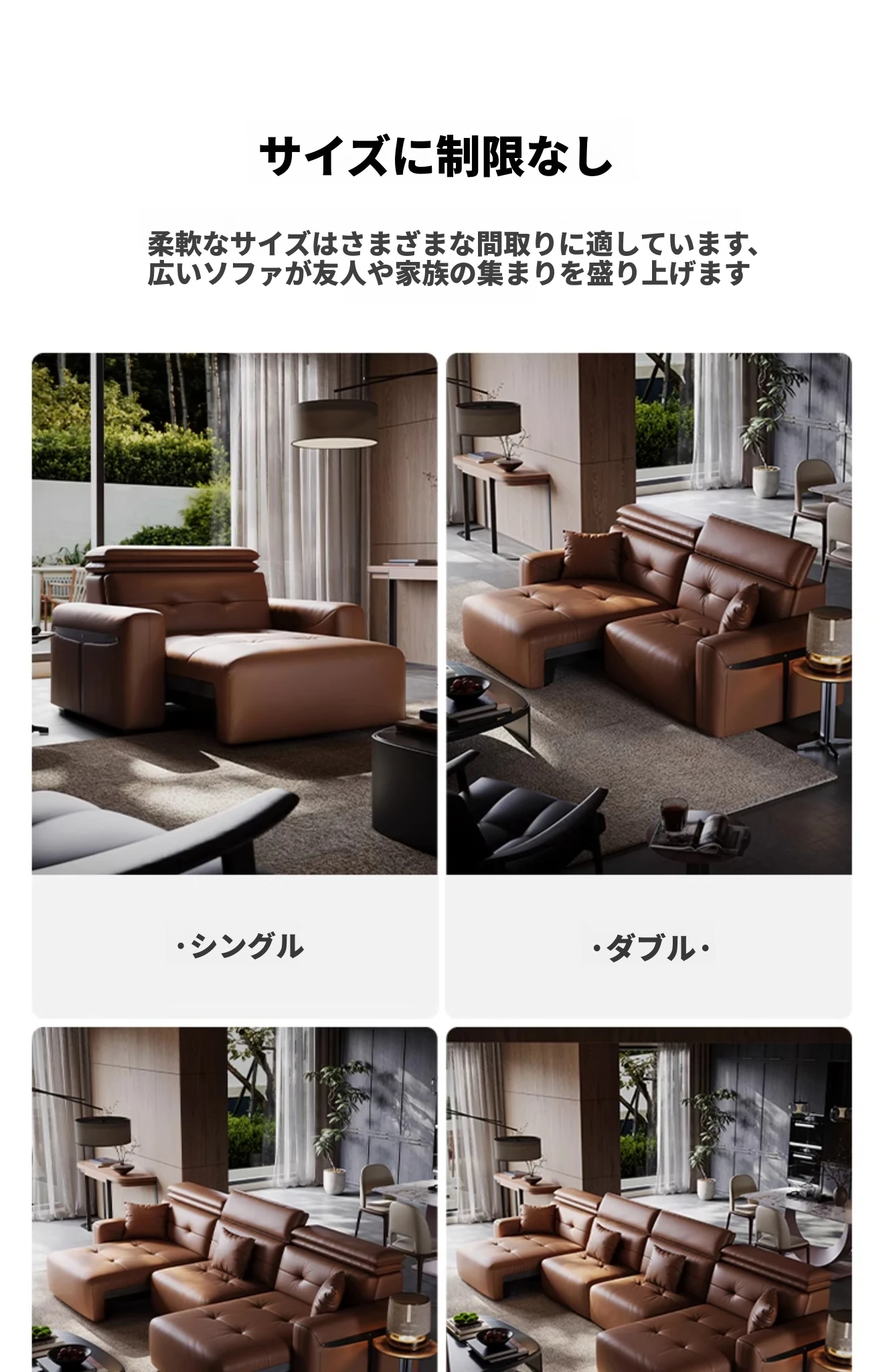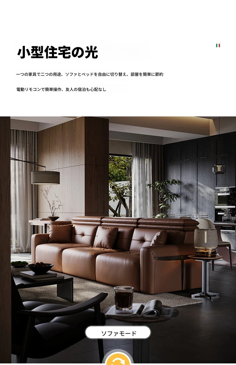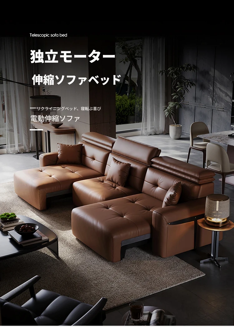 多機能電動ソファ - モダンでシンプルなデザイン、壁に寄り掛けないスタイル。伸縮可能なイタリアンミニマル本革ソファベッドで、快適なリラックスタイムをお届けします!