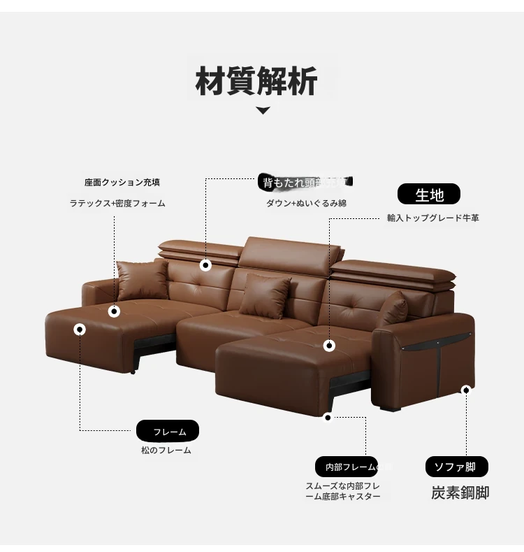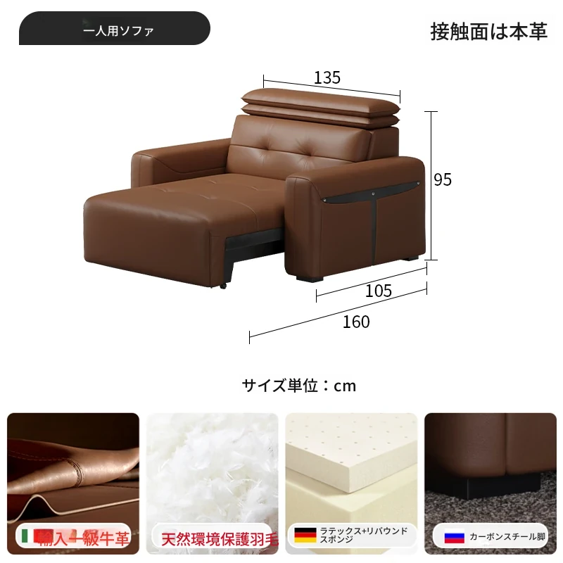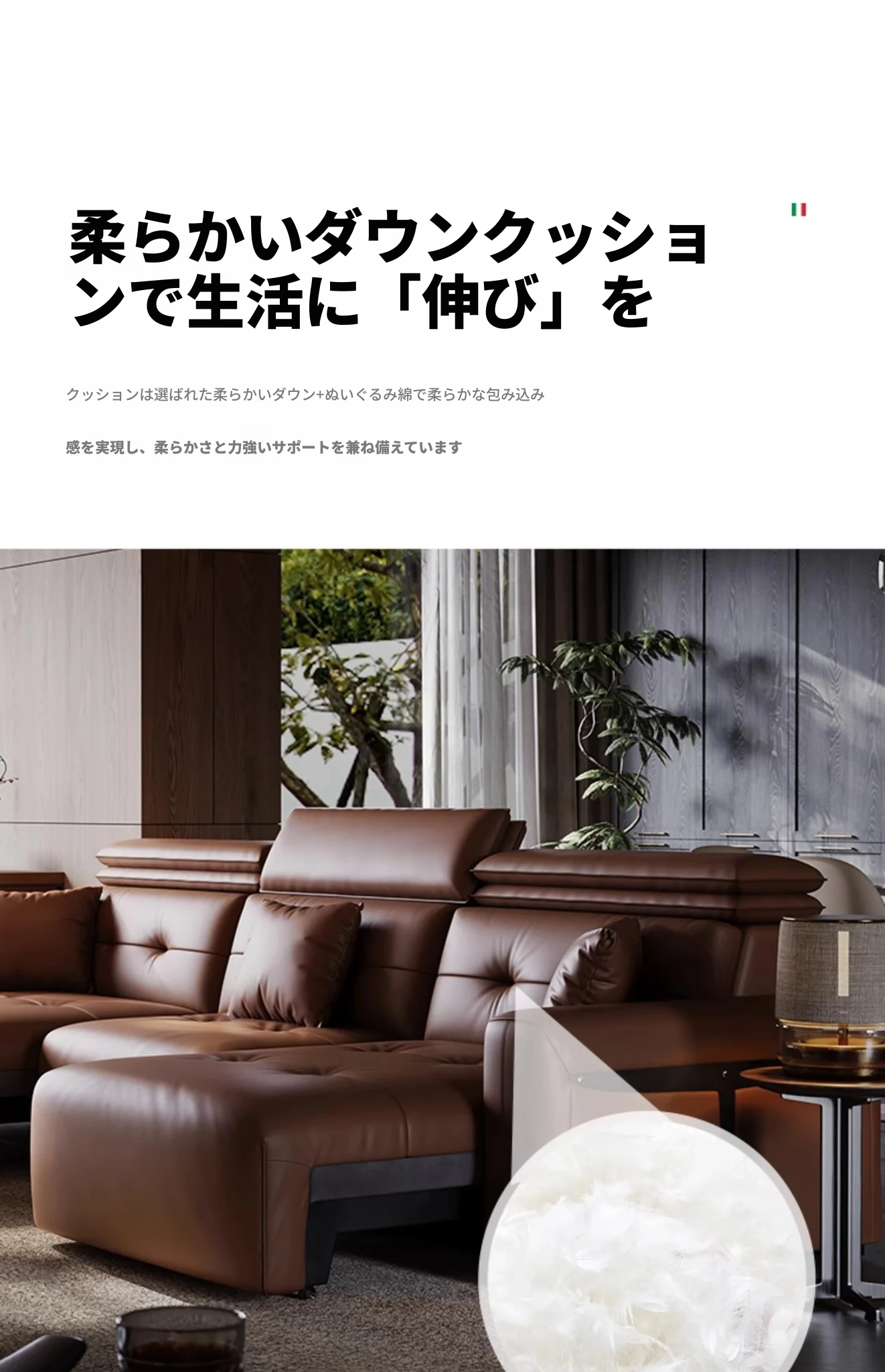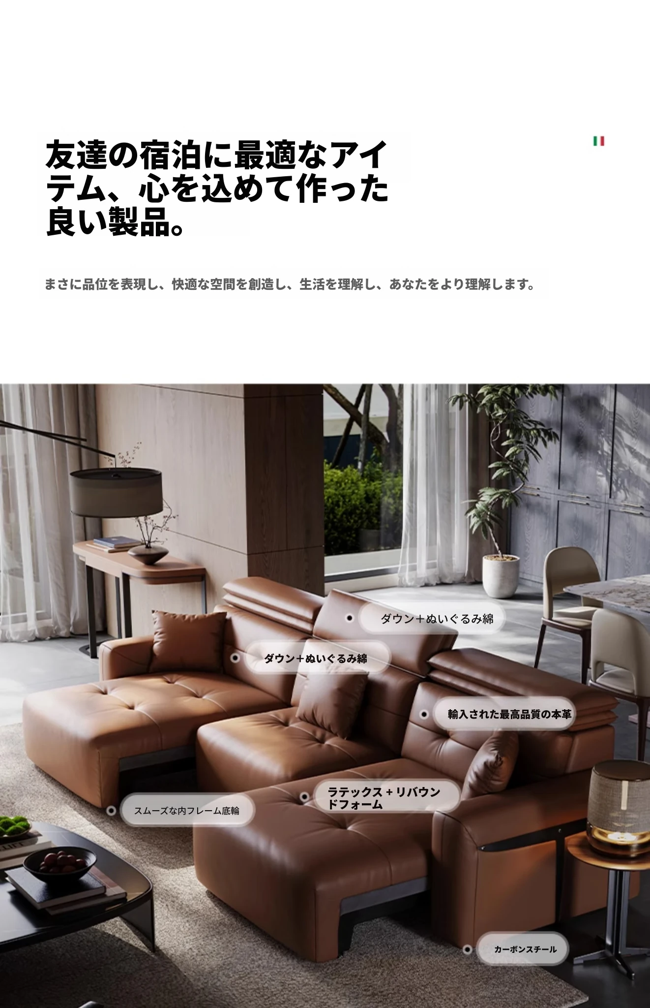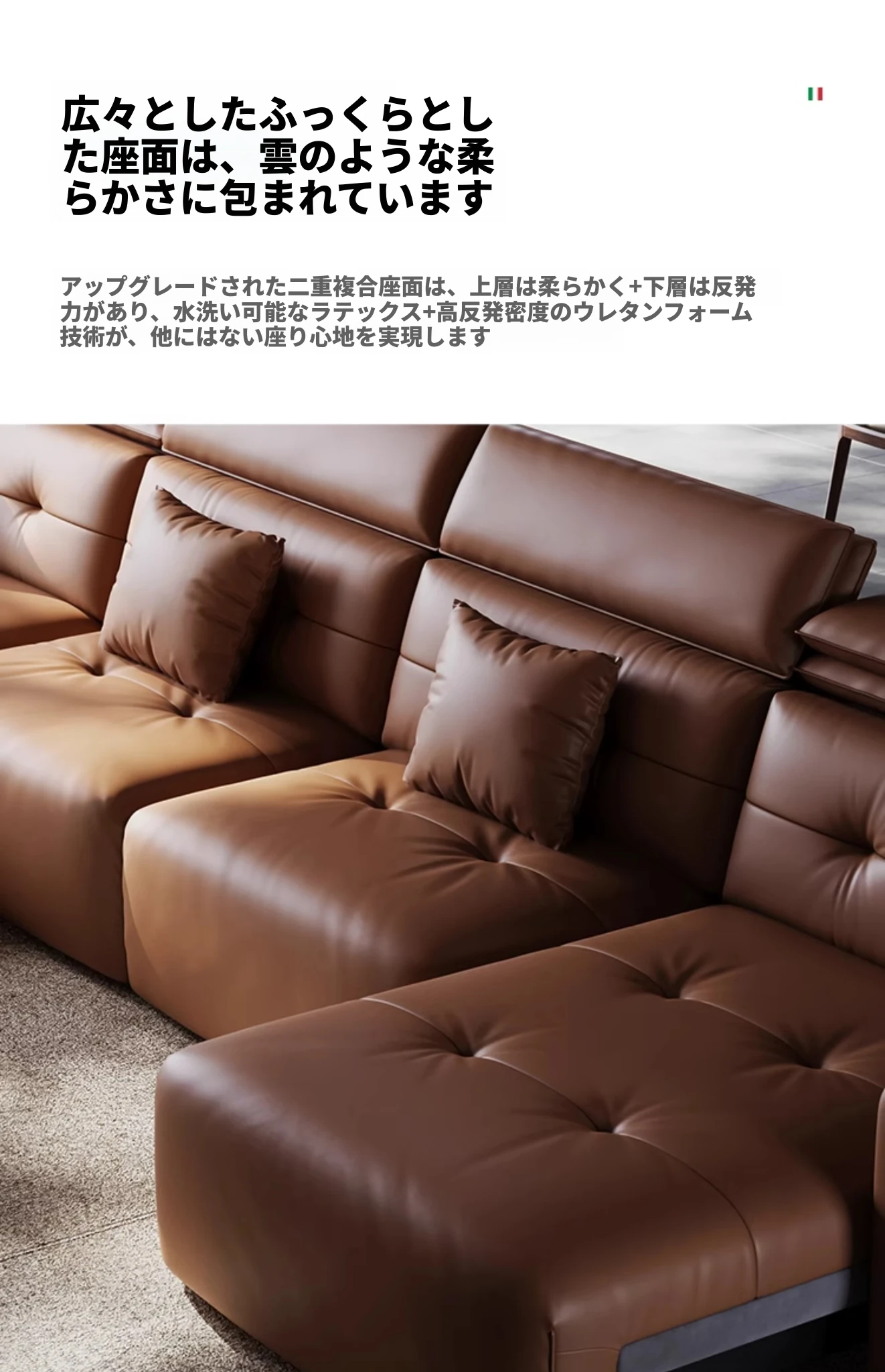 多機能電動ソファ - モダンでシンプルなデザイン、壁に寄り掛けないスタイル。伸縮可能なイタリアンミニマル本革ソファベッドで、快適なリラックスタイムをお届けします!