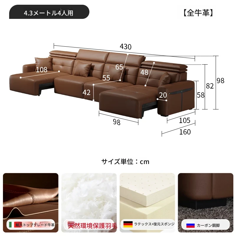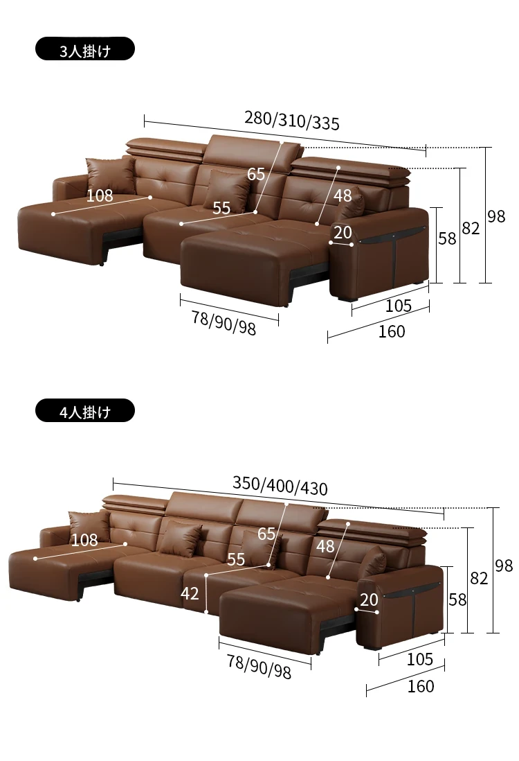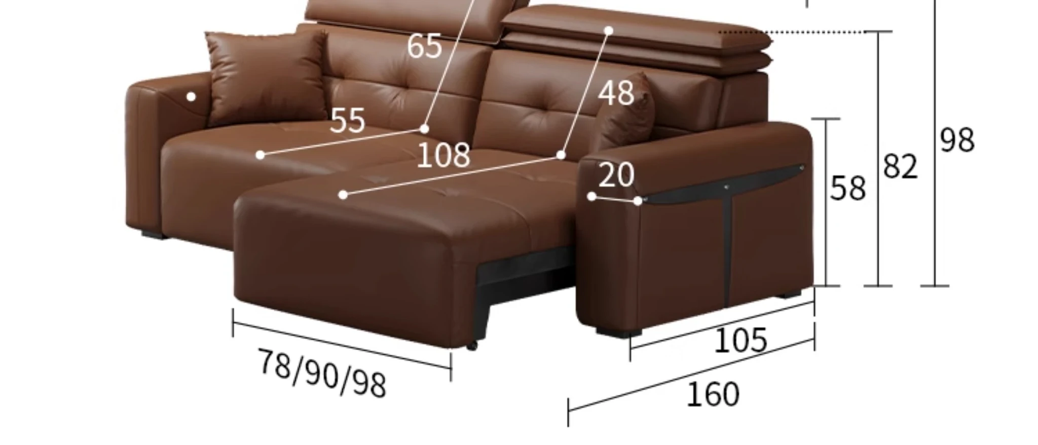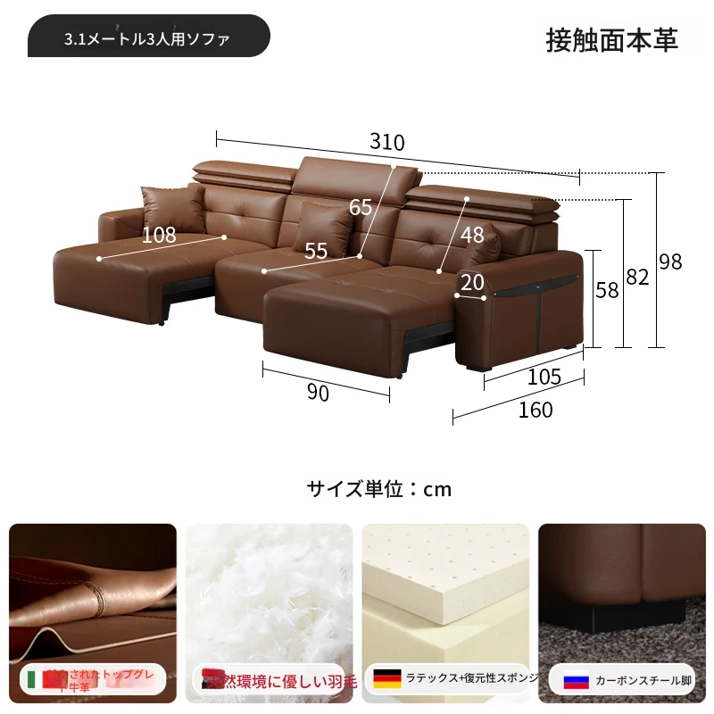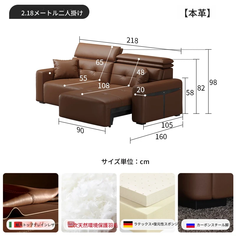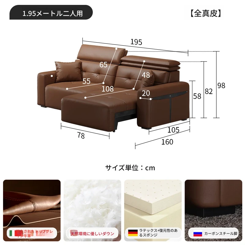 多機能電動ソファ - モダンでシンプルなデザイン、壁に寄り掛けないスタイル。伸縮可能なイタリアンミニマル本革ソファベッドで、快適なリラックスタイムをお届けします!