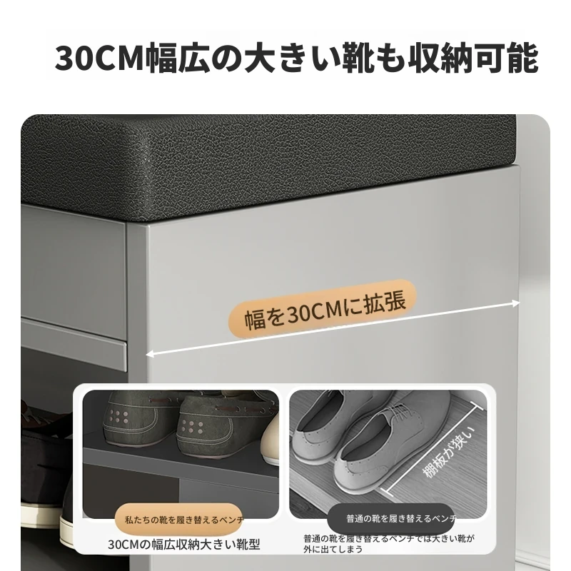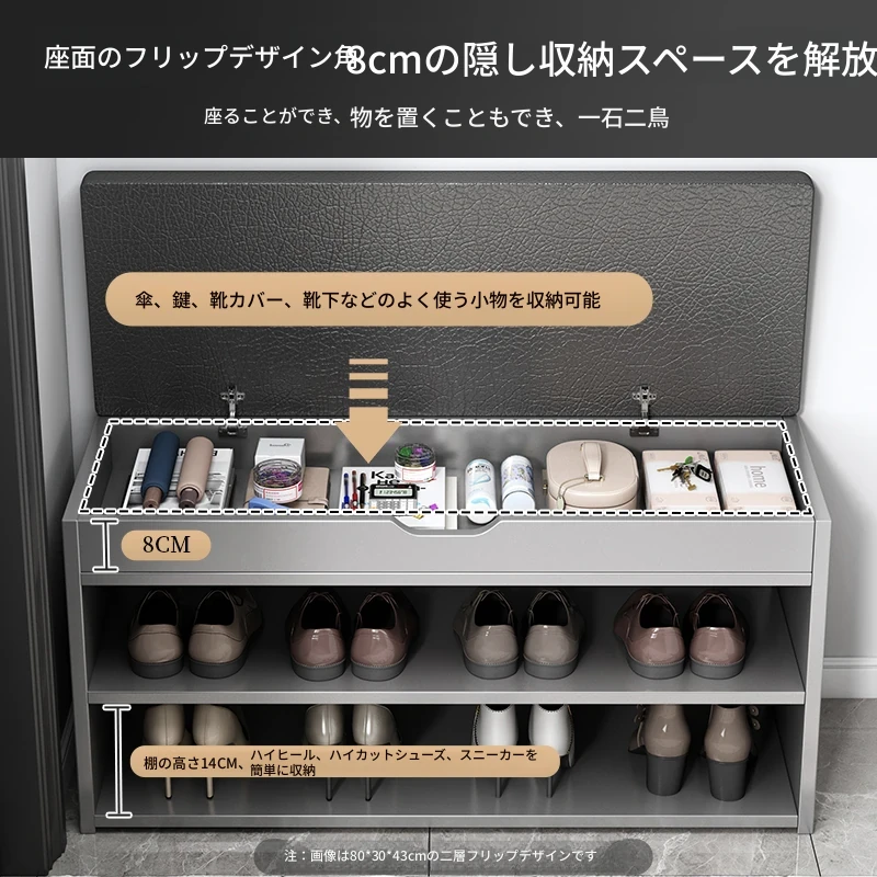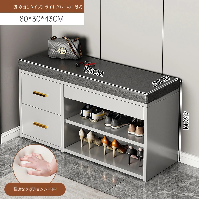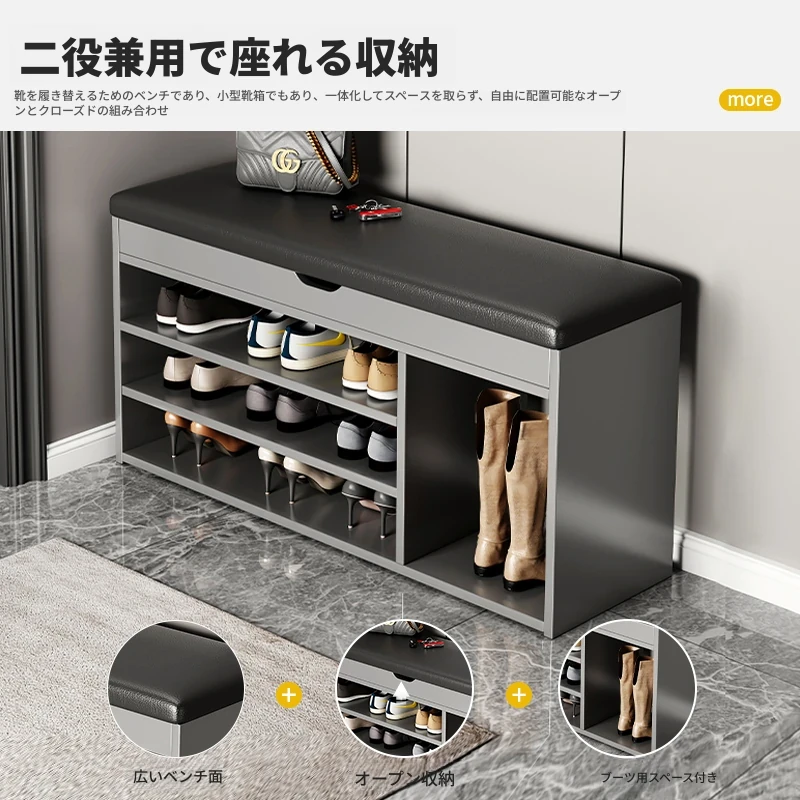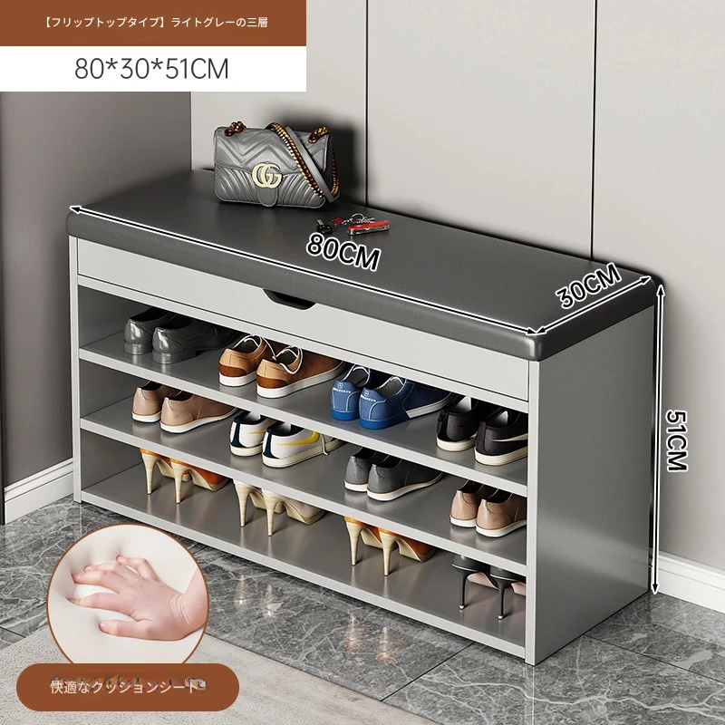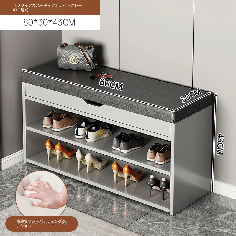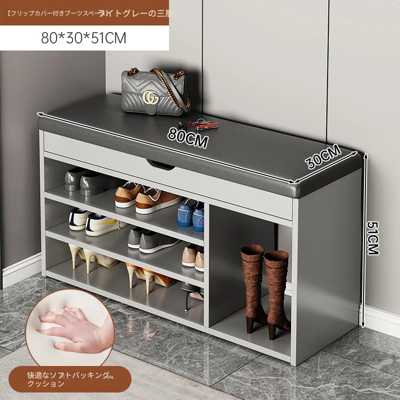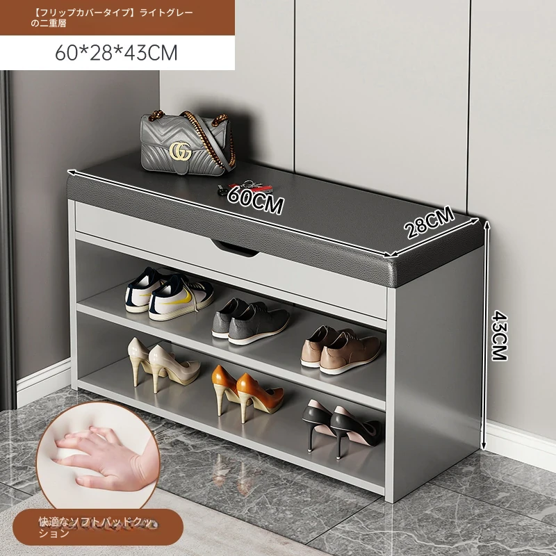 家庭用シューズベンチ・ソファ一体型シューズラック - 玄関にぴったりな多層収納&快適クッション付きの靴置き台!おしゃれで実用的、靴を履く時も楽々!