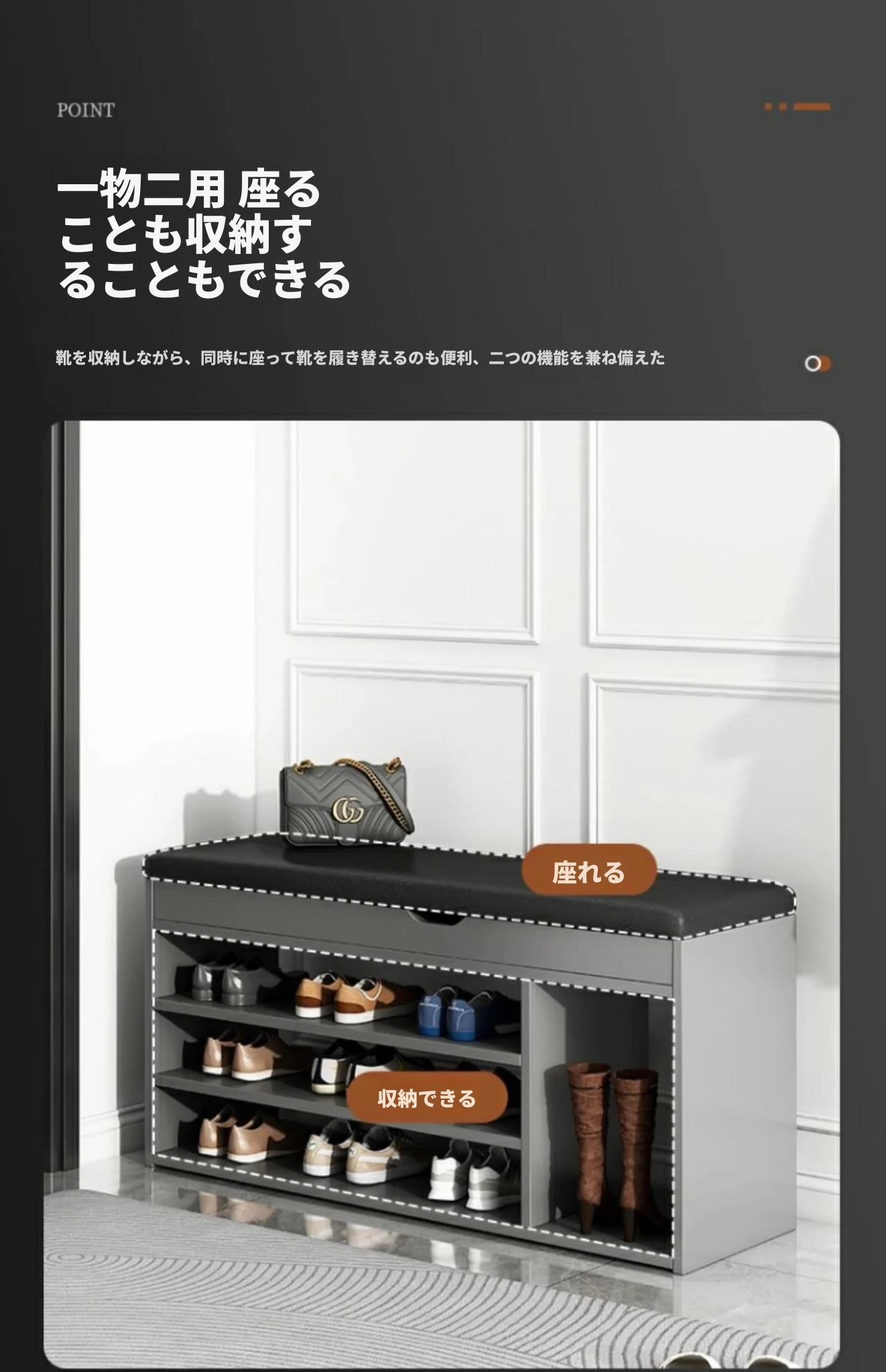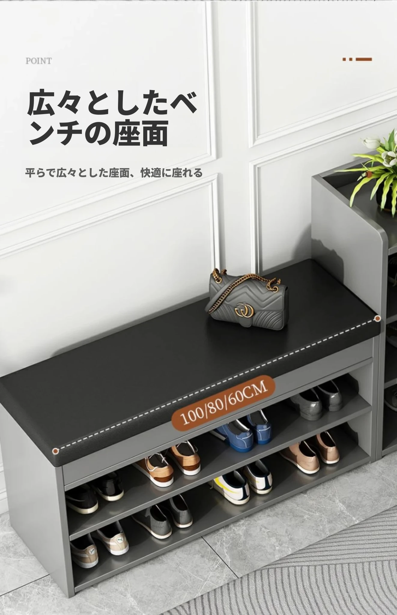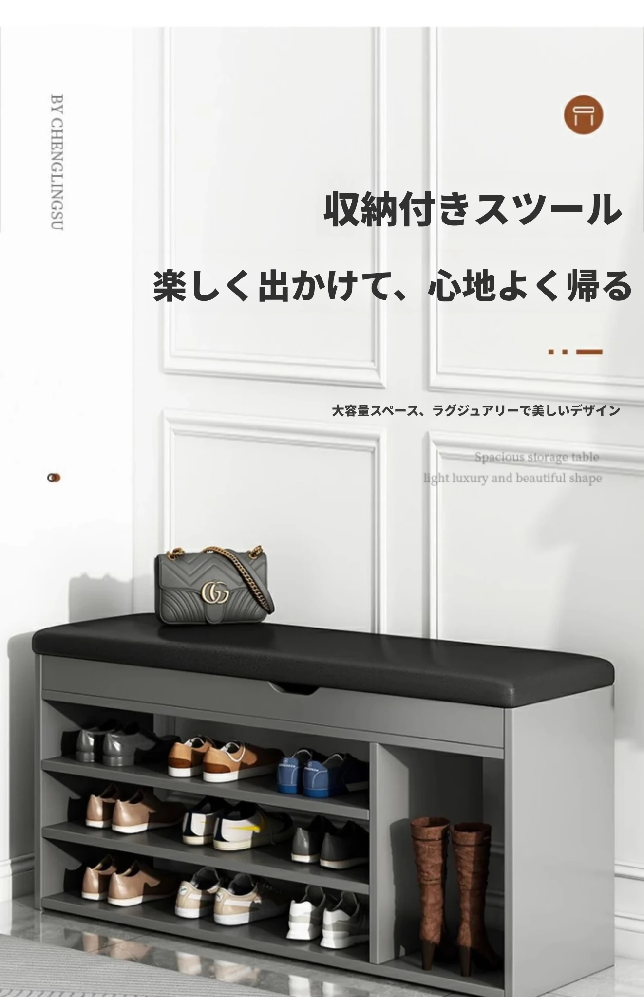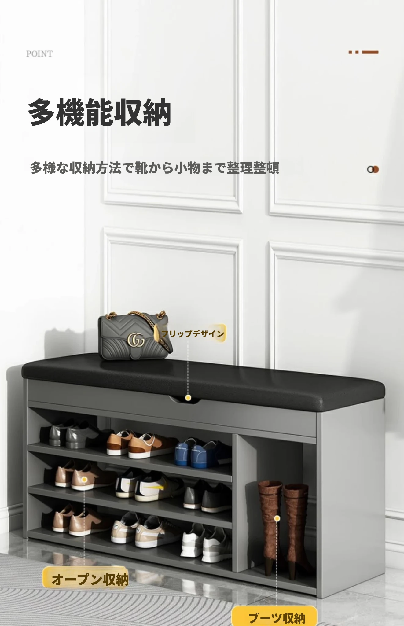 家庭用シューズベンチ・ソファ一体型シューズラック - 玄関にぴったりな多層収納&快適クッション付きの靴置き台!おしゃれで実用的、靴を履く時も楽々!