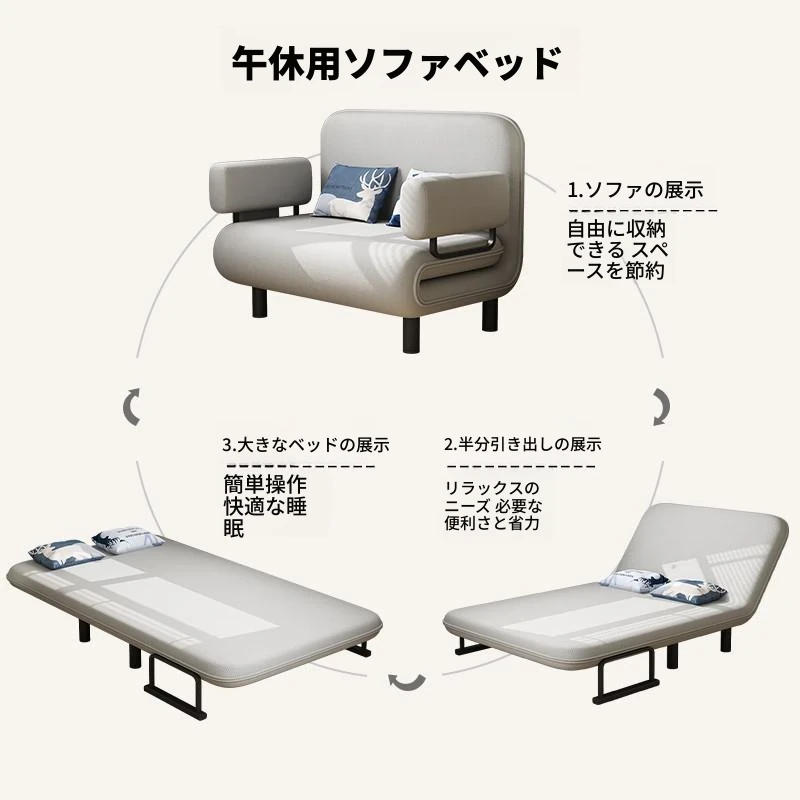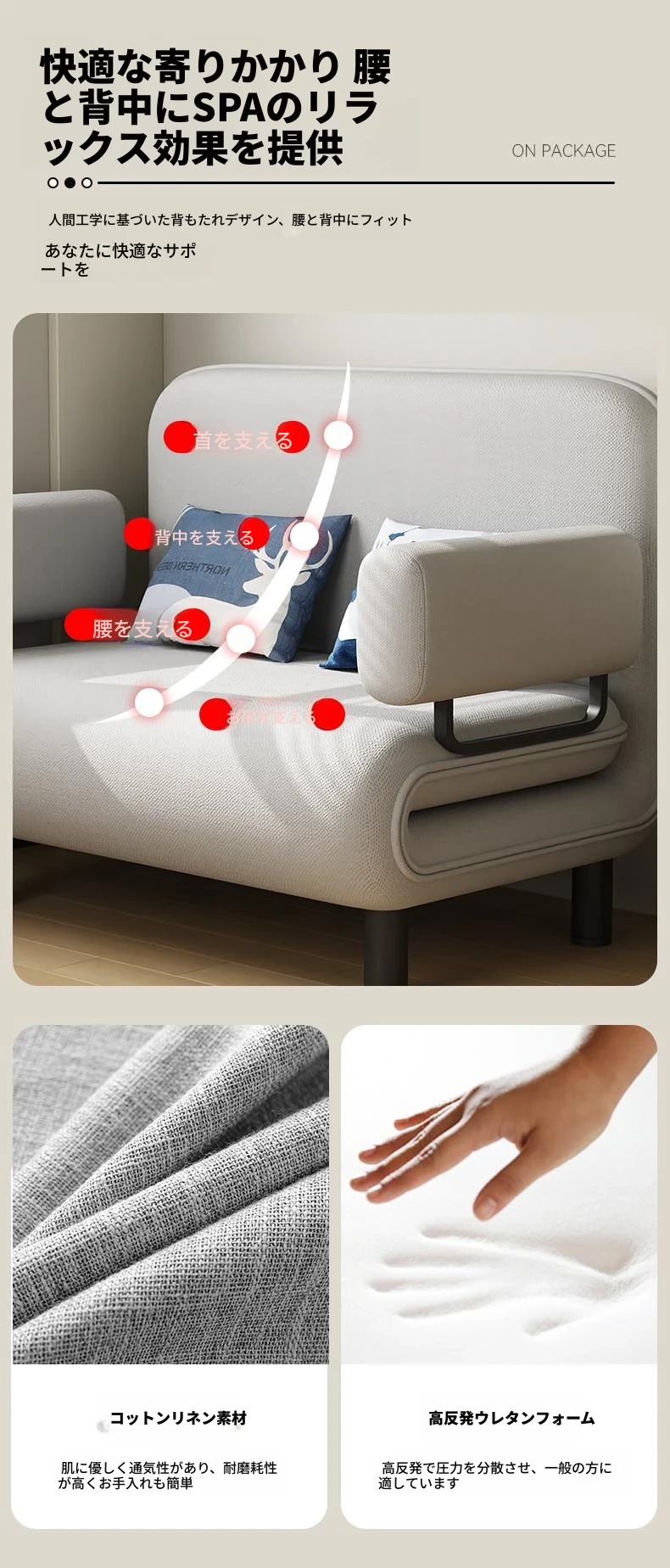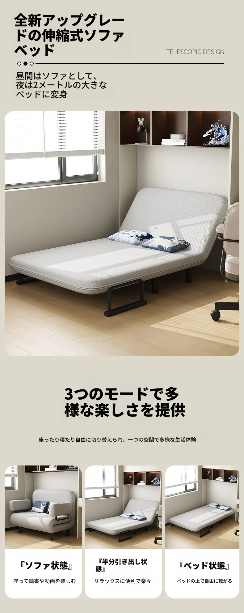 小型スペースに最適!折りたたみ式ソファベッド - 書斎やバルコニーにぴったりの多機能二人用布製ソファ。お昼寝やリラックスタイムに最適!