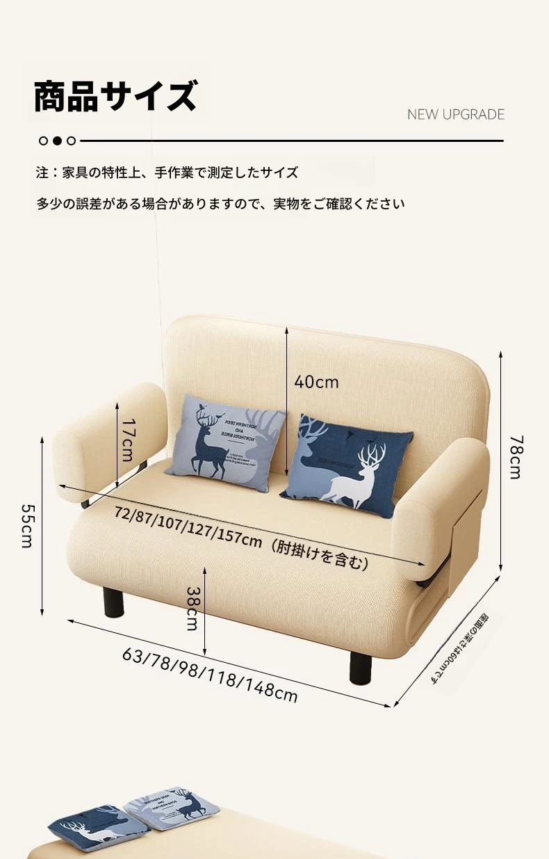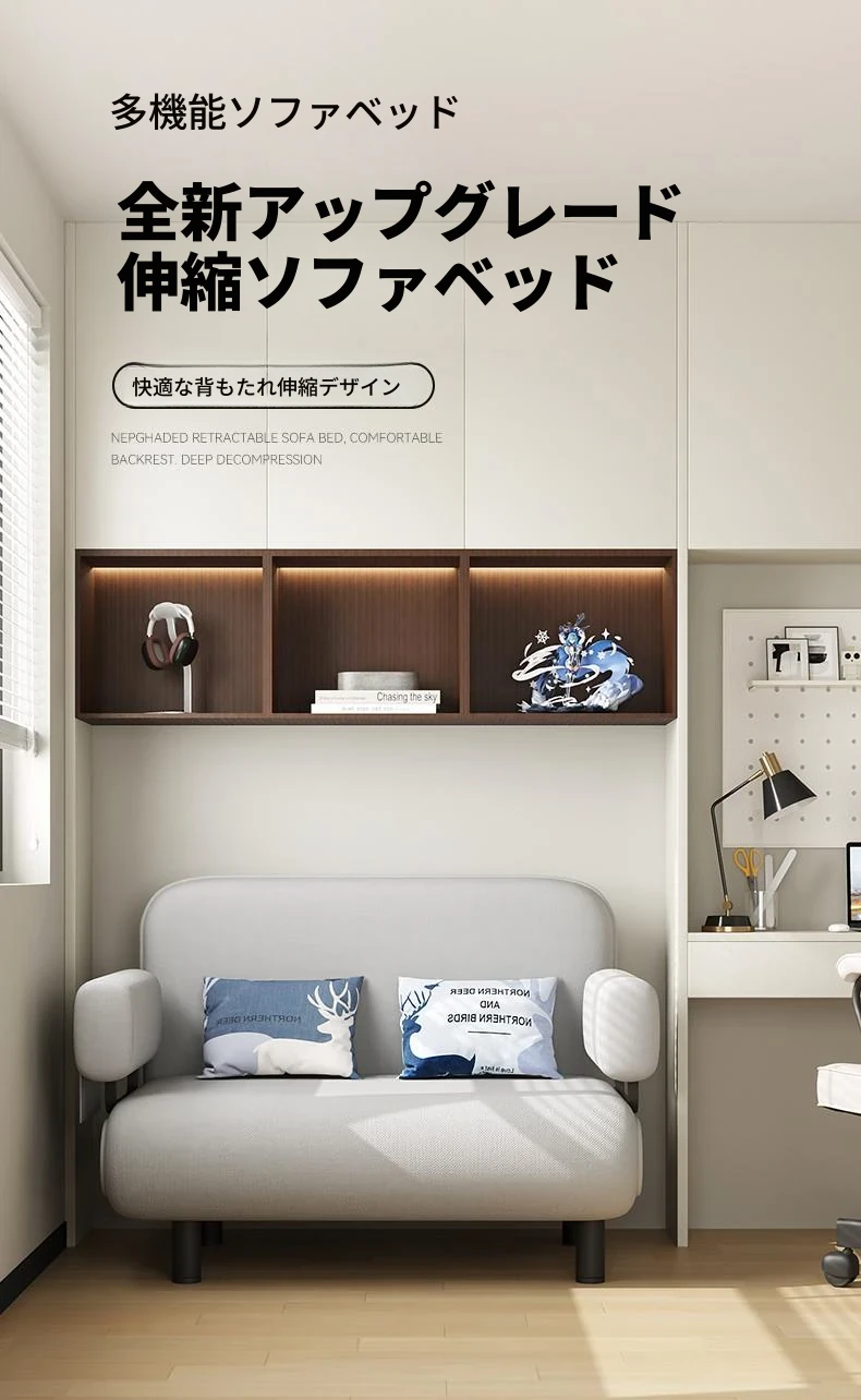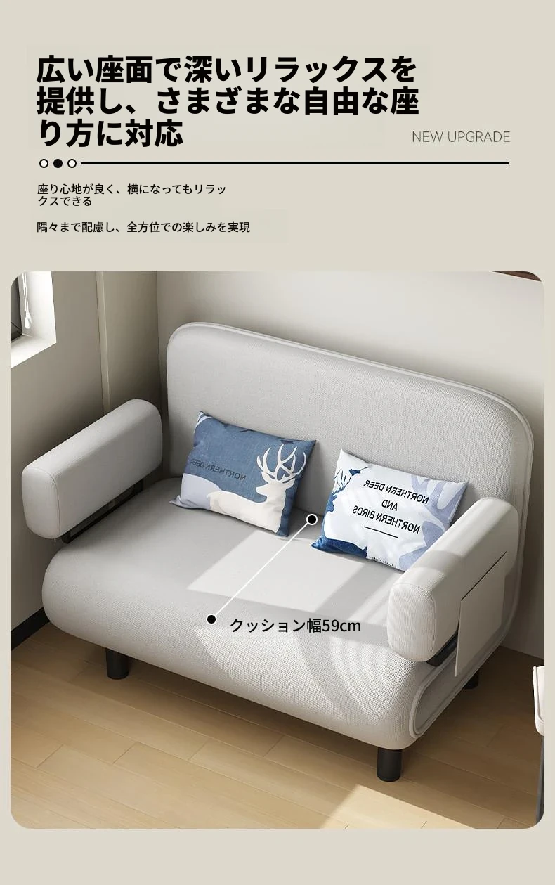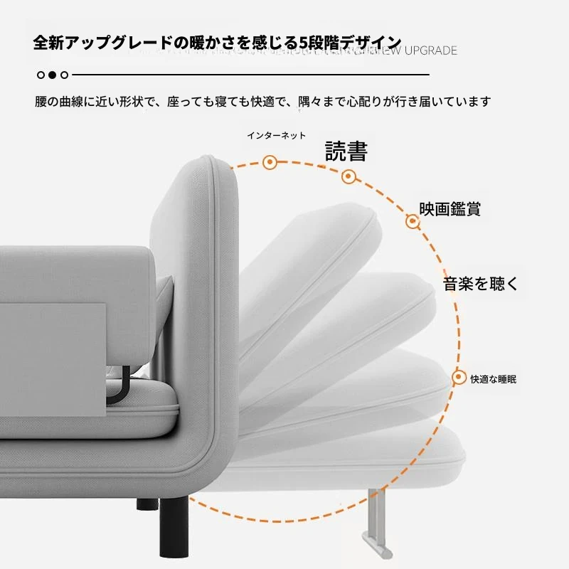 小型スペースに最適!折りたたみ式ソファベッド - 書斎やバルコニーにぴったりの多機能二人用布製ソファ。お昼寝やリラックスタイムに最適!