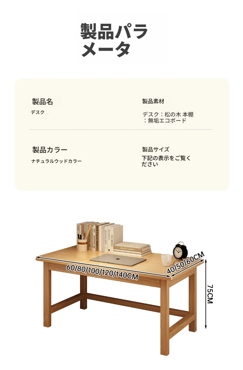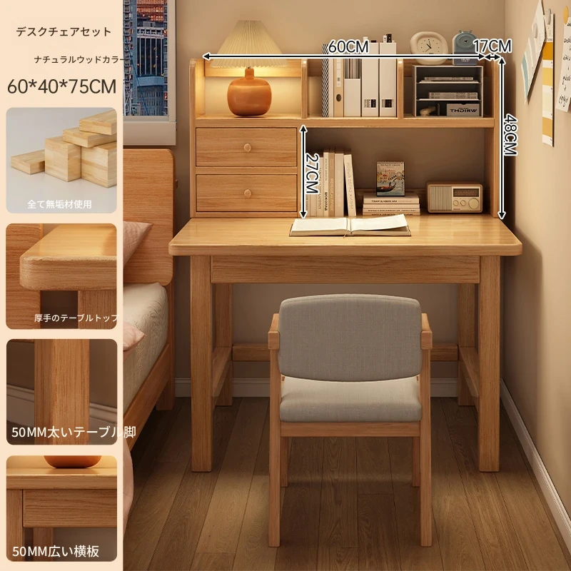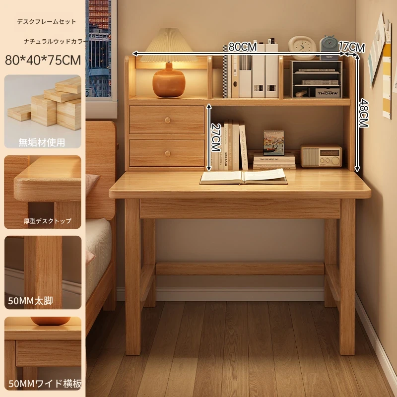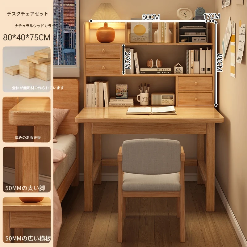 【高い豪華テーブルフレームセット】単体テーブル+南洋桉木芯書棚+無垢材椅子 | ナチュラルウッド色80*40