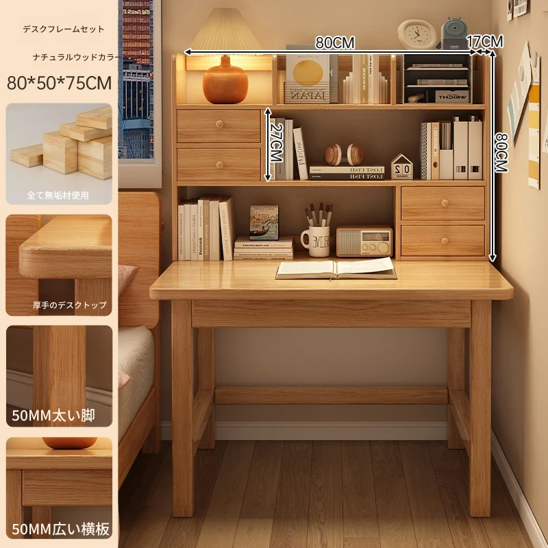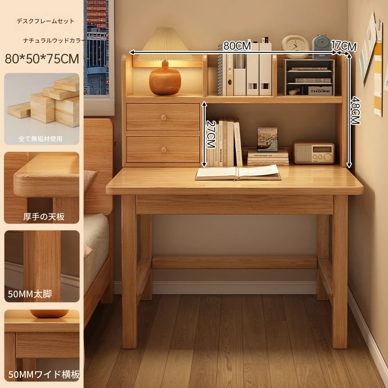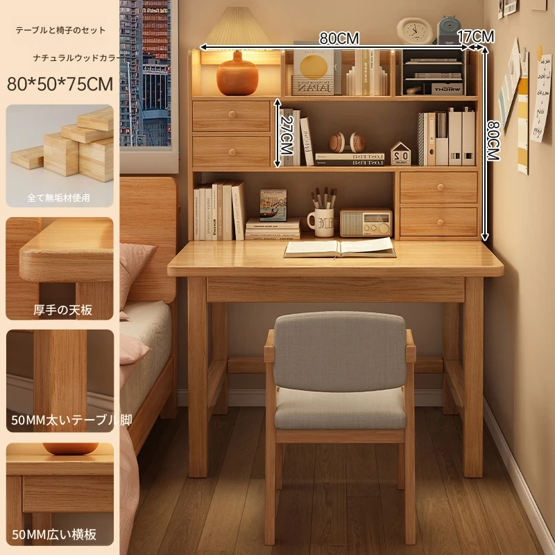 【高い豪華テーブルフレームセット】単体テーブル+南洋桉木芯書棚+無垢材椅子 | ナチュラルウッド色80*50