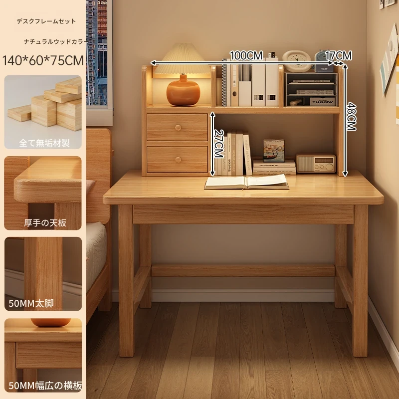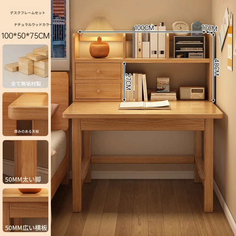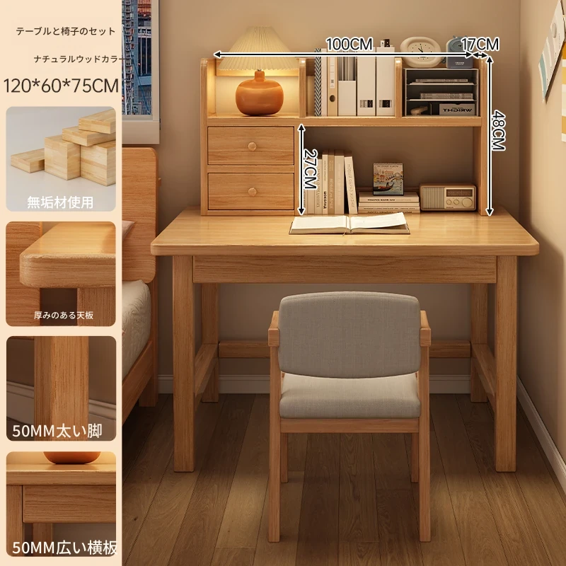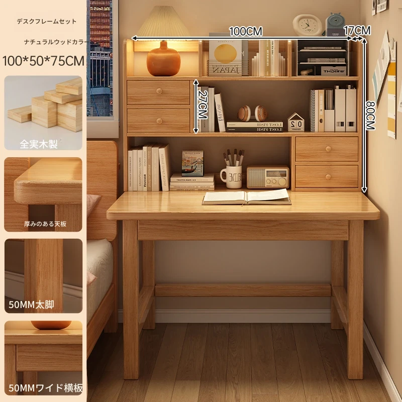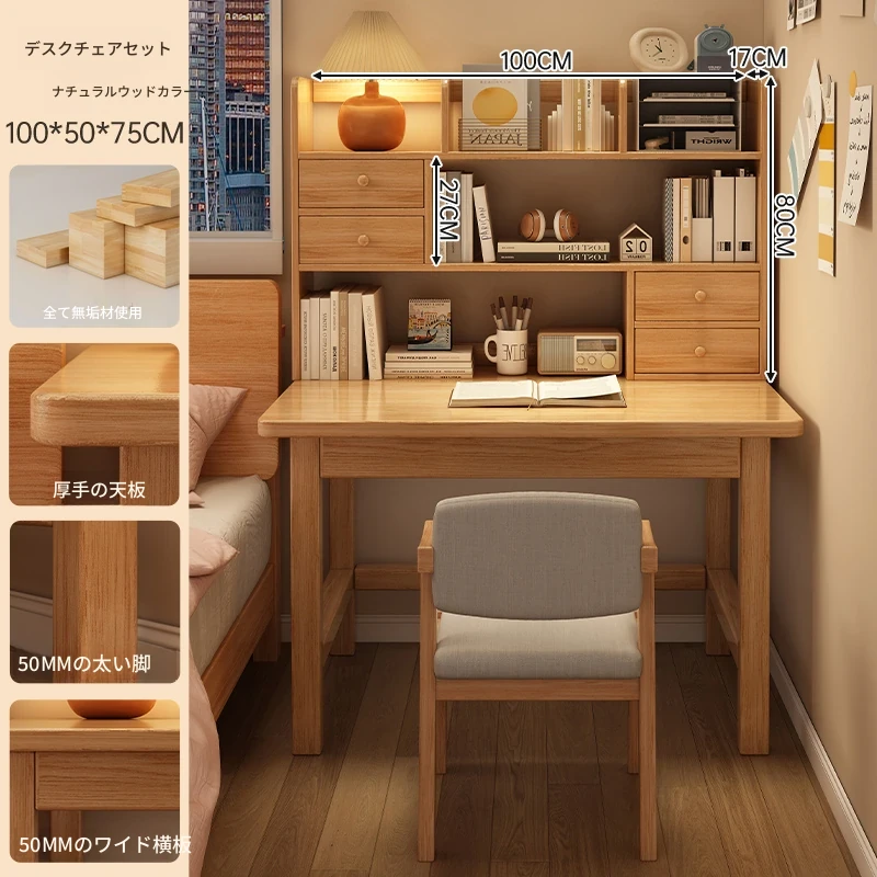 【高い豪華テーブルフレームセット】単体テーブル+南洋桉木芯書棚+無垢材椅子 | ナチュラルウッド色100*50