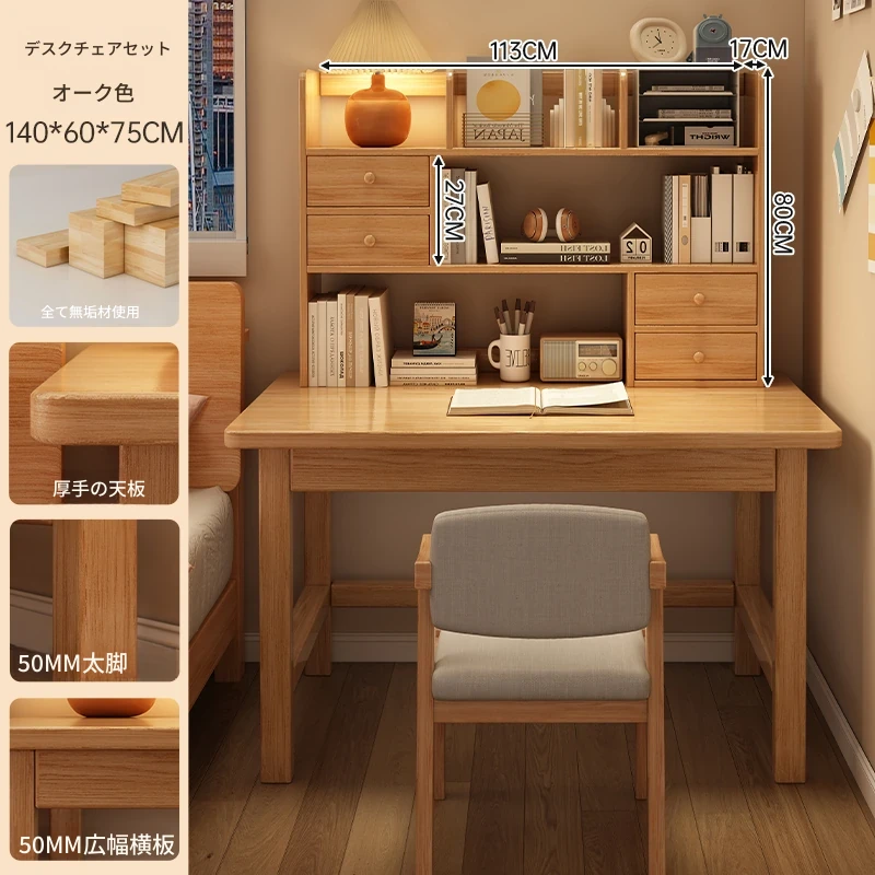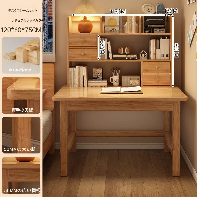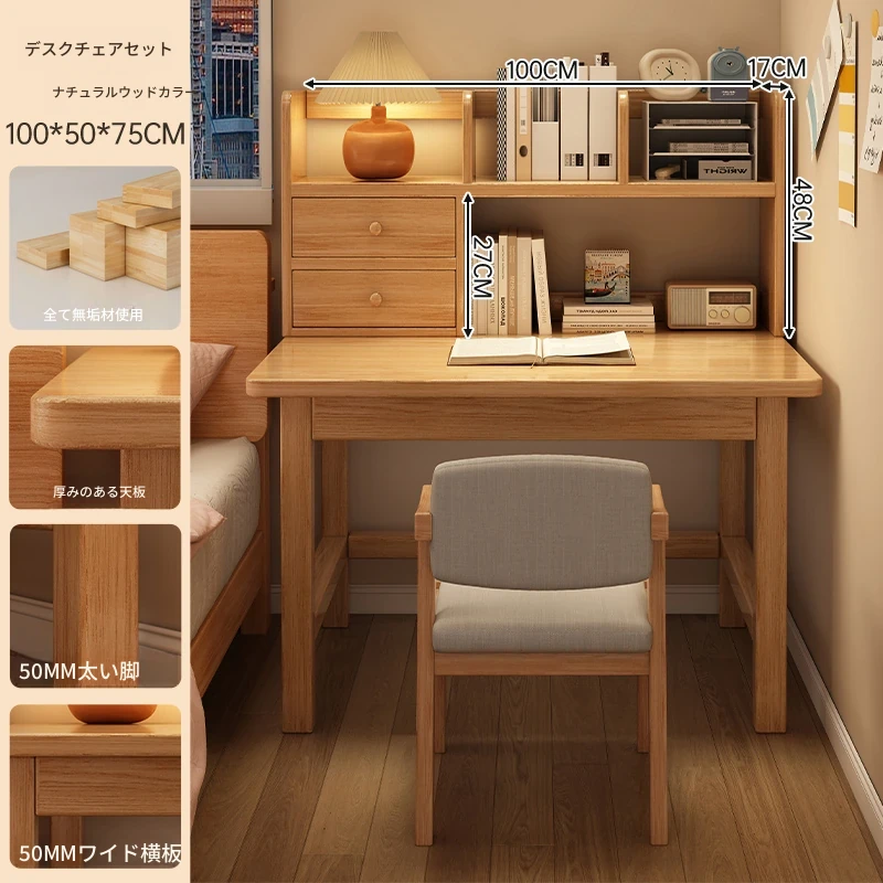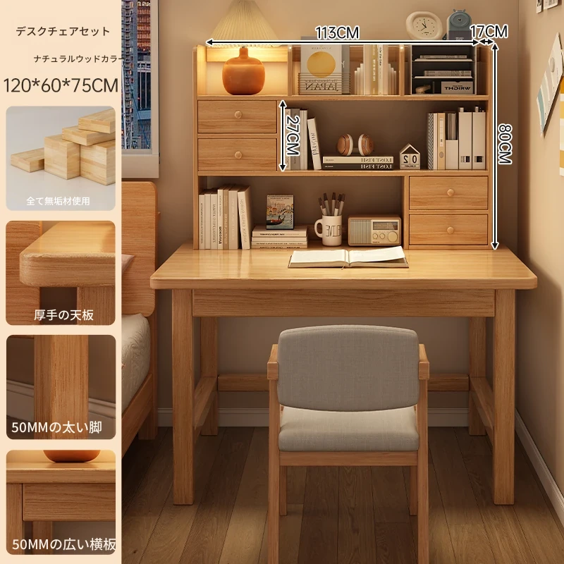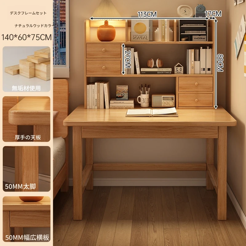 【高い豪華テーブルフレームセット】単体テーブル+南洋桉木芯書棚+無垢材椅子 | ナチュラルウッド色100*50