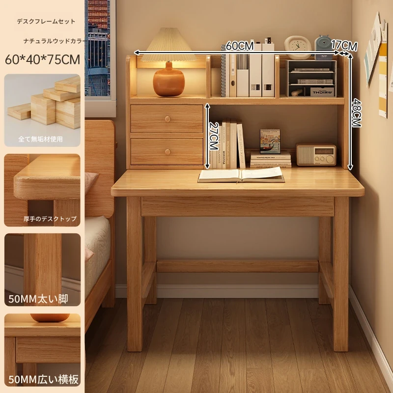【豪華テーブルフレームセット】単体テーブル+南洋桉木芯書棚+無垢材椅子 | ナチュラルウッド色60*40