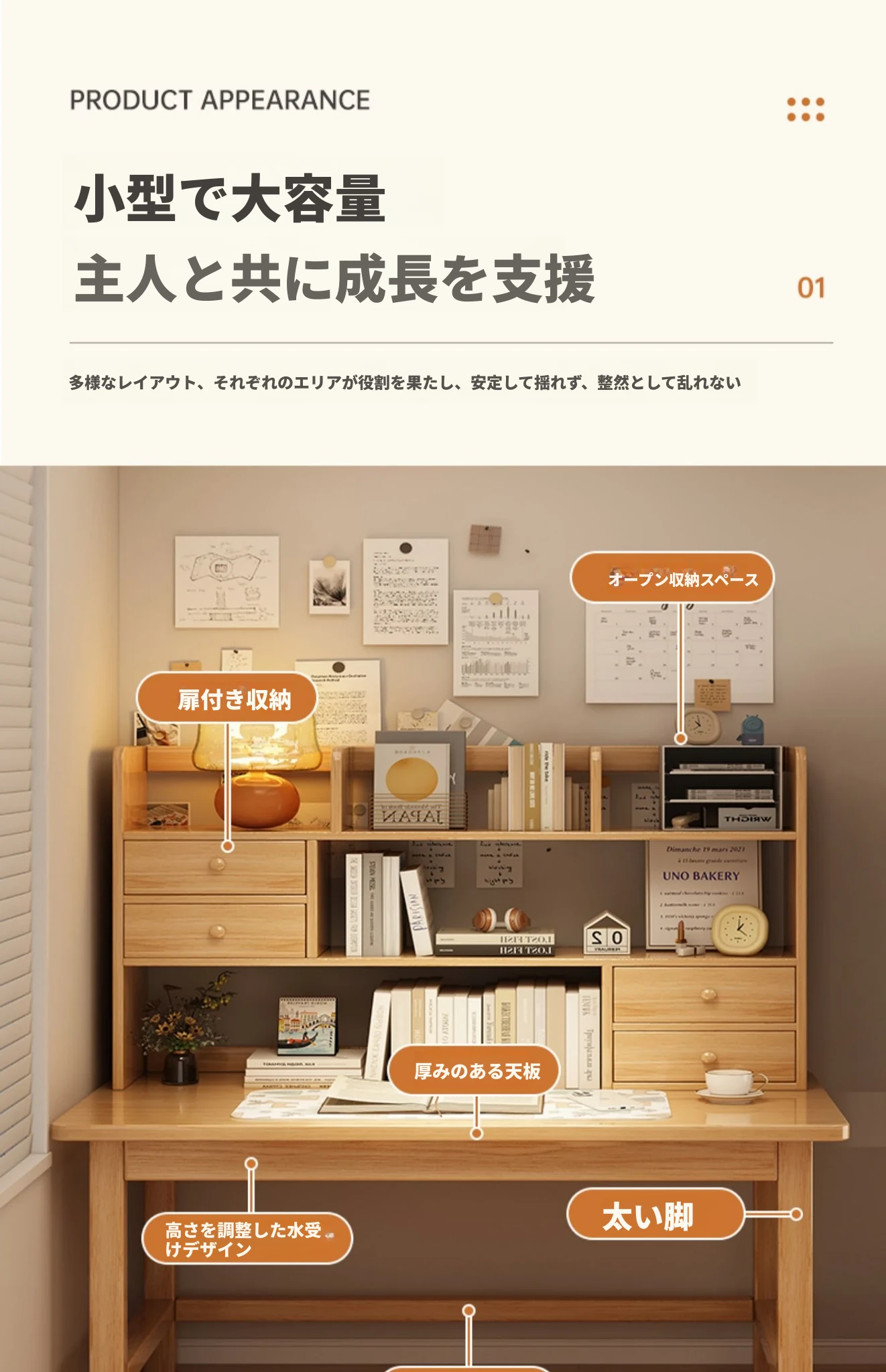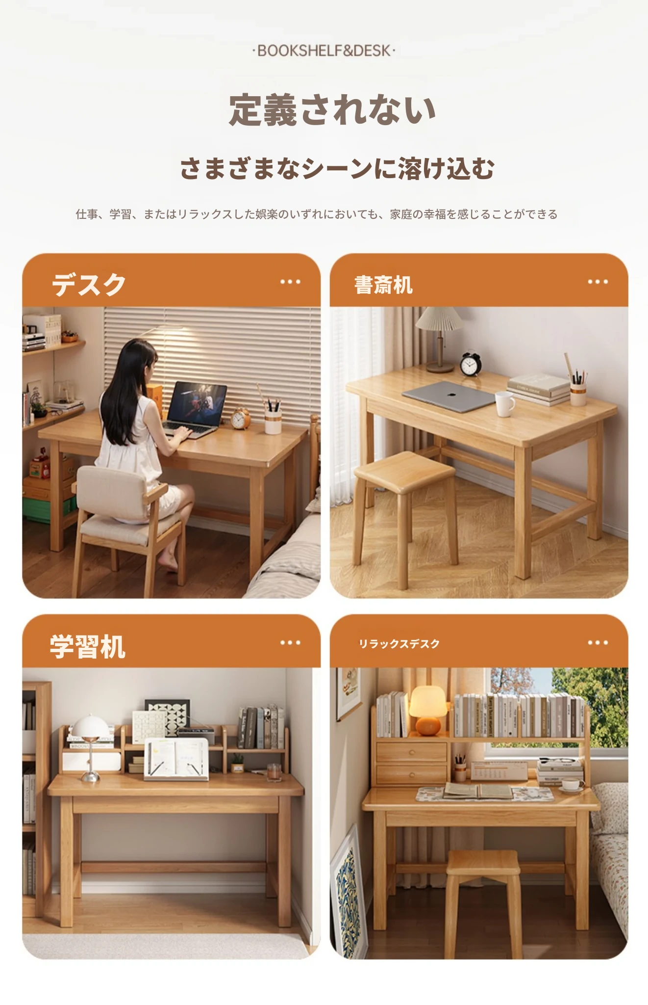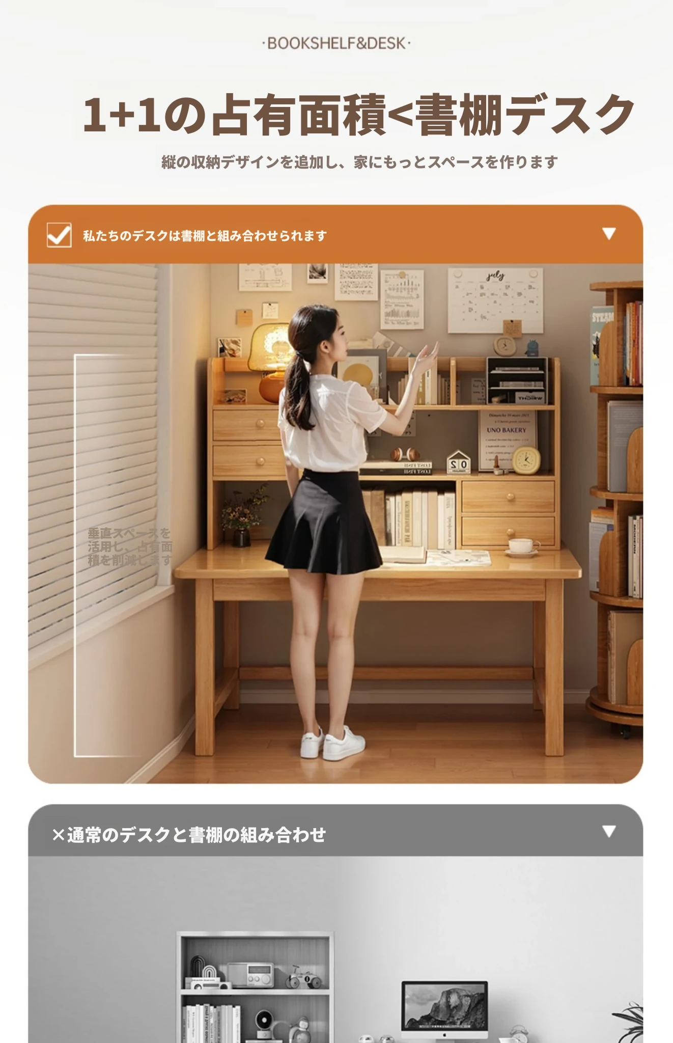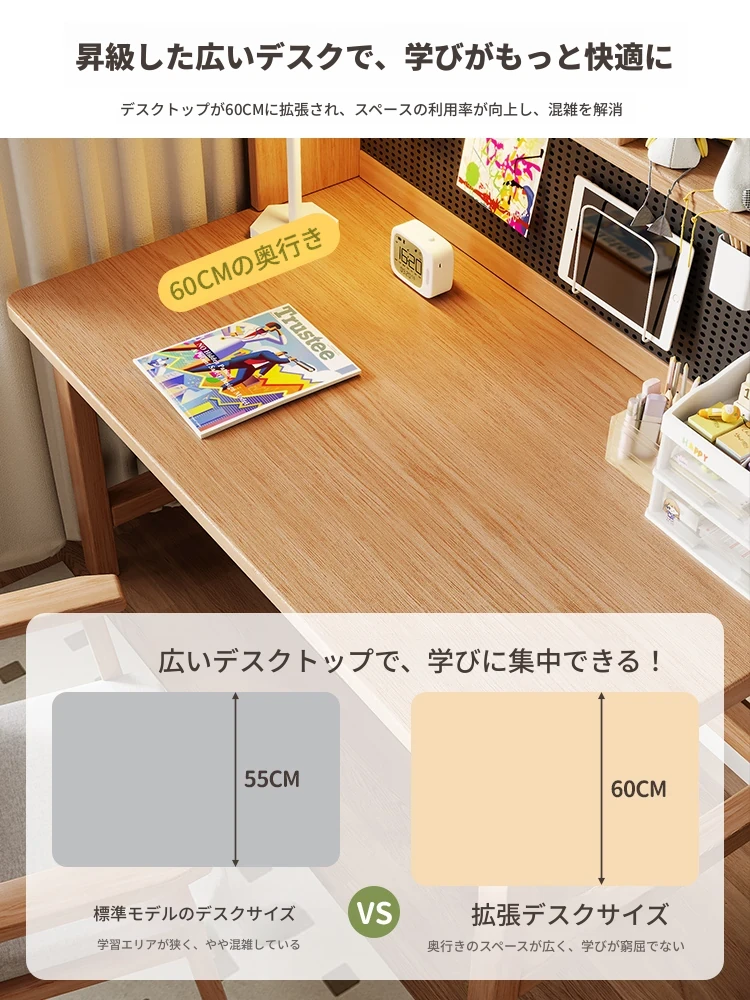 多機能木製デスク&本棚一体型!狭いスペースにぴったりな家庭用デスク。学生や在宅勤務にも最適なコンパクトデザインで、勉強や仕事を快適にサポートします。