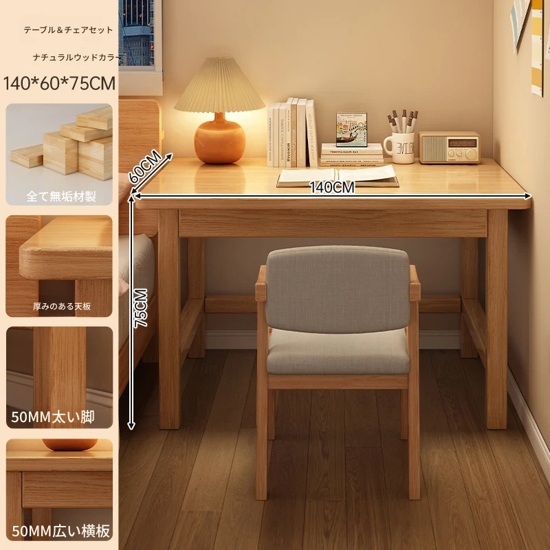 【無垢材テーブル椅子セット】単体テーブル+無垢材椅子 | ナチュラルウッド色140*60