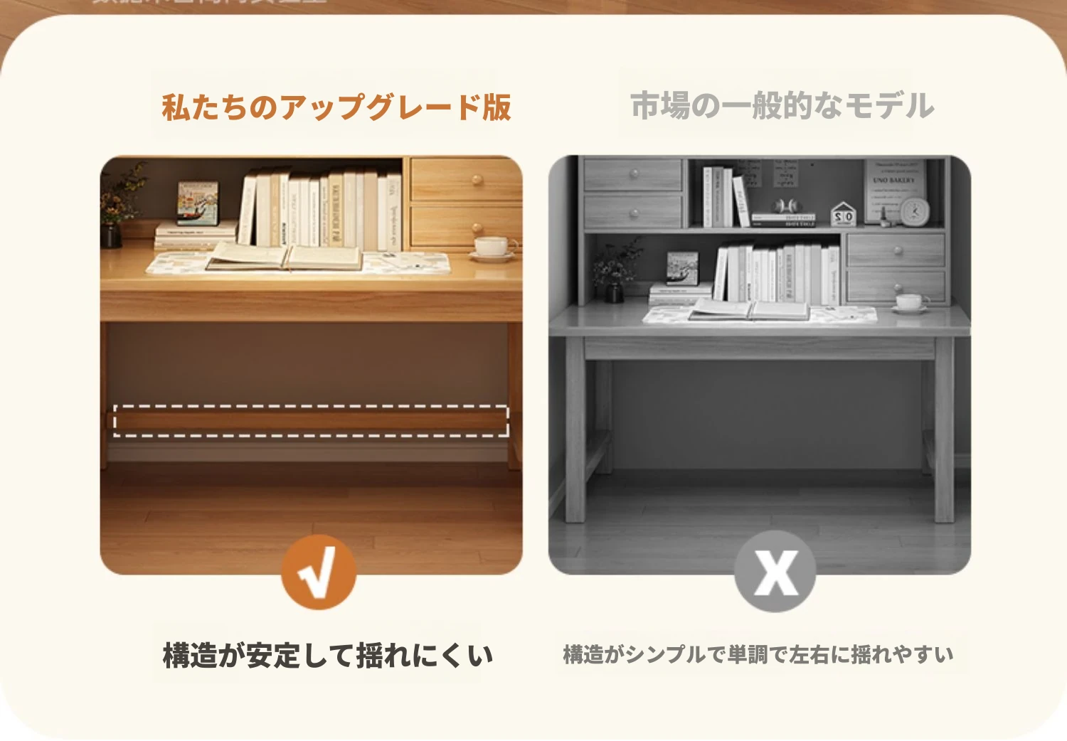【高い無垢材テーブルフレームセット】単体テーブル+南洋桉木芯書棚 | ナチュラルウッド色80*40