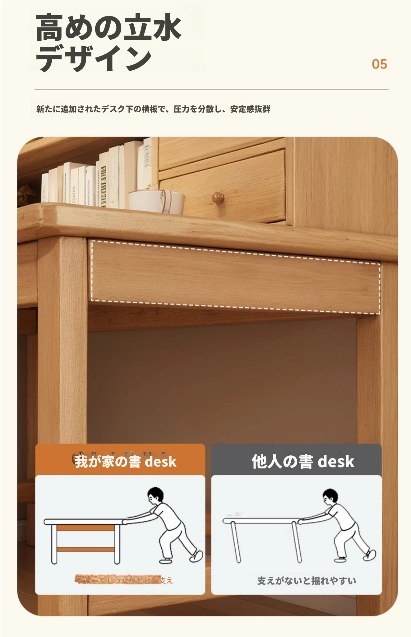 【高い無垢材テーブルフレームセット】単体テーブル+南洋桉木芯書棚 | ナチュラルウッド色80*50