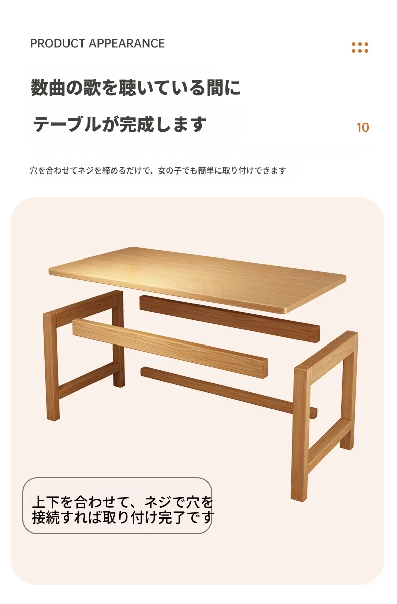 【無垢材テーブル椅子セット】単体テーブル+無垢材椅子 | ナチュラルウッド色80*40