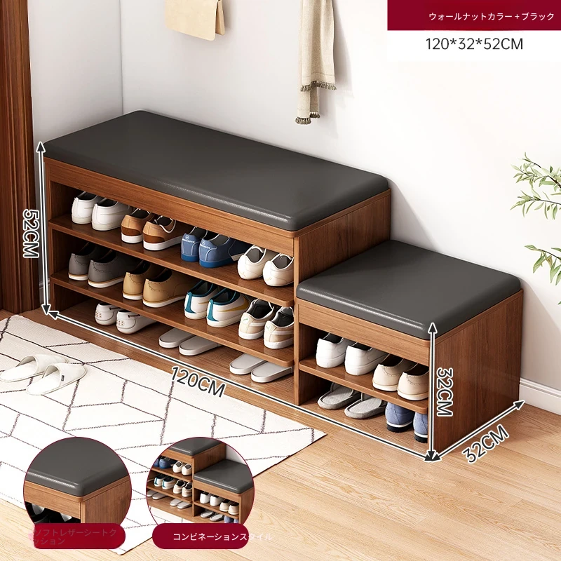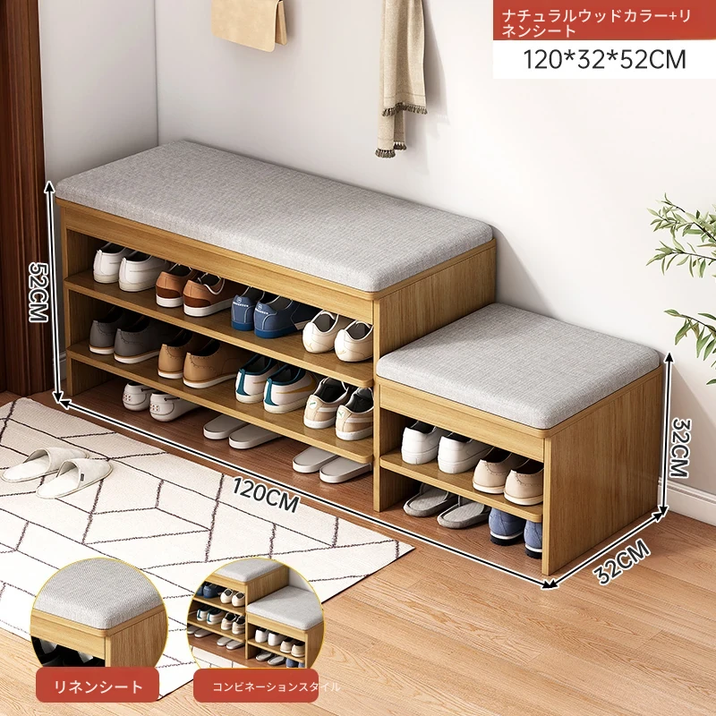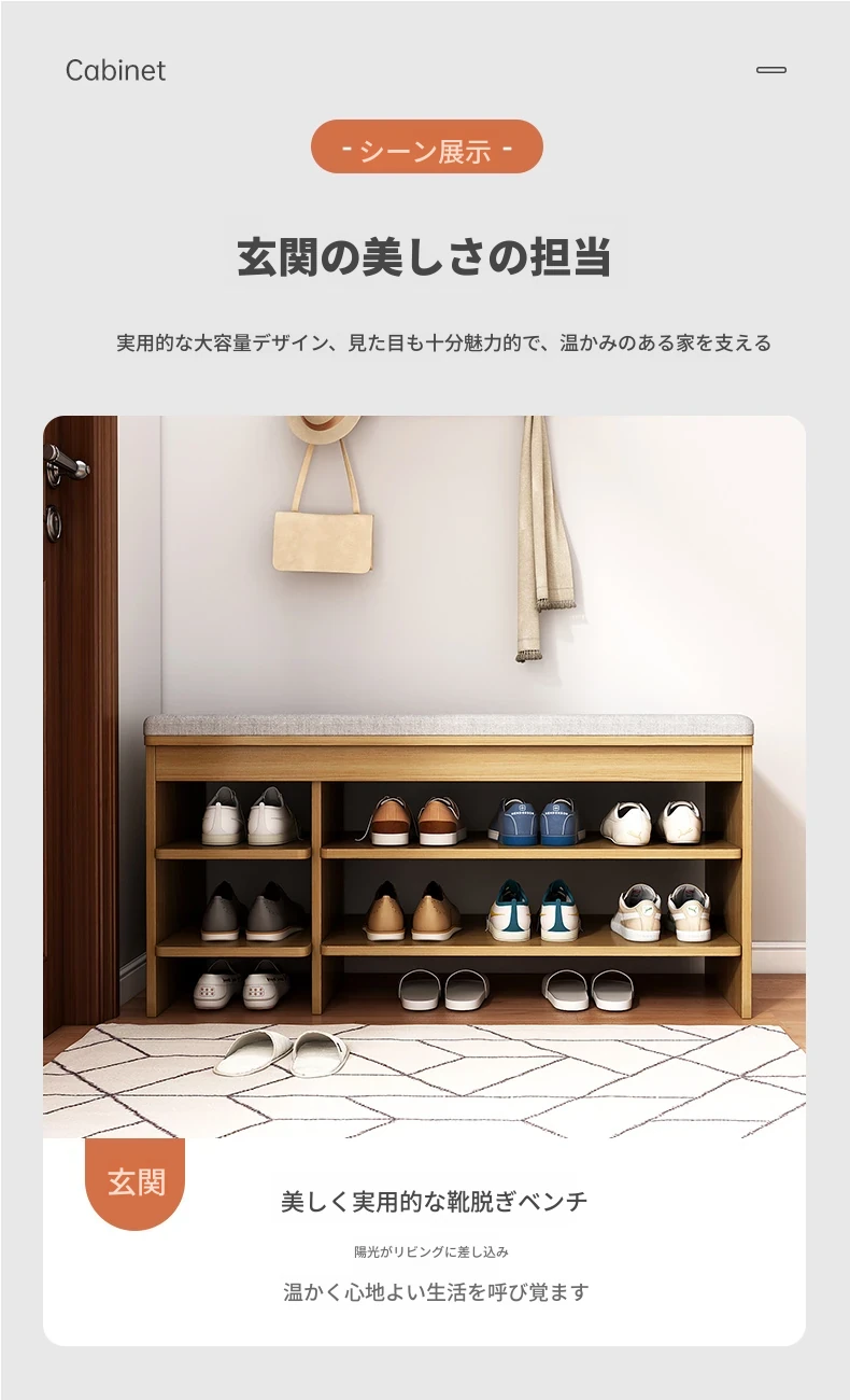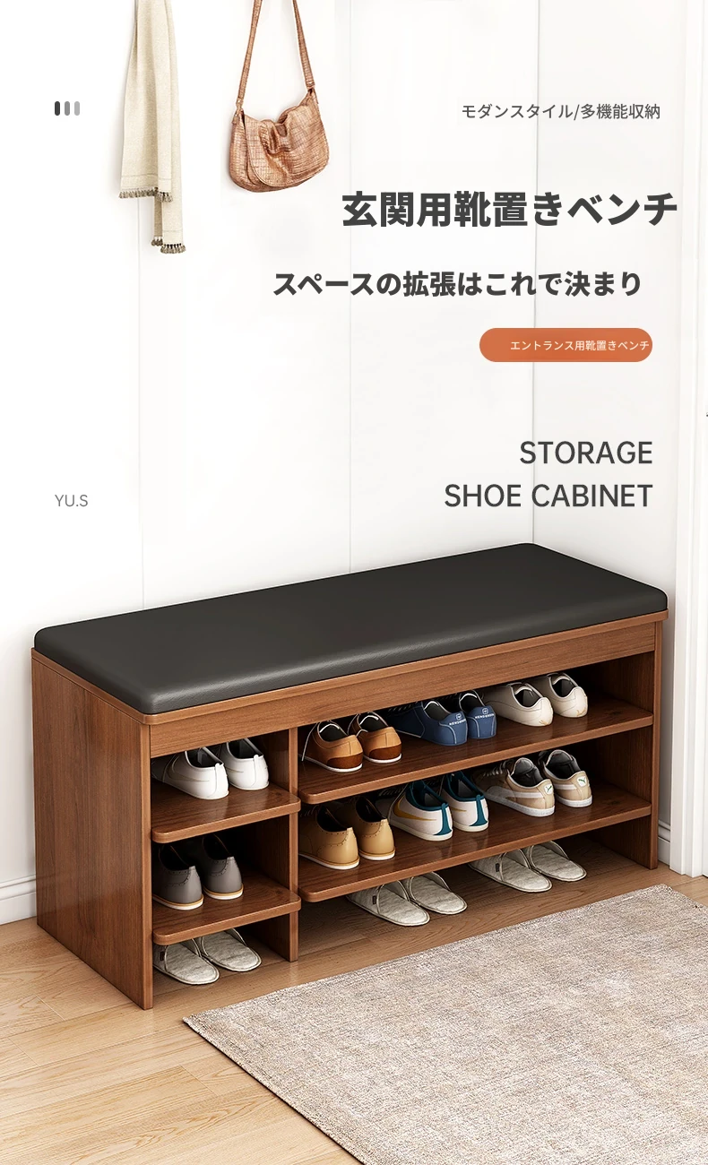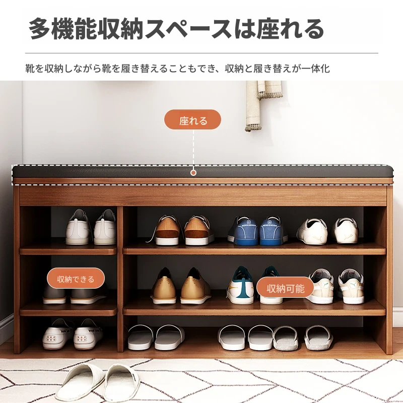 家庭用の多層シューラック - 座れる玄関用シューズベンチ!大容量でほこりを防ぎ、廊下にぴったりの外靴収納。スッキリとした玄関を実現!
