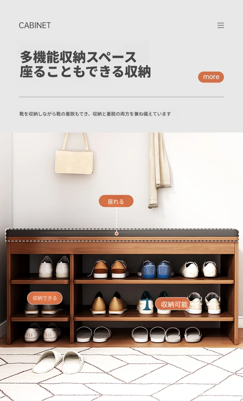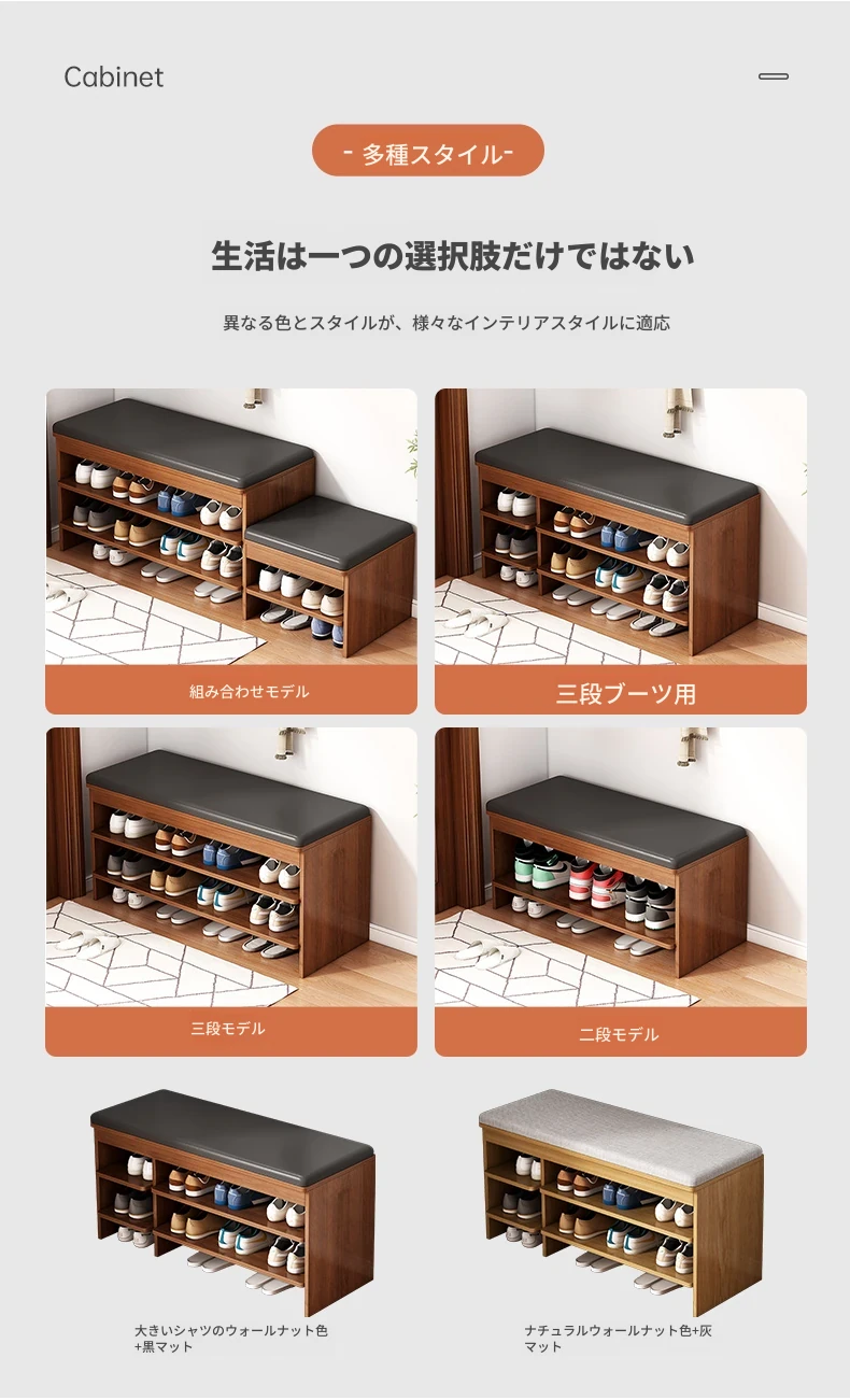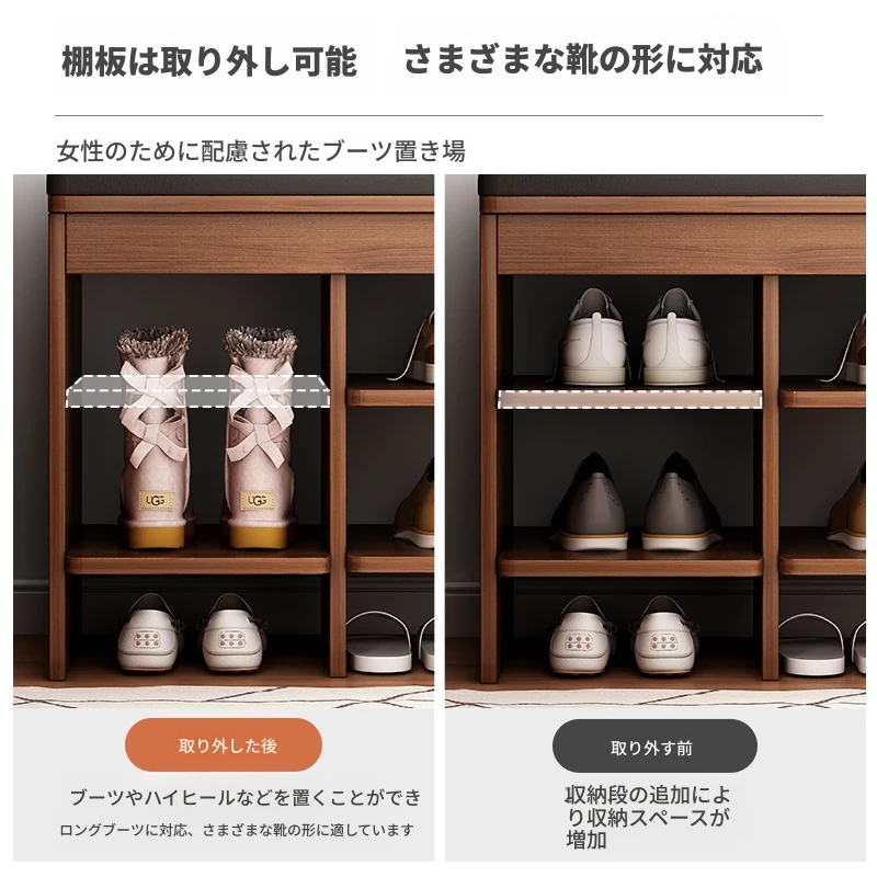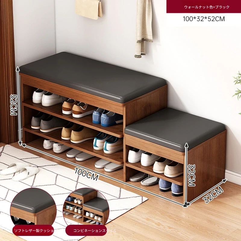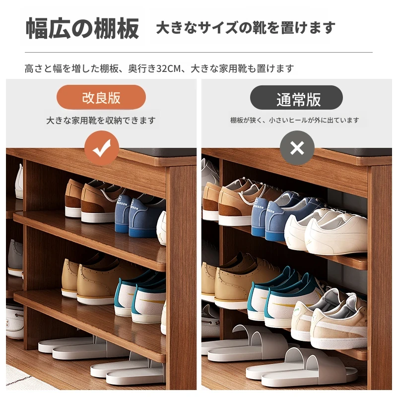 家庭用の多層シューラック - 座れる玄関用シューズベンチ!大容量でほこりを防ぎ、廊下にぴったりの外靴収納。スッキリとした玄関を実現!