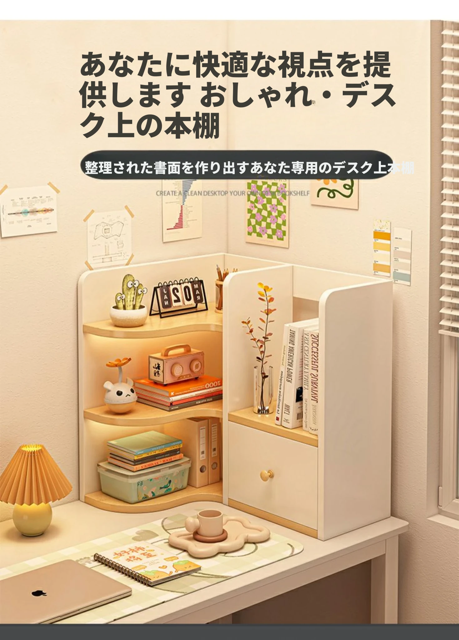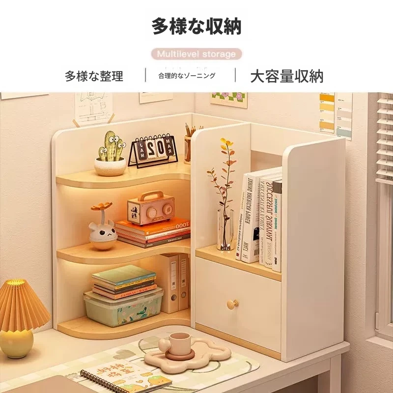 デスク用多段角型収納ラック - 学生やオフィスに最適!スペースを有効活用し、書籍や小物をスタイリッシュに整理。機能的でおしゃれなデザインで、デスク周りをスッキリ整えます。
