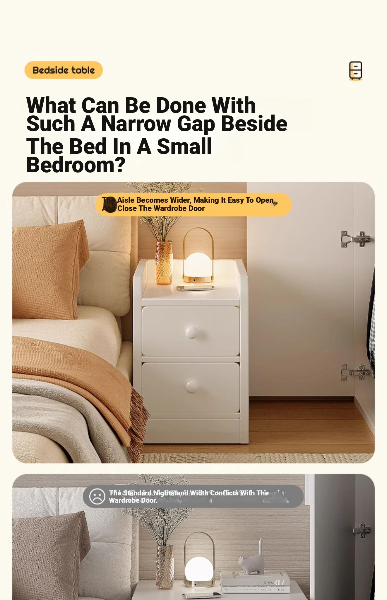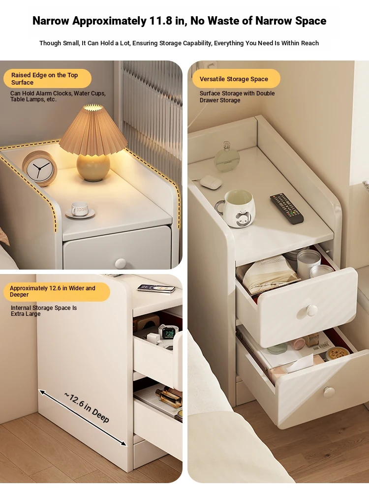 Narrow Bedside Cabinet - 20CM Wide Mini Storage Organizer for Small Bedrooms, Perfect for Wall-Mounted Use, Space-Saving Solution for Home Décor