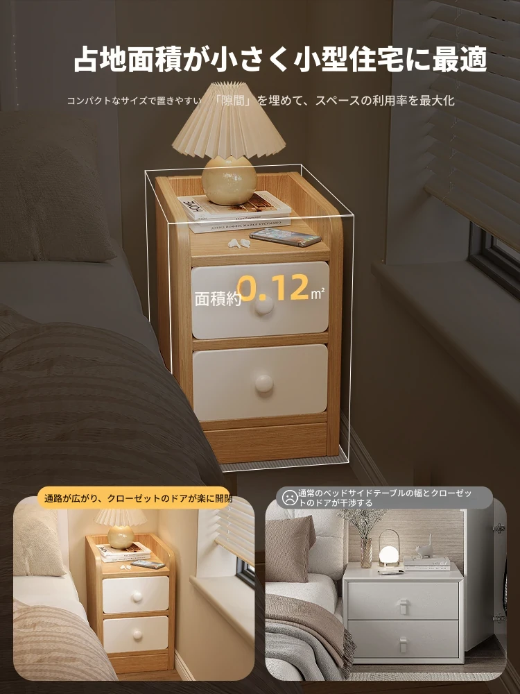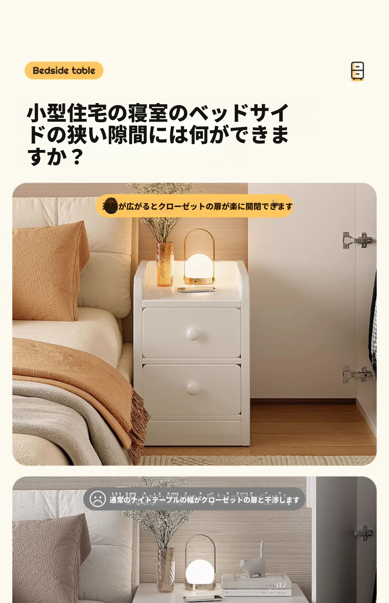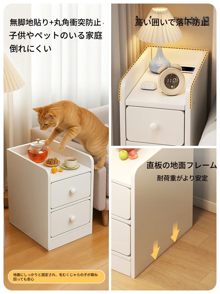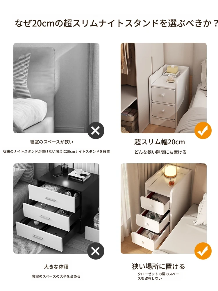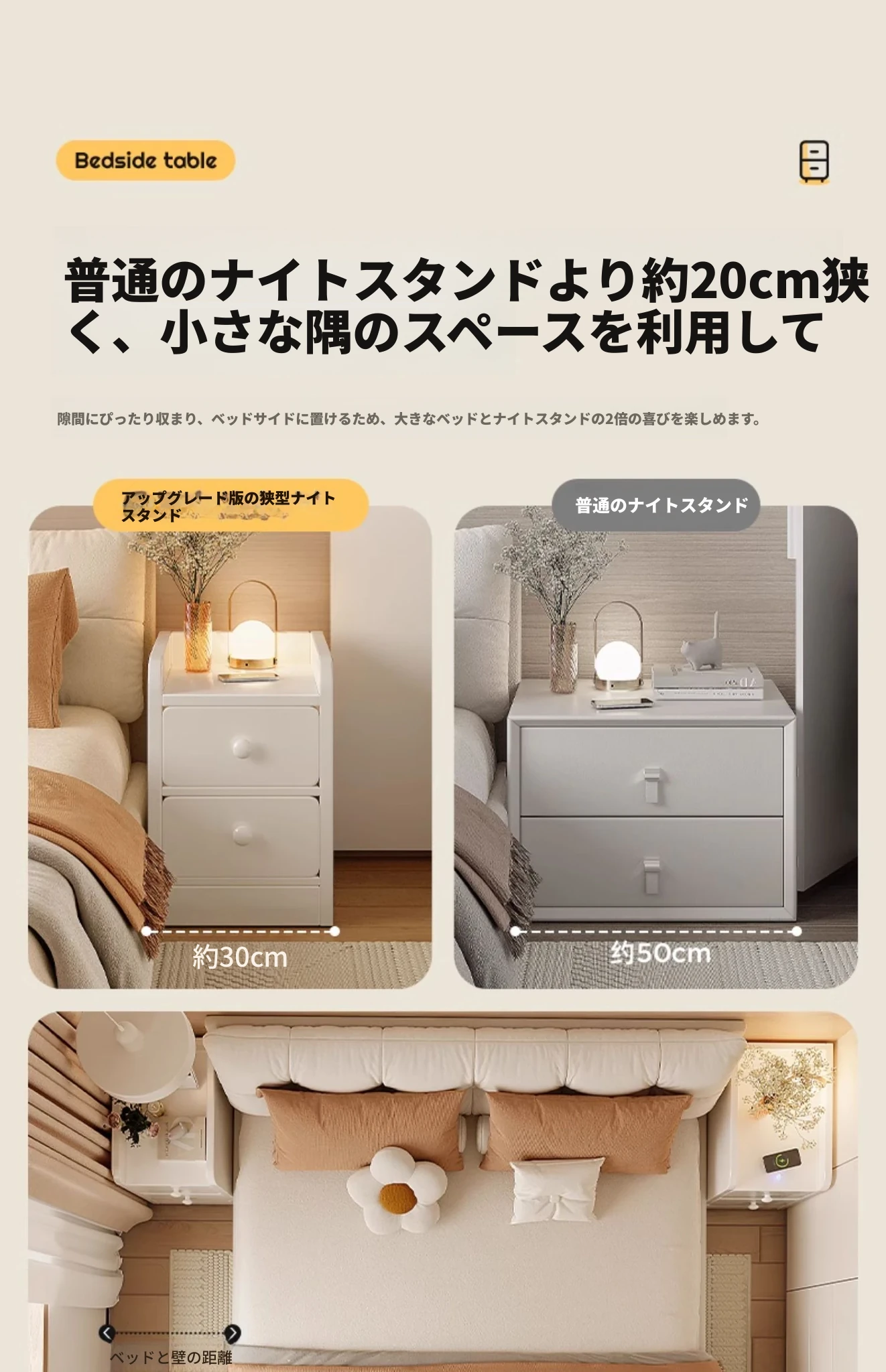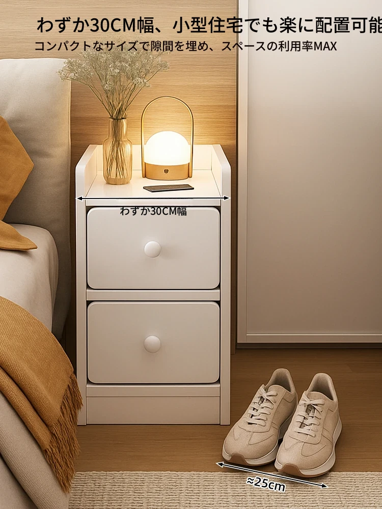 隙間にぴったり!超スリム20CM幅の小型ベッドサイドキャビネット - 寝室収納に最適なミニラック、壁に寄せて使える便利な小家具!