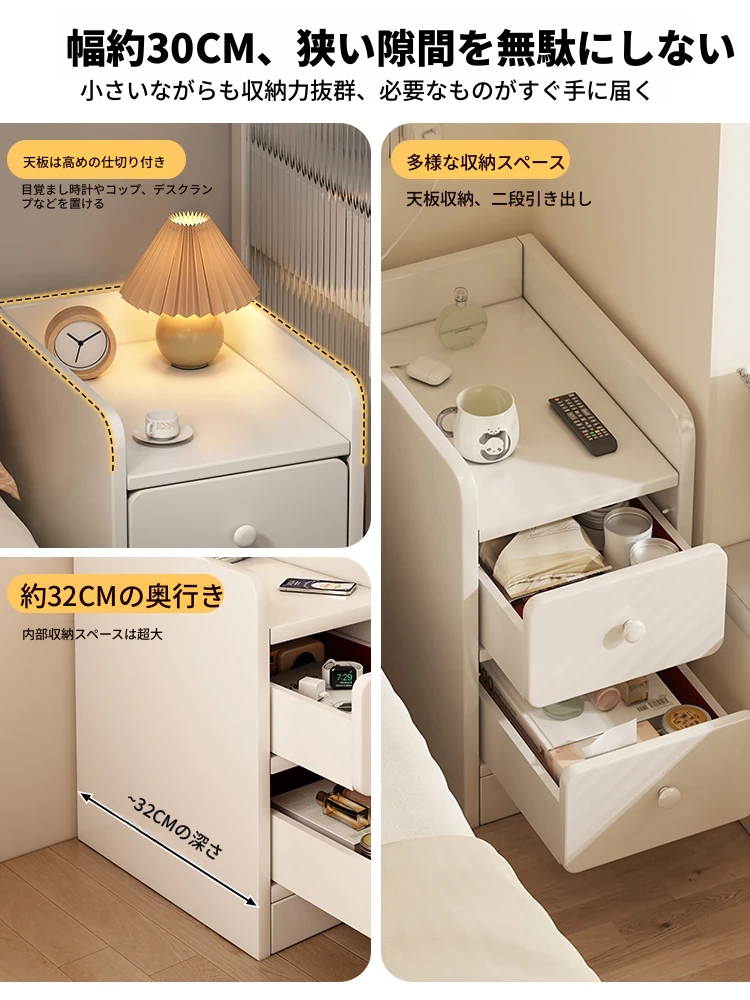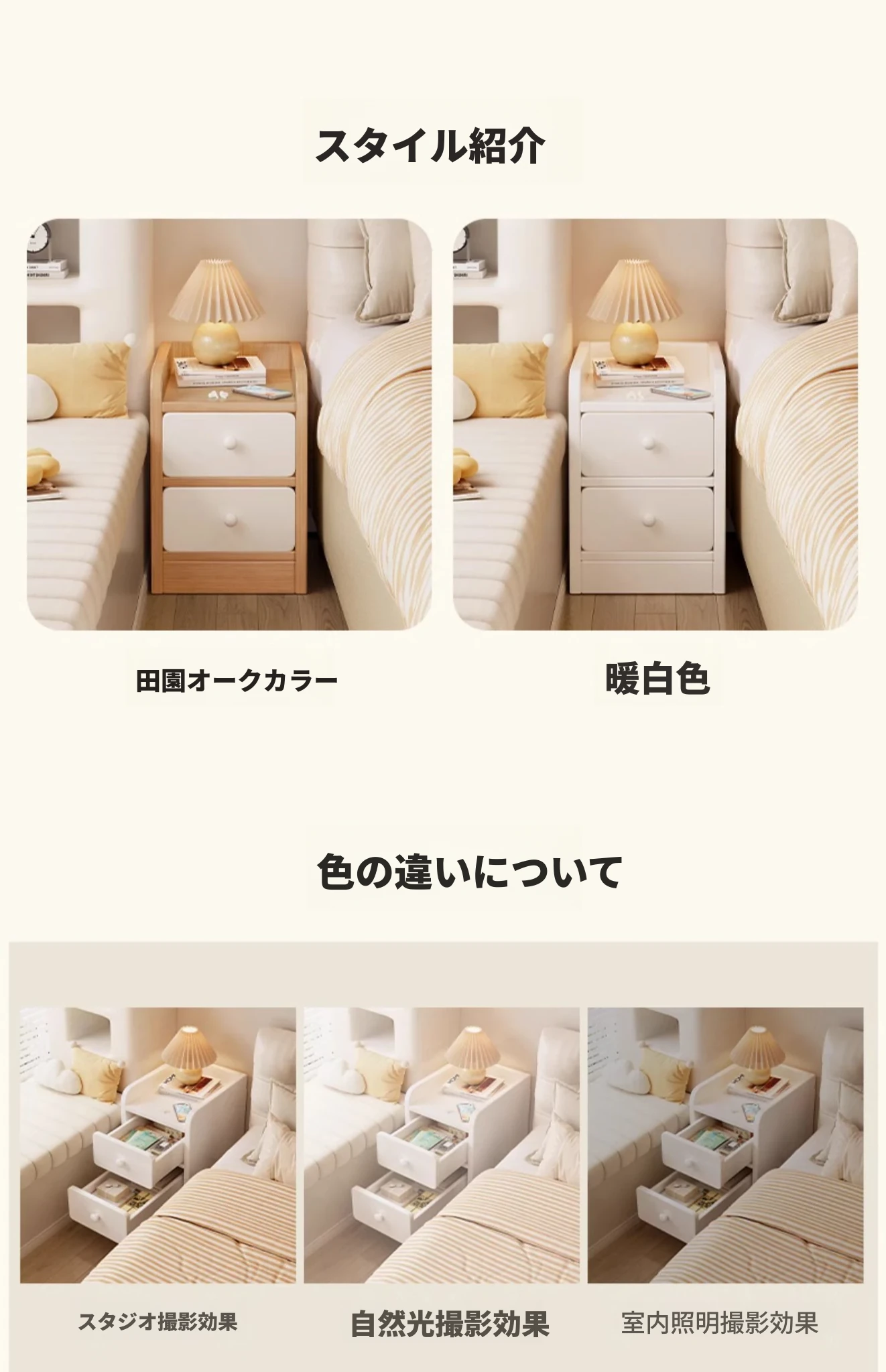 【⭐アップグレードされた板材 厚さ倍増+倍の耐久性】【丸角デザイン2段引き出し】暖白色
