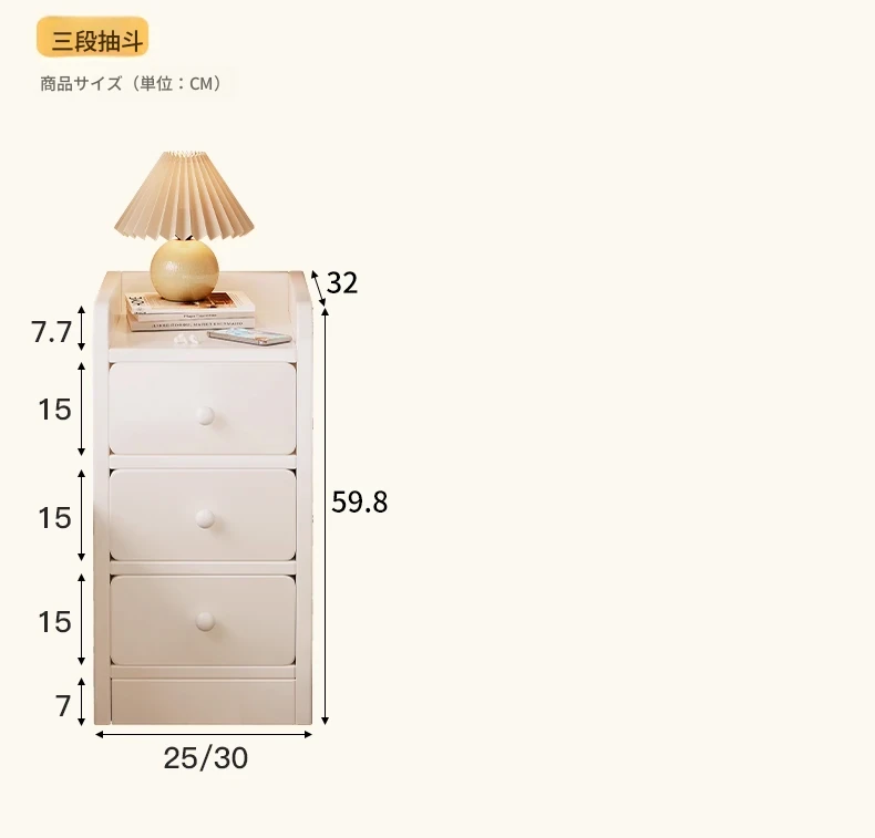 【超狭メイン画像⭐3段引き出し❤おすすめ】暖白色