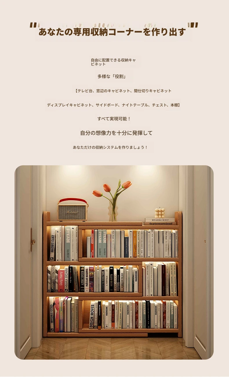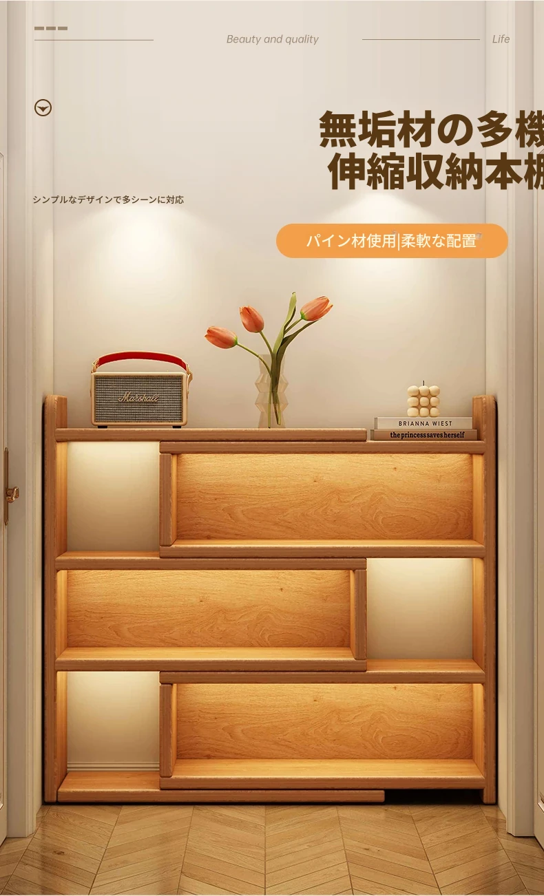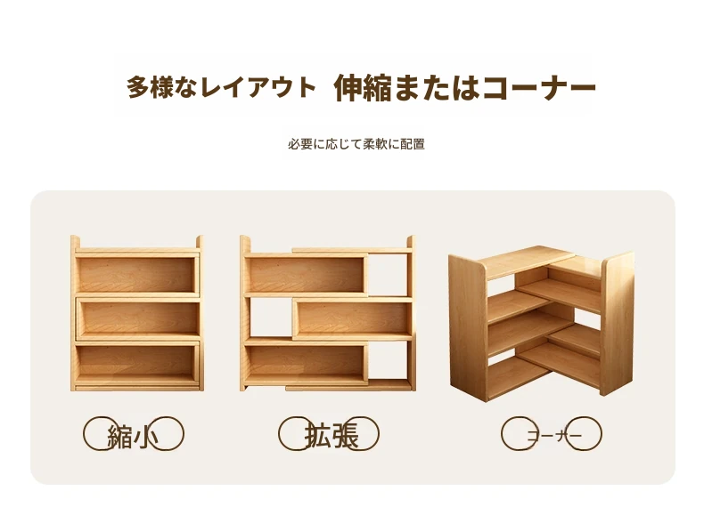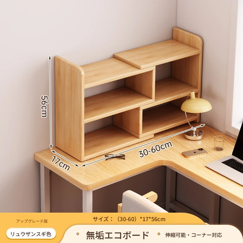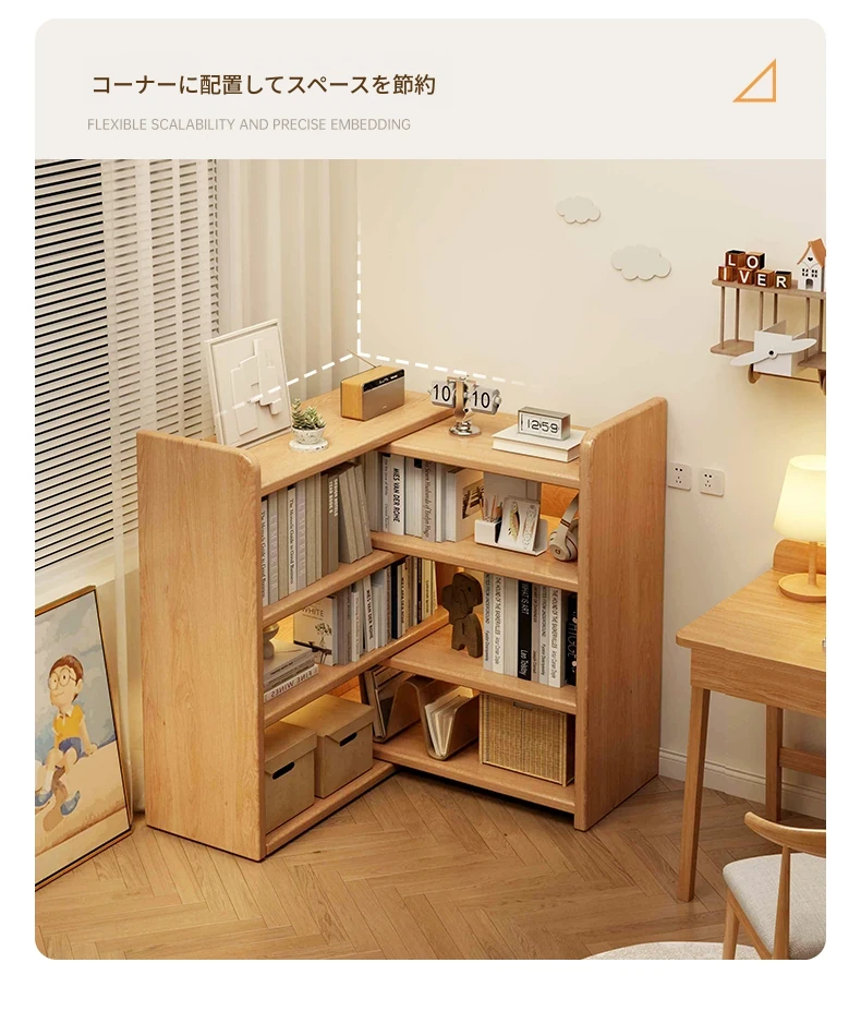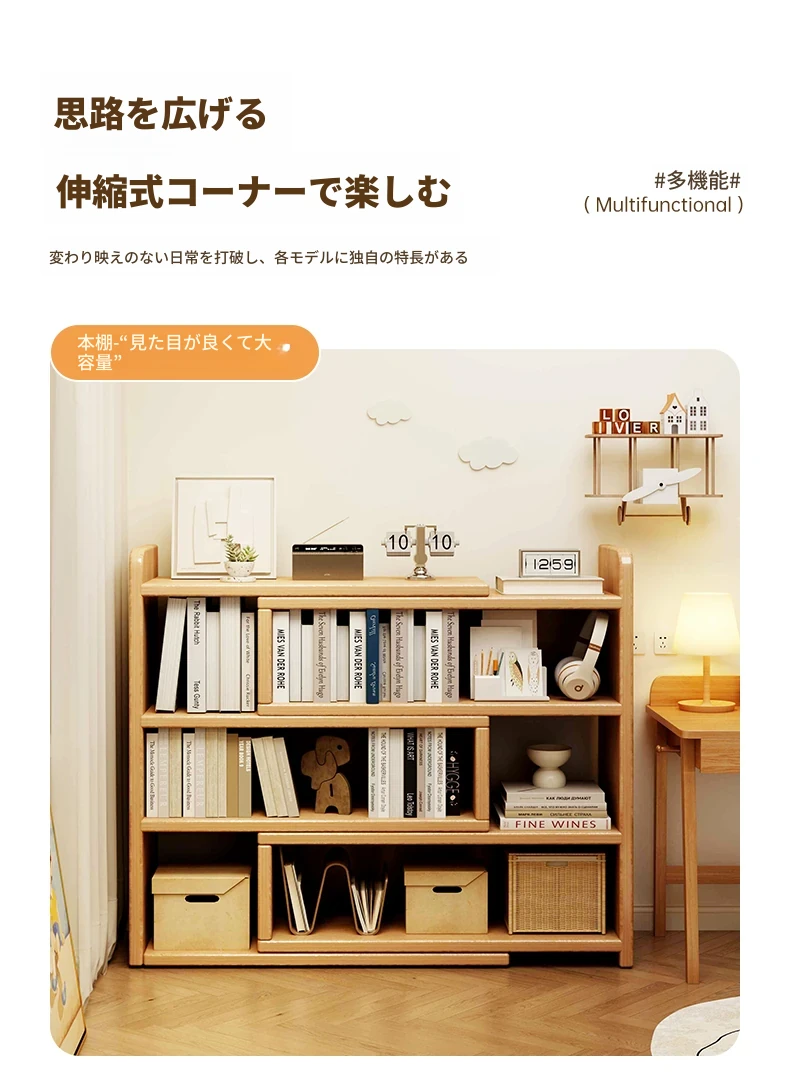 天然木の色合いが美しい!伸縮可能なフロア書棚 - 玄関や学生の部屋に最適な壁掛け収納、角にフィットするデザインで、家の中をスッキリ整頓。用途多彩なオシャレな収納アイテム!