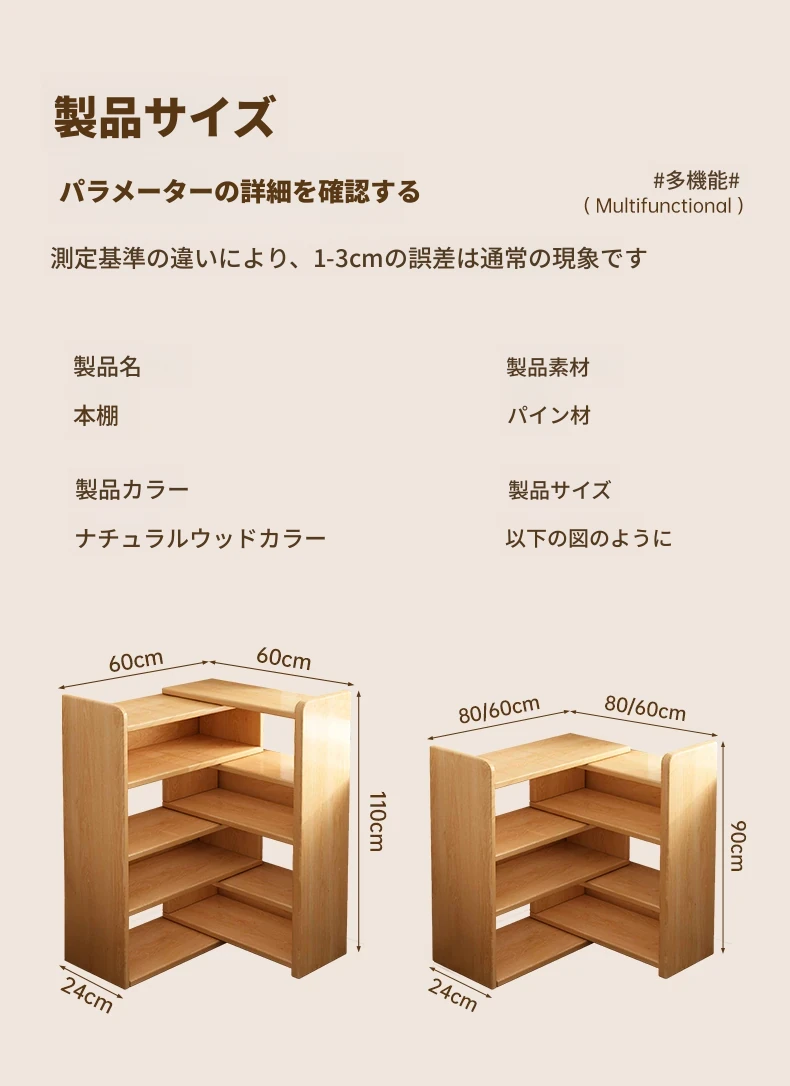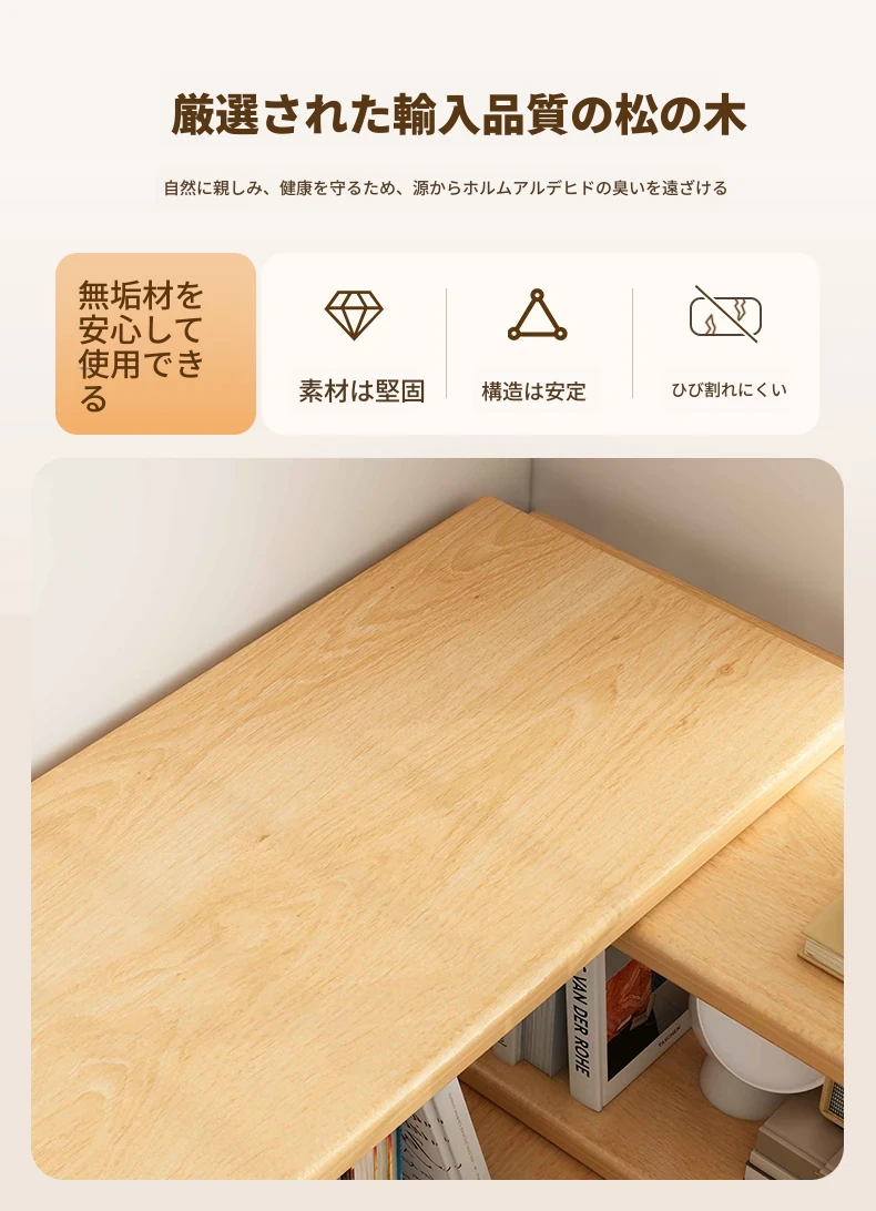 【無垢材⭐品質アップ⭐3層】ナチュラルカラー(60-110)*24*90cm❤(背板付き)(写真投稿で10%返金)