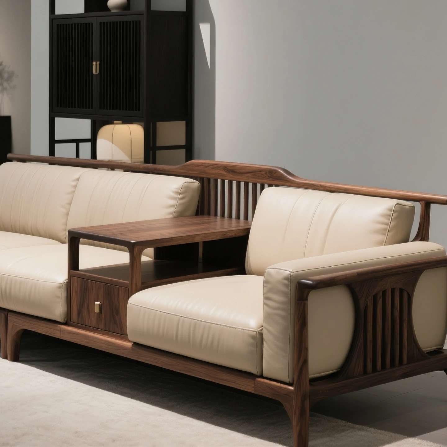 新中式デザインの北米産ブラックウォールナット使用!本革製のビジネス向け3人掛けソファ。シンプルでありながら洗練された現代的なスタイルで、快適な会話空間を提供します。あなたのオフィスに最適な一品!