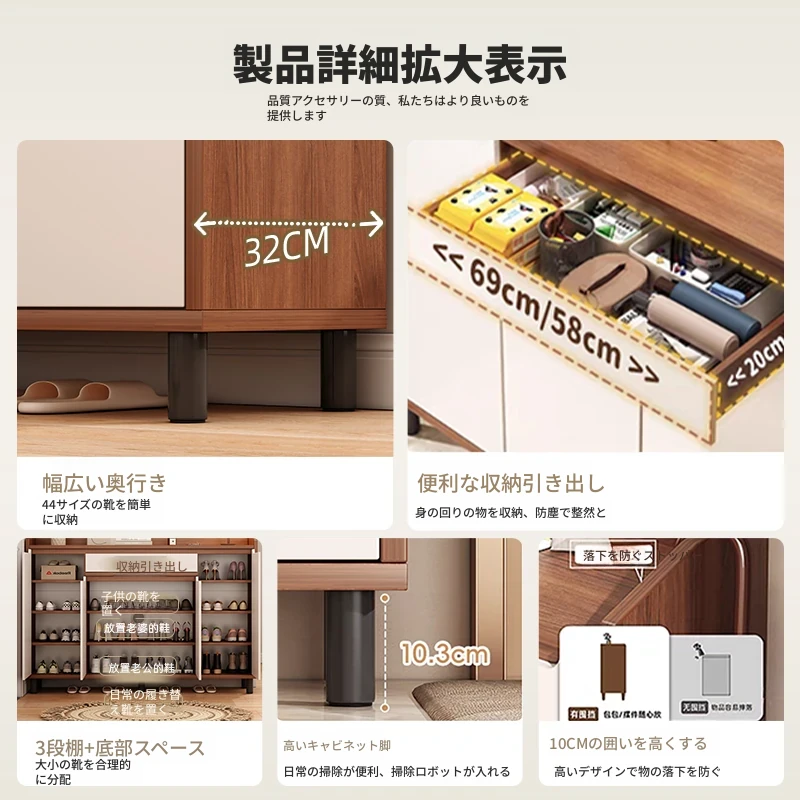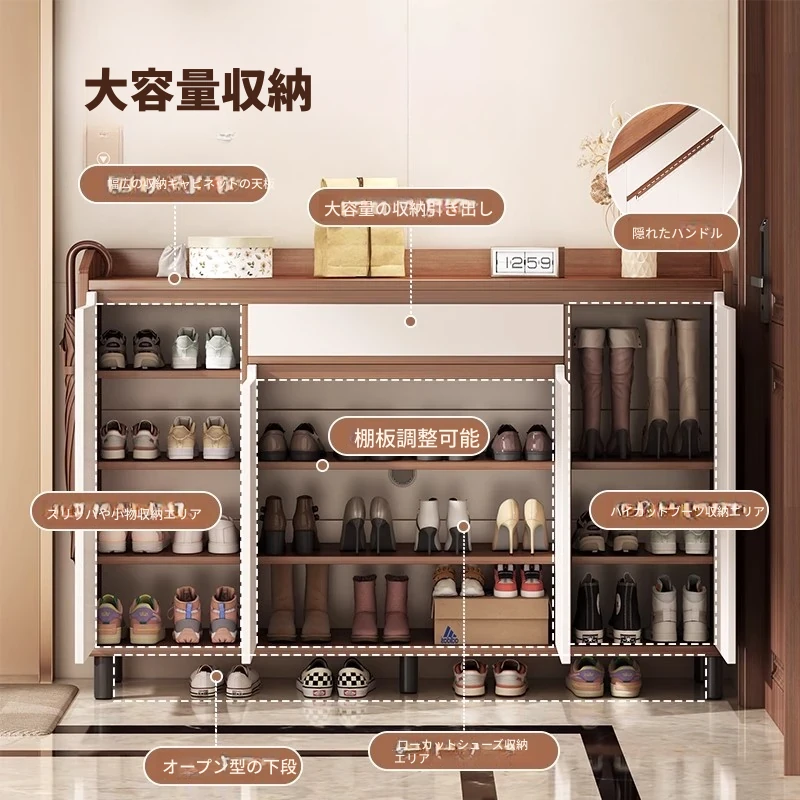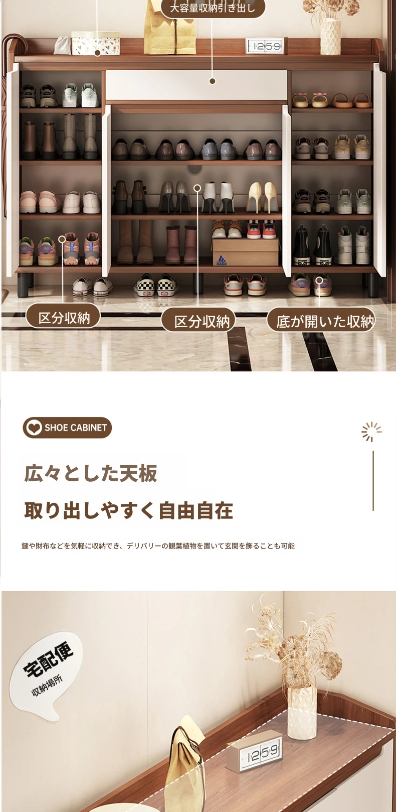 新中式デザインの玄関収納キャビネット - 大容量で機能的な靴ラック!室内にぴったりフィットし、壁に寄せてスッキリ収納。家族全員の靴をしっかり収納できる、スタイリッシュで便利なアイテムです。