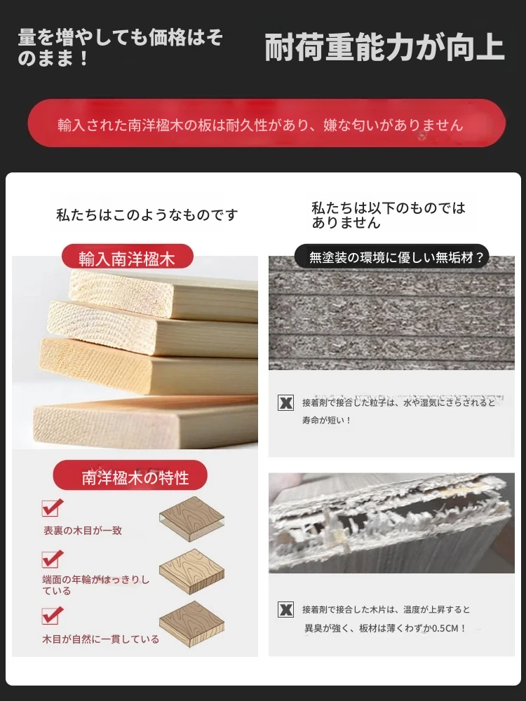 輸入高品質木材を使用※耐久性抜群※雨季でも湿気に強い