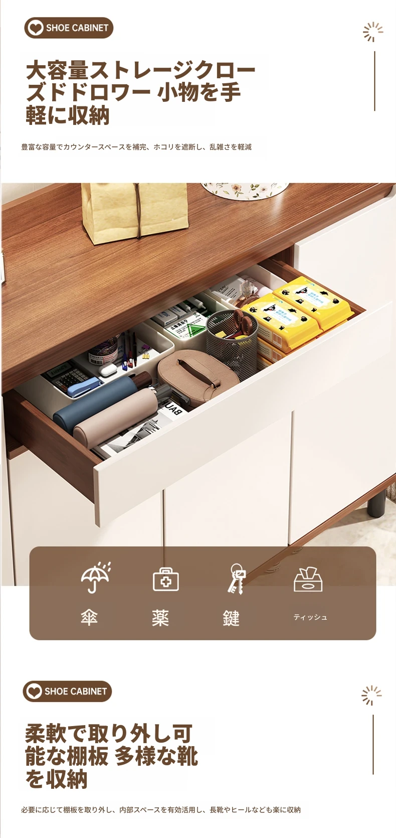 新商品特典❤️自宅配送✅【多層強化+三扉一引き出し】玄暮檀影色90*32*100cm