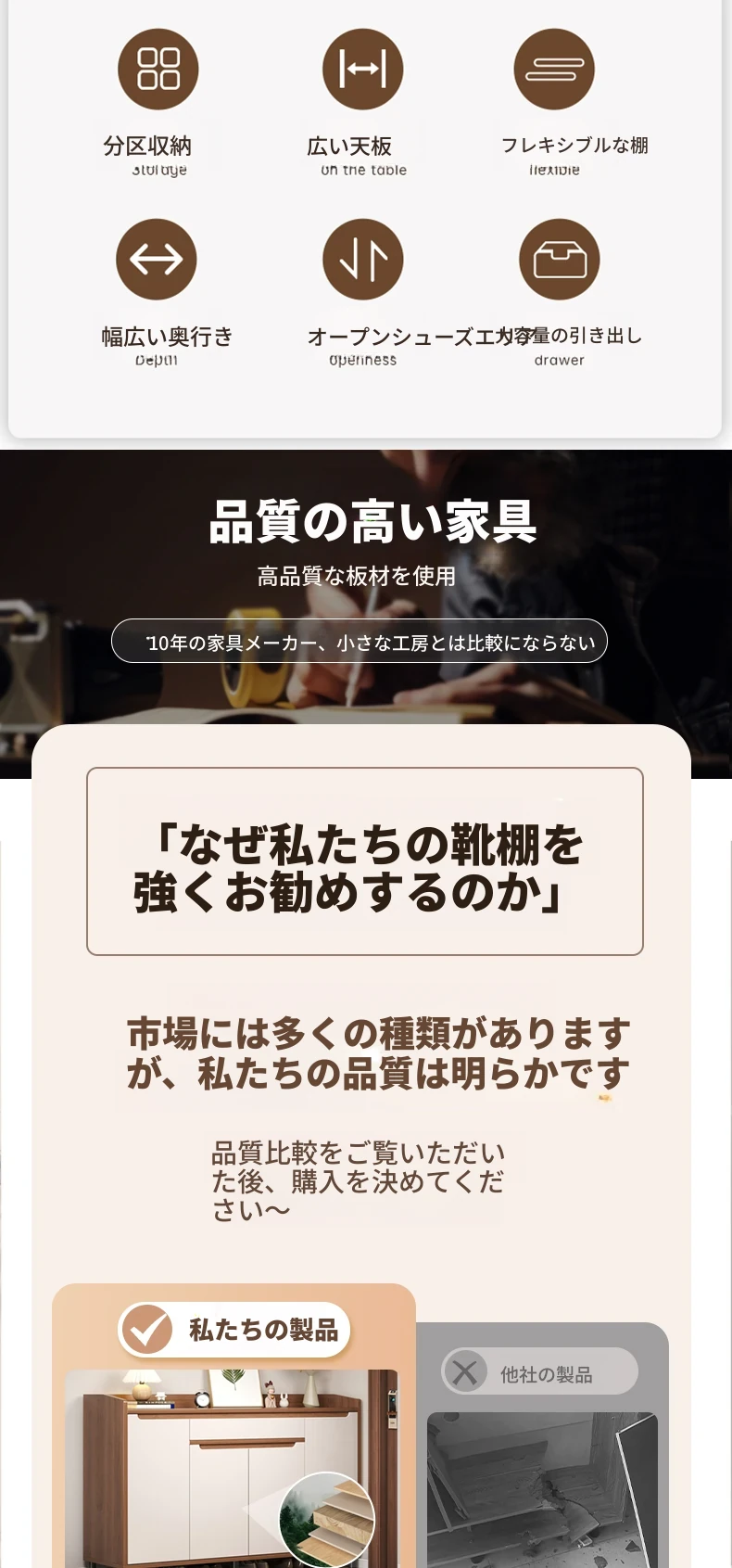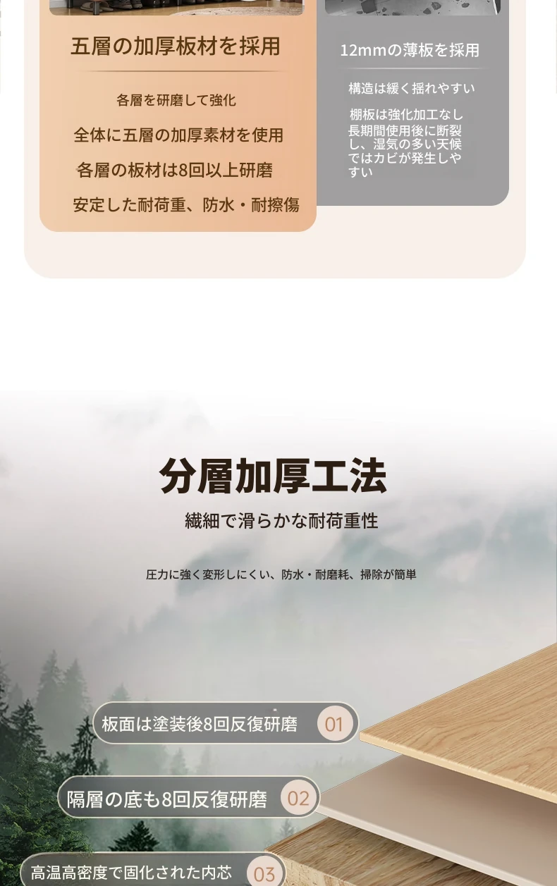 自宅配送✅【多層強化+三扉一引き出し】玄暮檀影色90*32*100cm